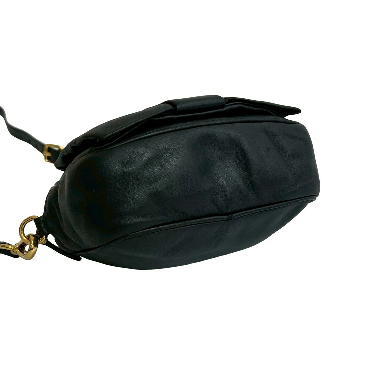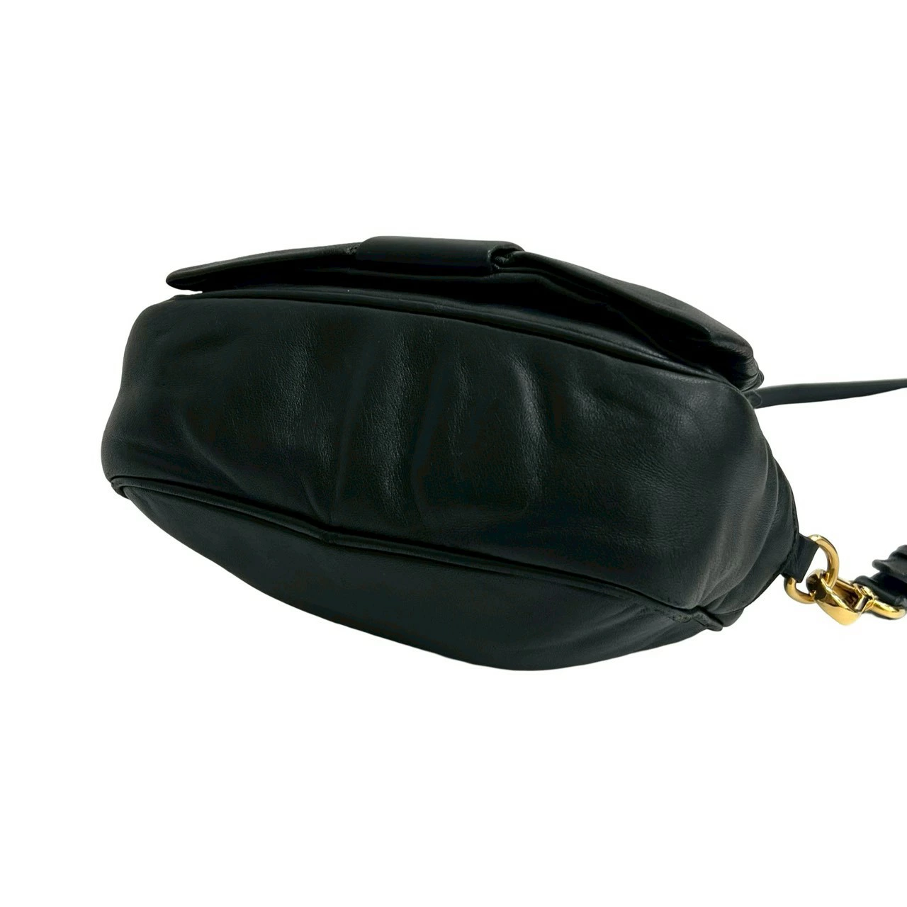 Excellent condition PRADA Prada logo, metal hardware, ribbon motif, genuine leather mini shoulder bag/pouch/sacoche in black (e74-6) [pre-owned]