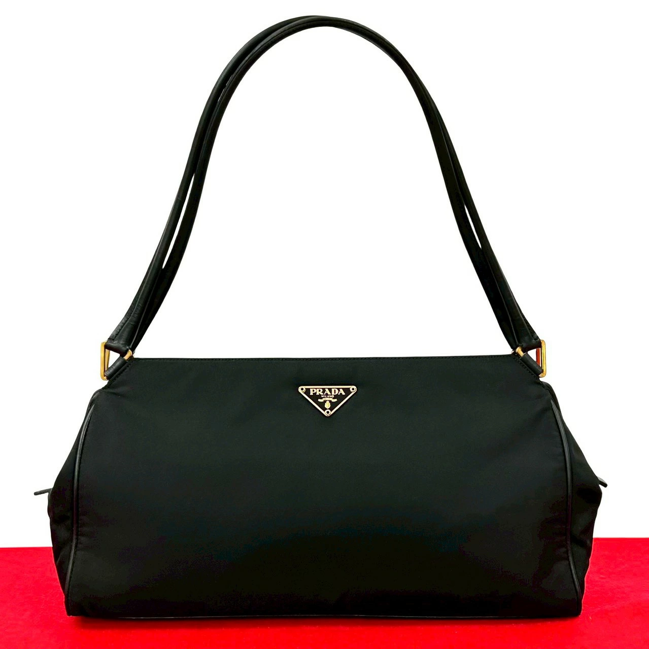 Excellent condition PRADA Prada triangle logo hardware, nylon and leather tote bag, semi-shoulder bag, handbag, black, 31756 [pre-owned]