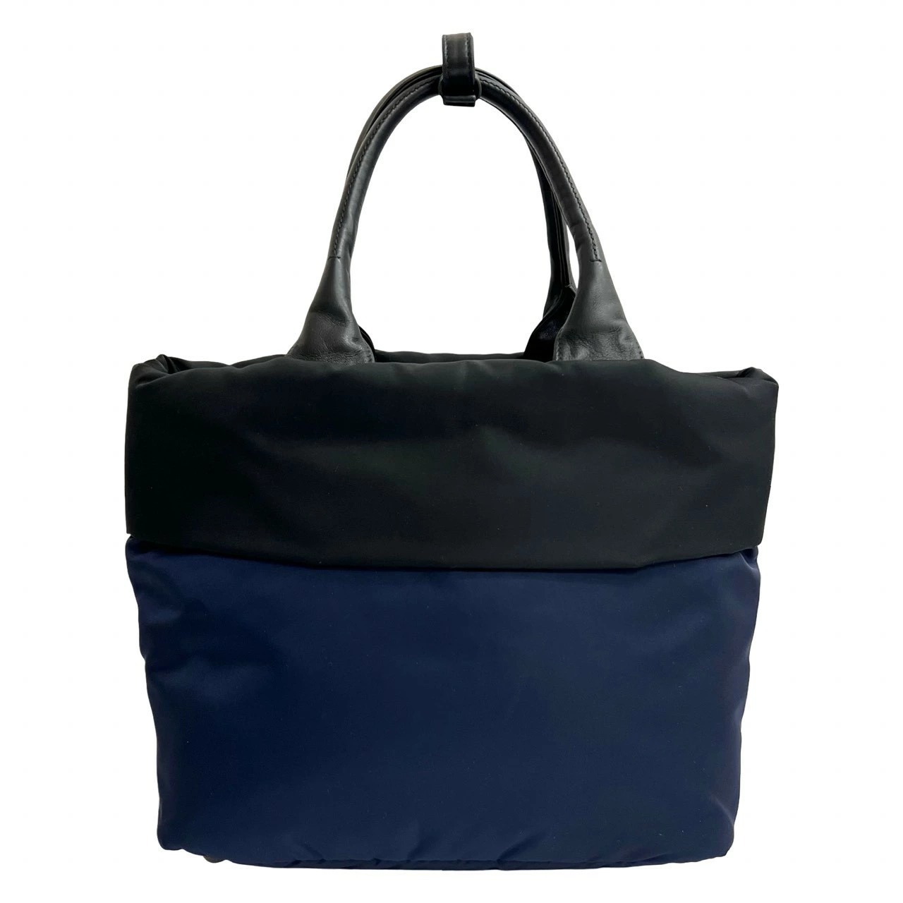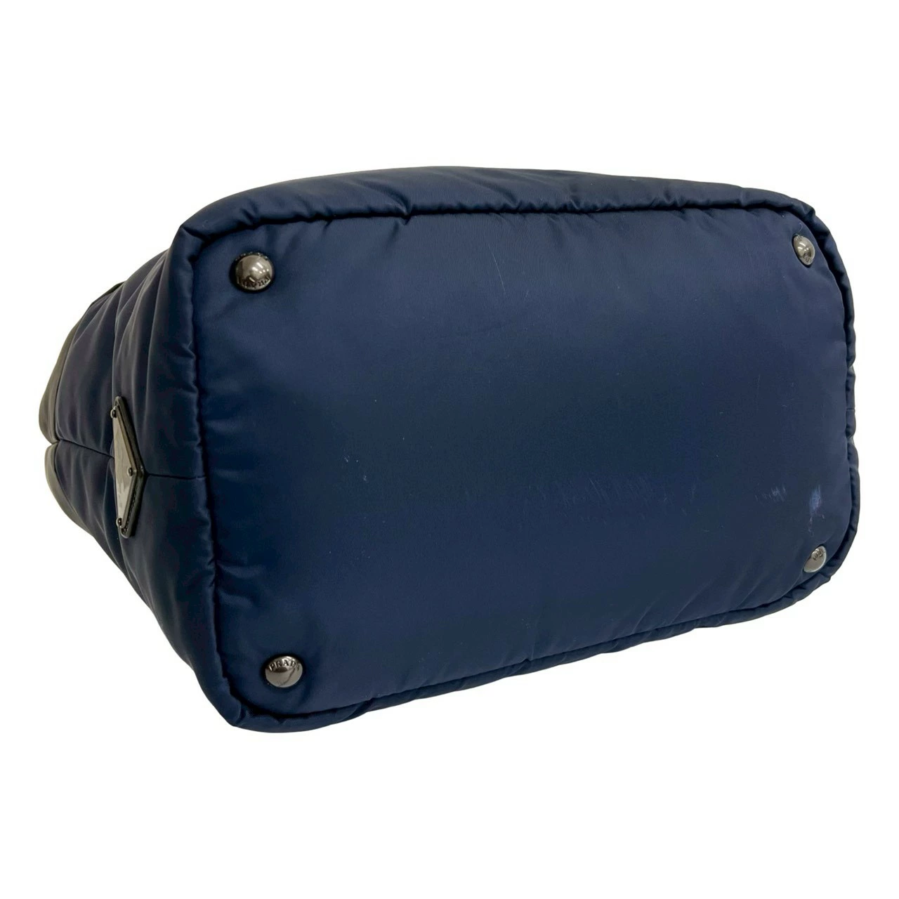 Excellent condition PRADA Prada triangle logo hardware nylon and leather 2-way shoulder bag, tote bag, handbag, black, navy, size 24-10 [pre-owned]