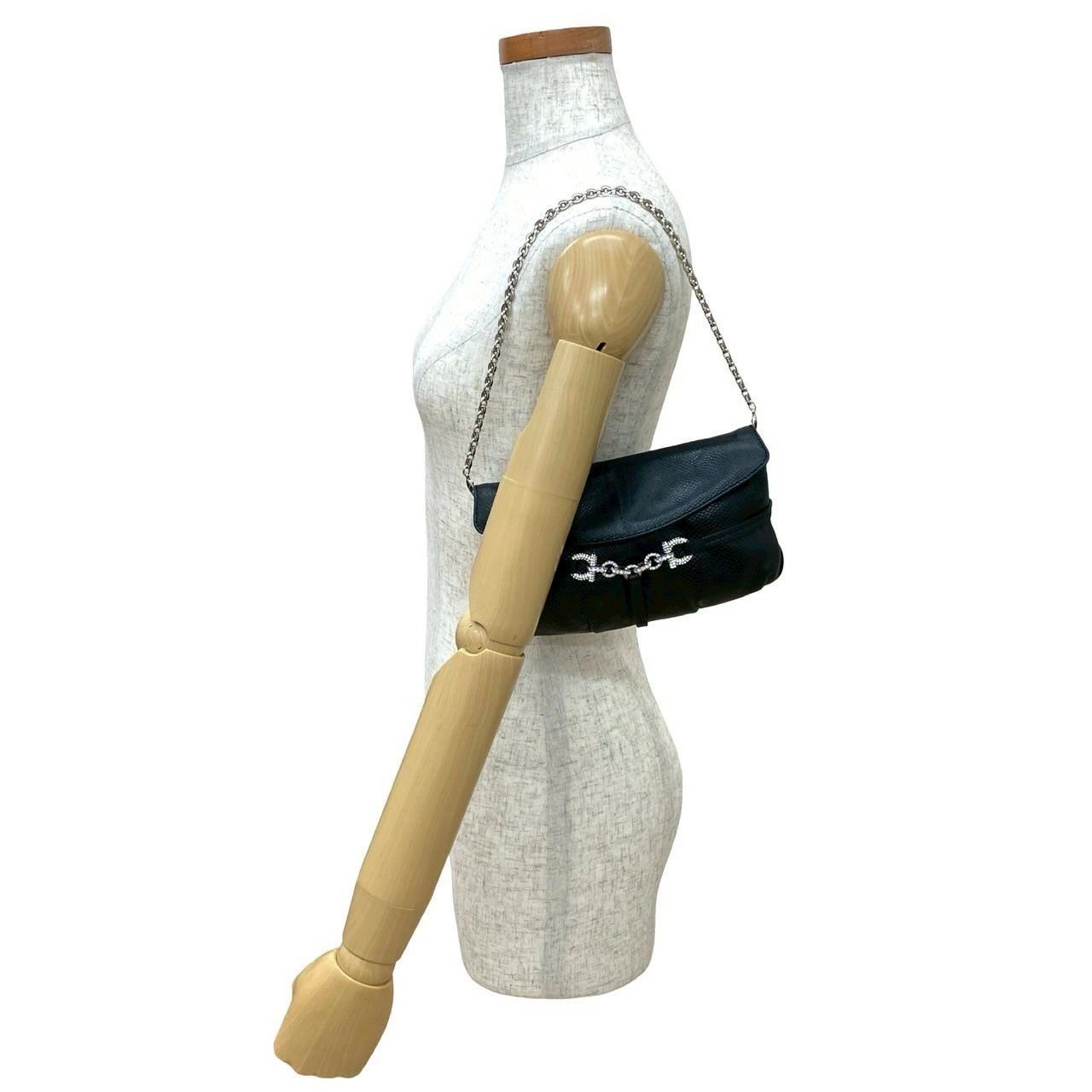 Excellent condition Salvatore Ferragamo Gancini leather chain one-shoulder bag, black, 10469 (pre-owned)