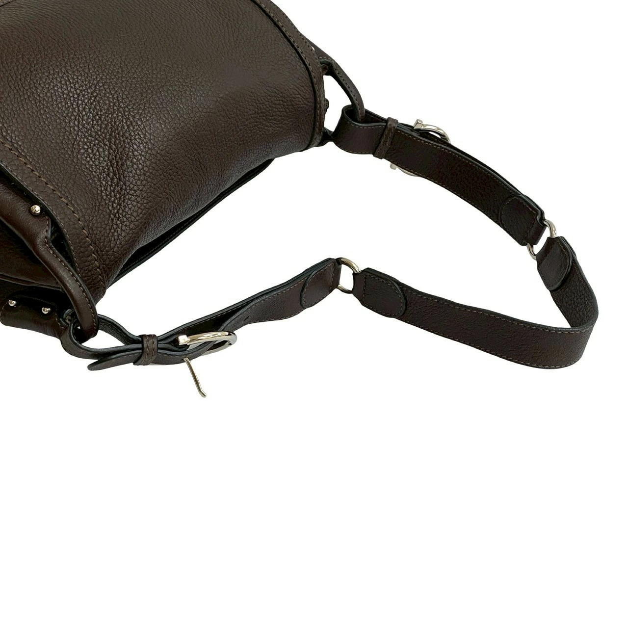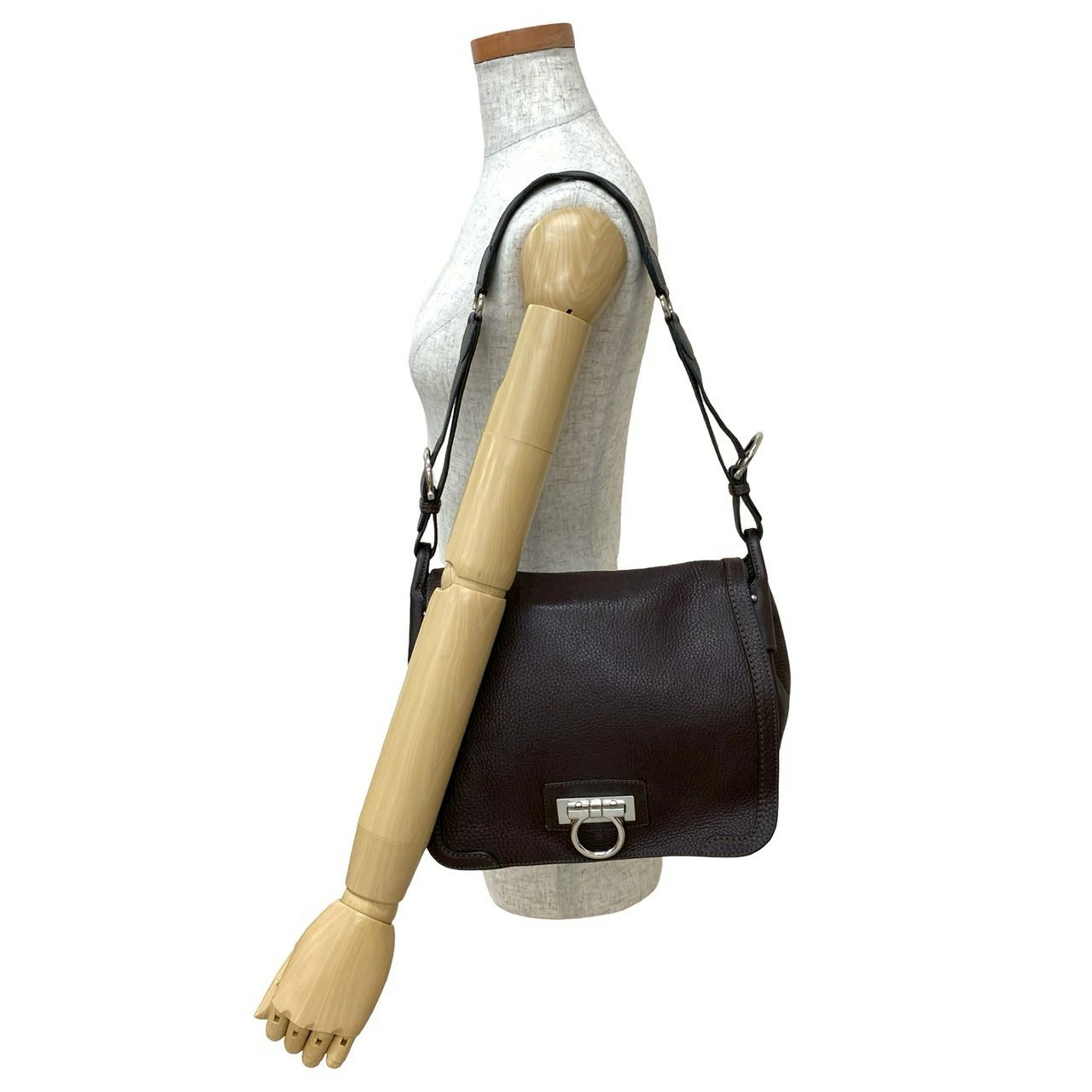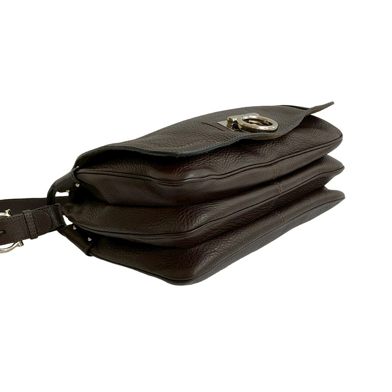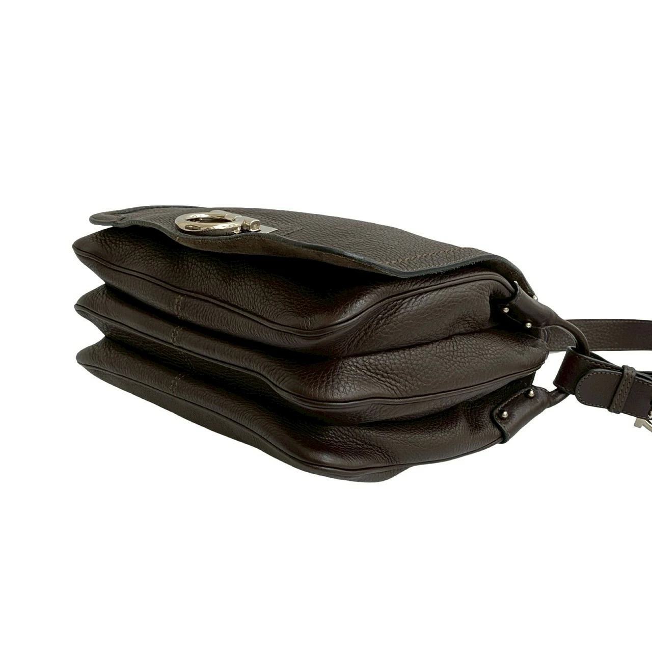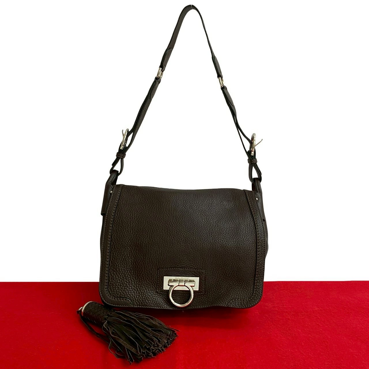 [Double Points] Excellent Condition Salvatore Ferragamo Gancini Logo Hardware Leather Tassel Semi-Shoulder Bag Brown 120-6 [Pre-owned]