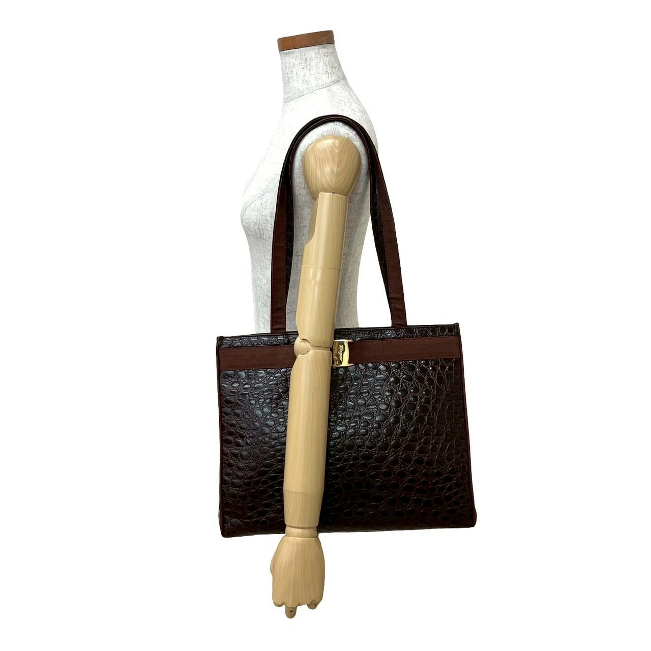 Earn double points! Excellent condition Salvatore Ferragamo Vara Ribbon leather tote bag with hardware, brown, business bag, pb7-9 [Pre-owned]
