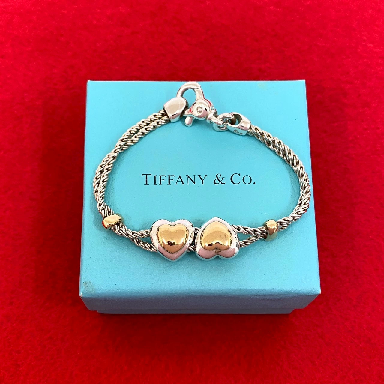 Excellent condition TIFFANY & Co. Double Heart Rope Chain Bracelet/Bangle in 925 Sterling Silver and 18K Gold (Product Code: 35076) [Pre-owned]