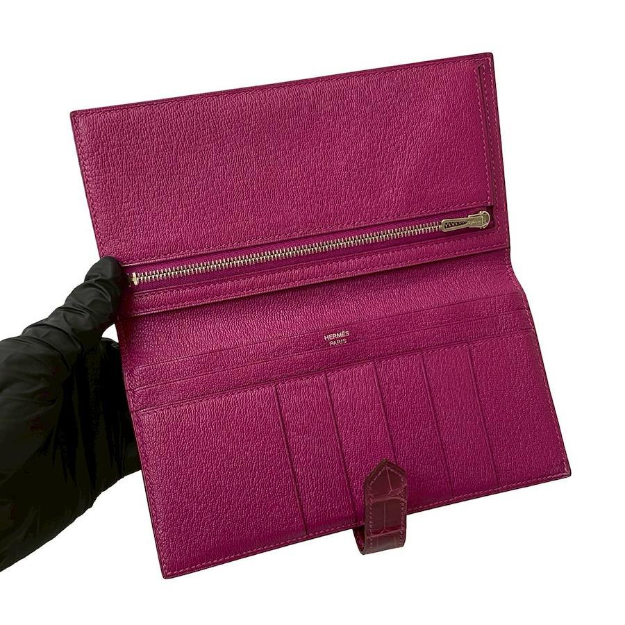 Excellent condition, X-stamped HERMES Bearn Souffle logo hardware, alligator leather, genuine leather bifold long wallet with bill compartment, pink, 23306 [pre-owned]