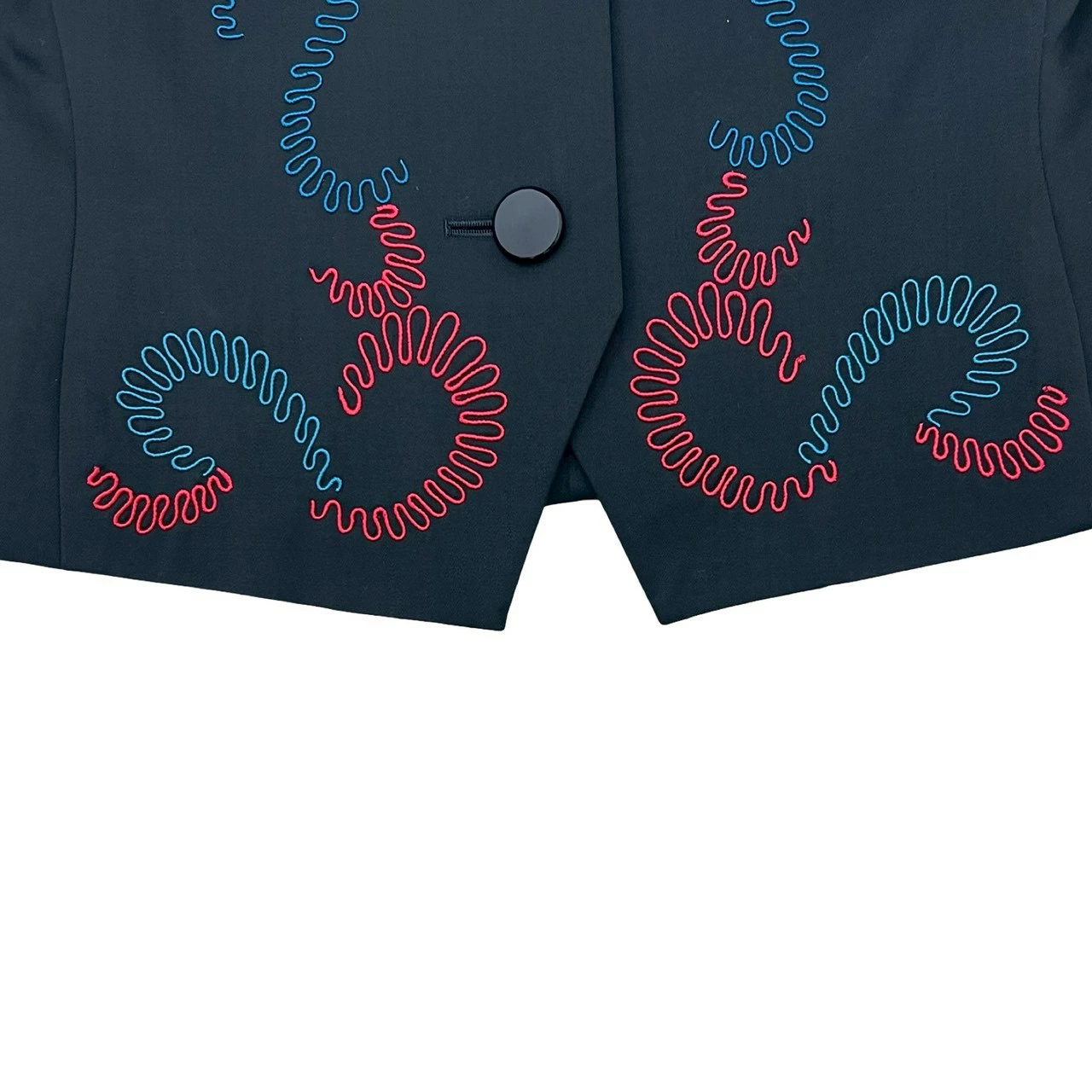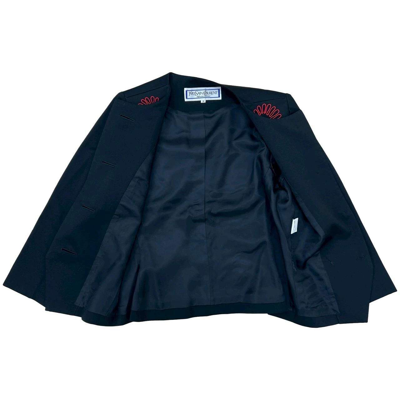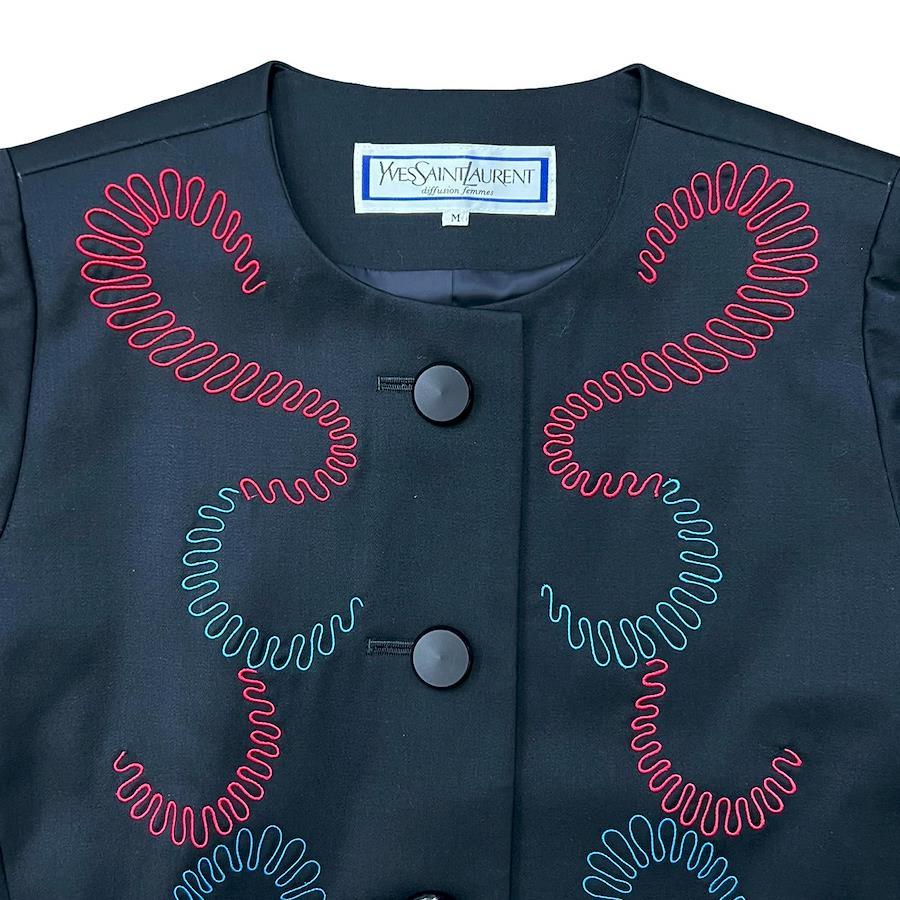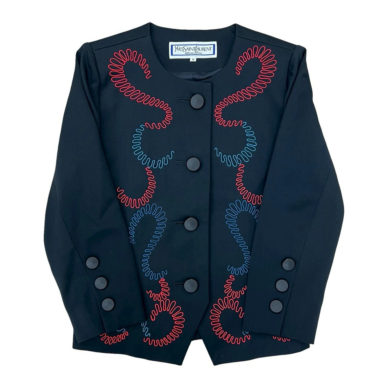 Excellent condition Yves Saint Laurent vintage embroidered wool collarless jacket, size M (9), women's, black, 72688 [pre-owned]