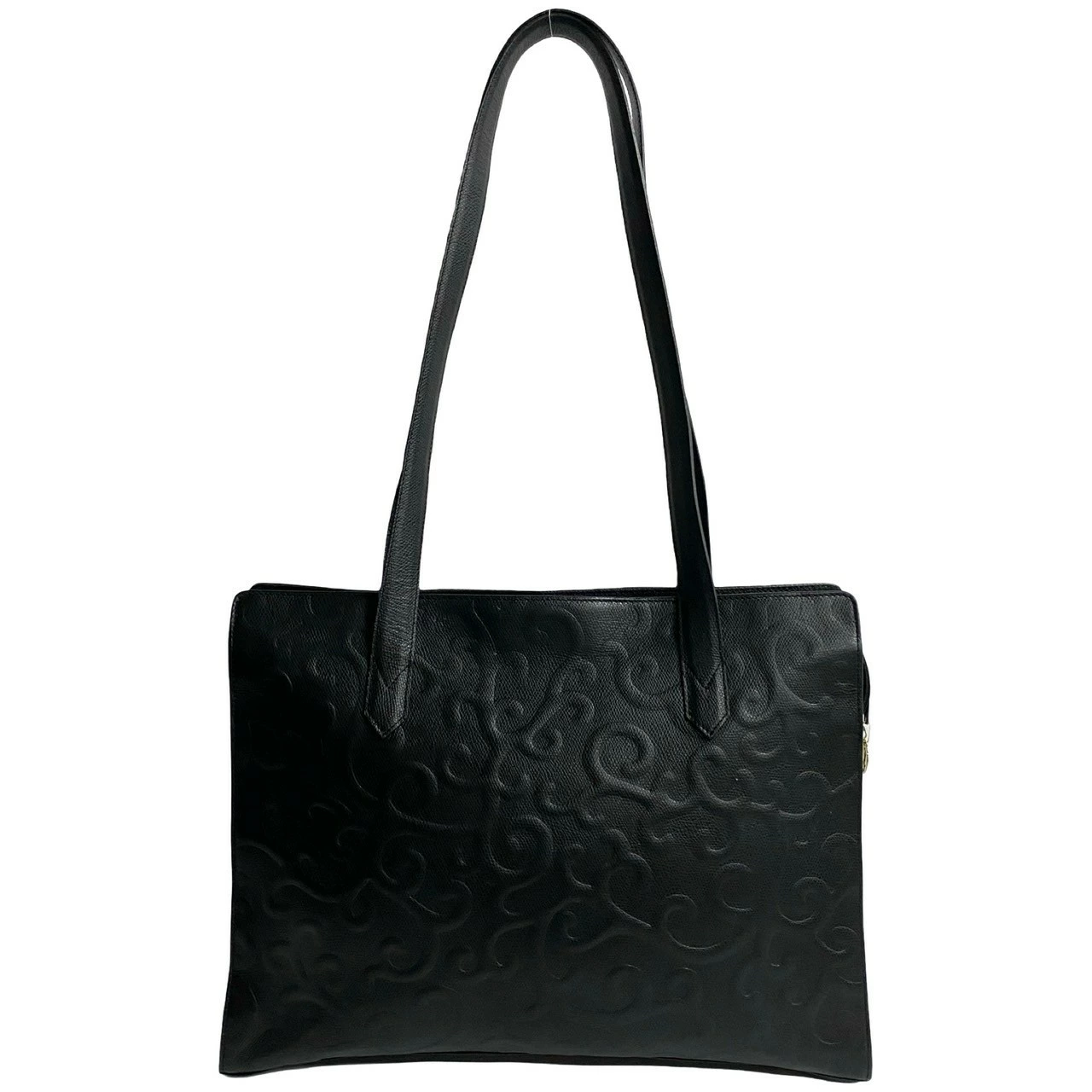Excellent condition Yves Saint Laurent YSL logo hardware, arabesque pattern, genuine leather tote bag, semi-shoulder bag, black, 095-3 [pre-owned]