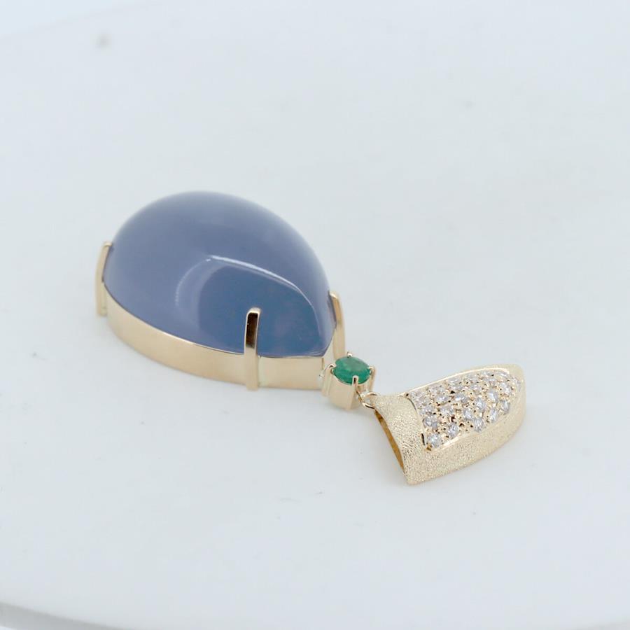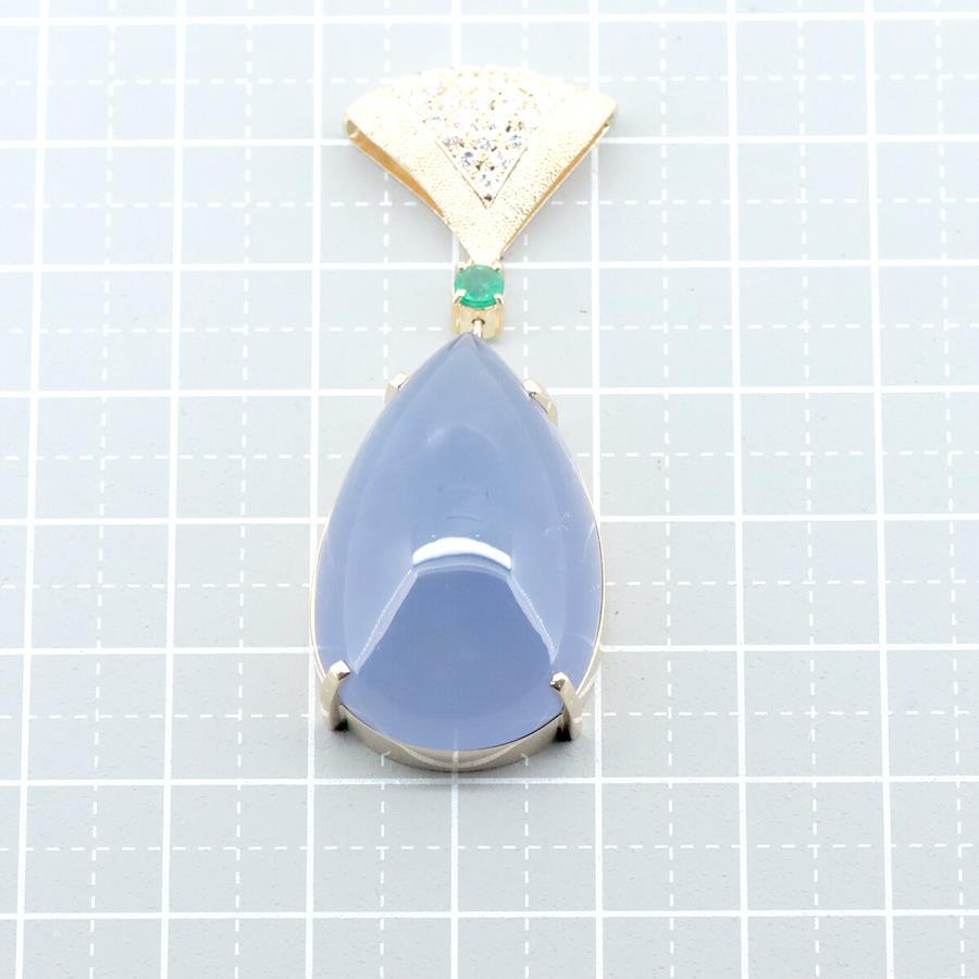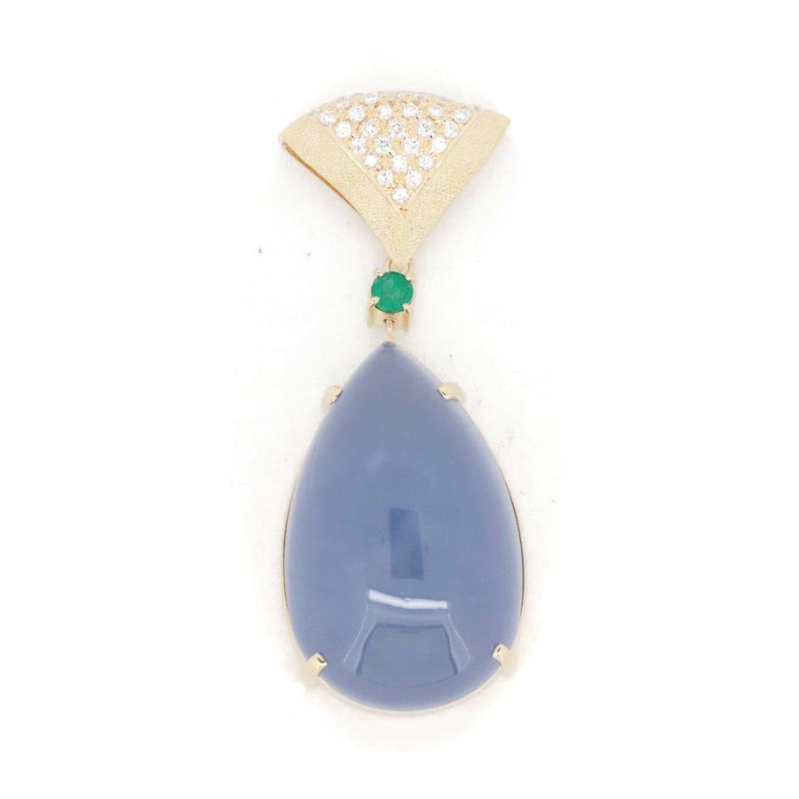 Keiko Ikeda AK Collection Chalcedony, Emerald, and Diamond Pendant, C50.58ct, 18K Yellow Gold (K18YG) - Listed at a pawn shop