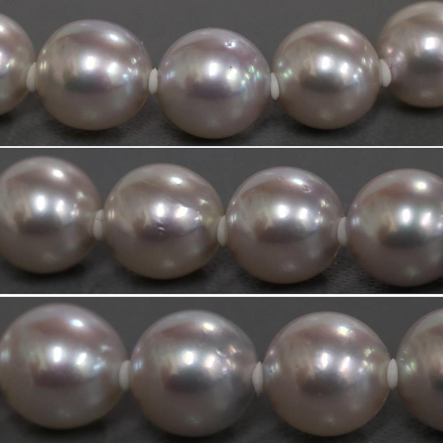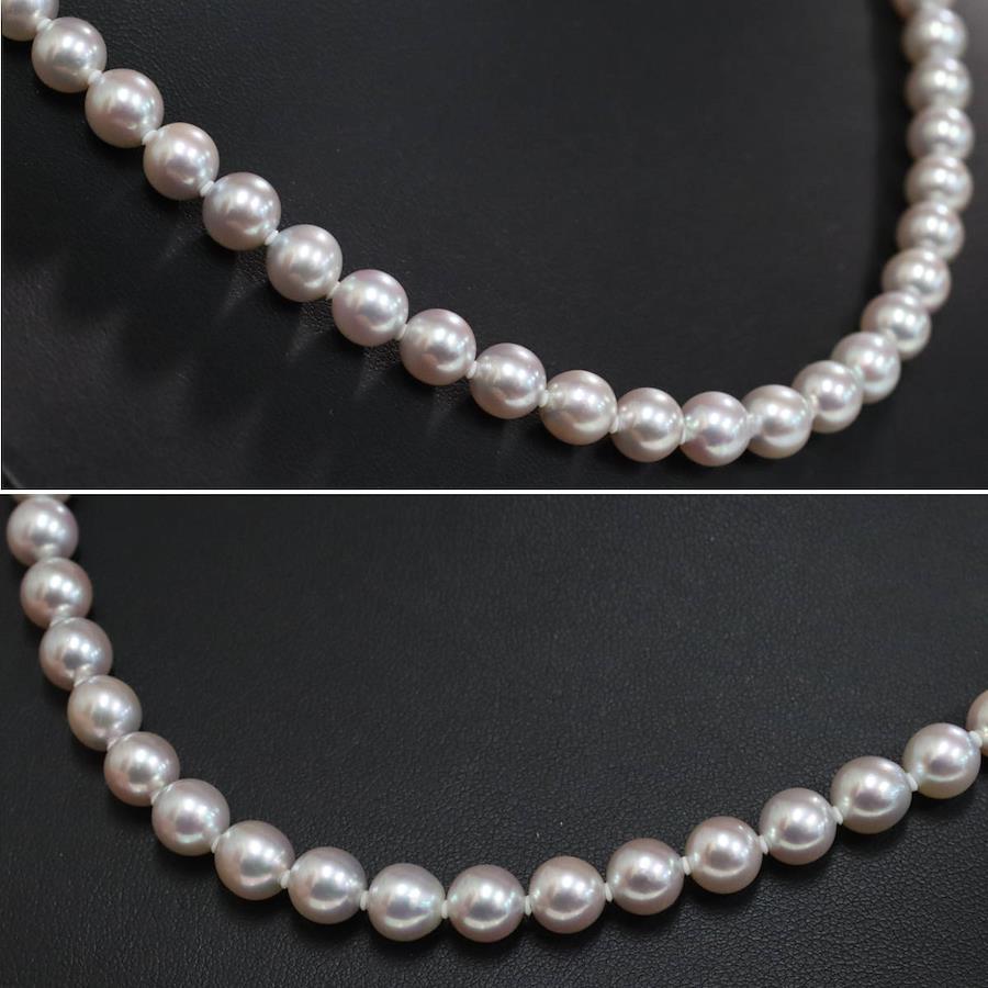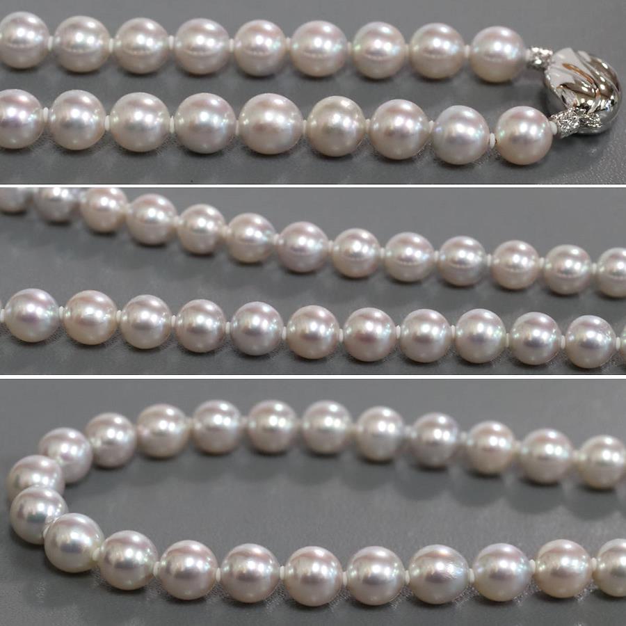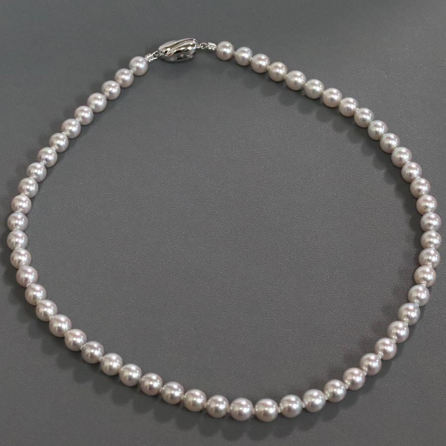 無調色パールネックレスの中古品です。無調色のアコヤ真珠と認められる鑑別書が付属します。実物はグレーがかった色味で、お使いのディスプレイによっても異なりますが、写真4 6枚目が実際の色味に近いです。特段大きなえくぼがなく、綺麗な状態です。金具にはわずかに腐食が見られます。+---+---+---+---+---+。{状態}A{素材}トップパールチェーンシルバー{サイズ}トップパール約7.0-7.5mm。チェーン長約43cm。{その他}34.2g。{付属品}鑑別書{お問合せ商品番号}25106048+---+---+---+---+---+。