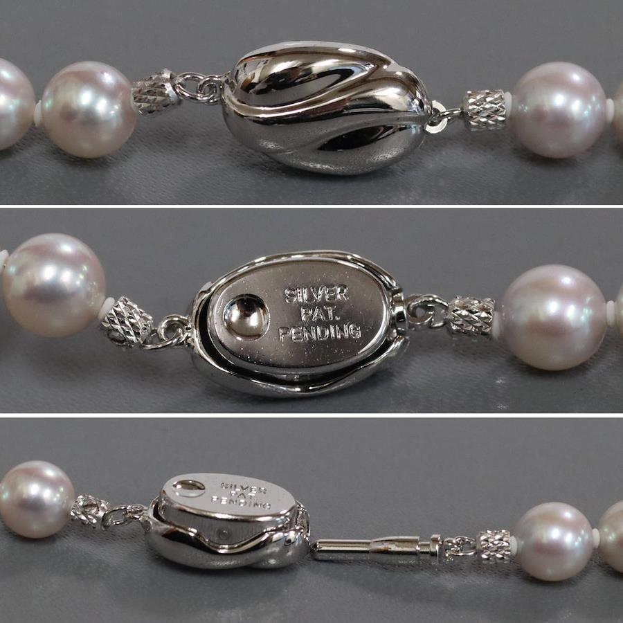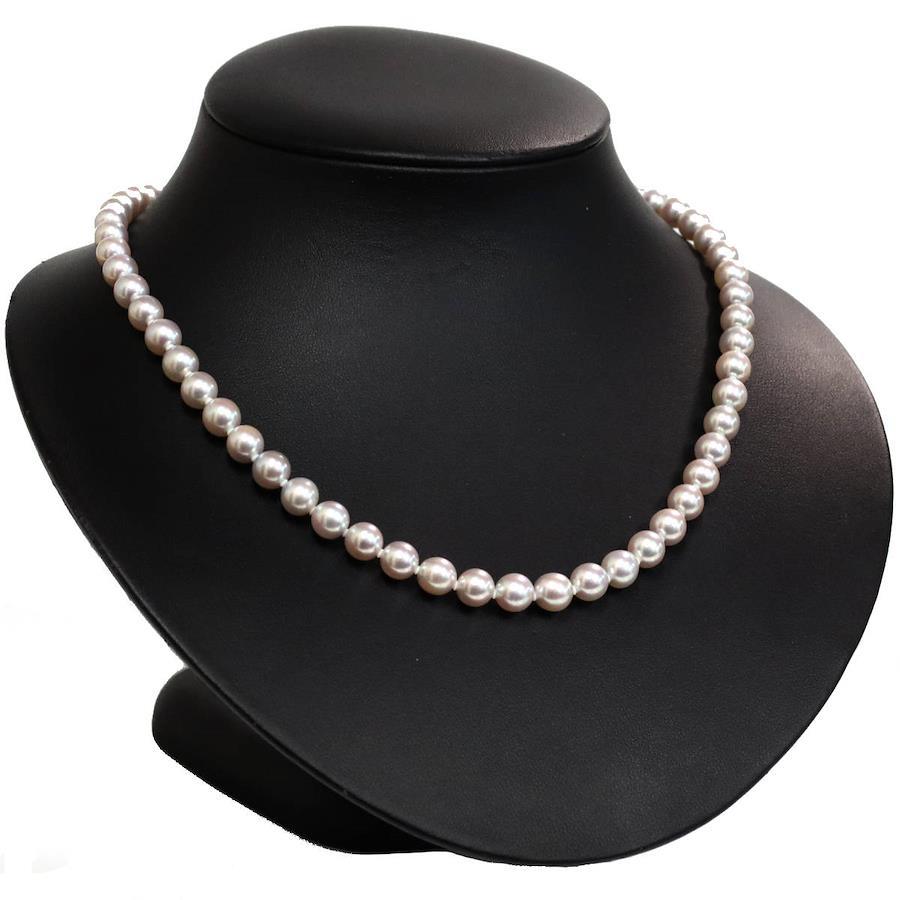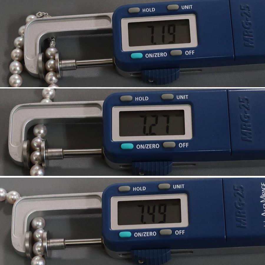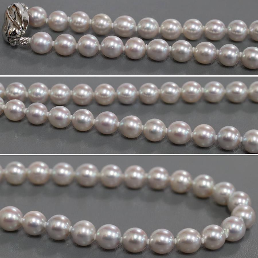 無調色パールネックレスの中古品です。無調色のアコヤ真珠と認められる鑑別書が付属します。実物はグレーがかった色味で、お使いのディスプレイによっても異なりますが、写真4 6枚目が実際の色味に近いです。特段大きなえくぼがなく、綺麗な状態です。金具にはわずかに腐食が見られます。+---+---+---+---+---+。{状態}A{素材}トップパールチェーンシルバー{サイズ}トップパール約7.0-7.5mm。チェーン長約43cm。{その他}34.2g。{付属品}鑑別書{お問合せ商品番号}25106048+---+---+---+---+---+。