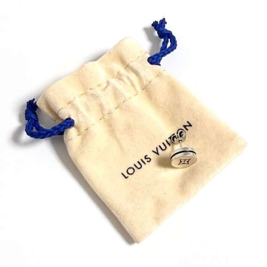 One earring only. Louis Vuitton men's stud earring, LV Tailor, silver.