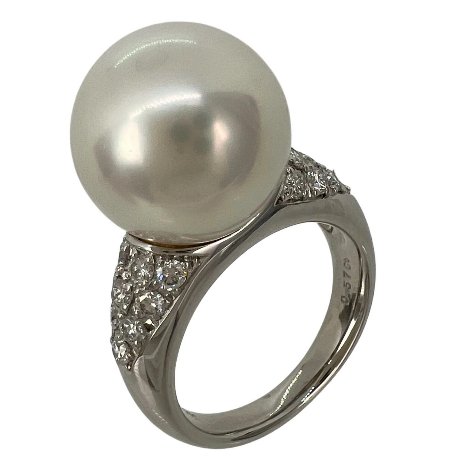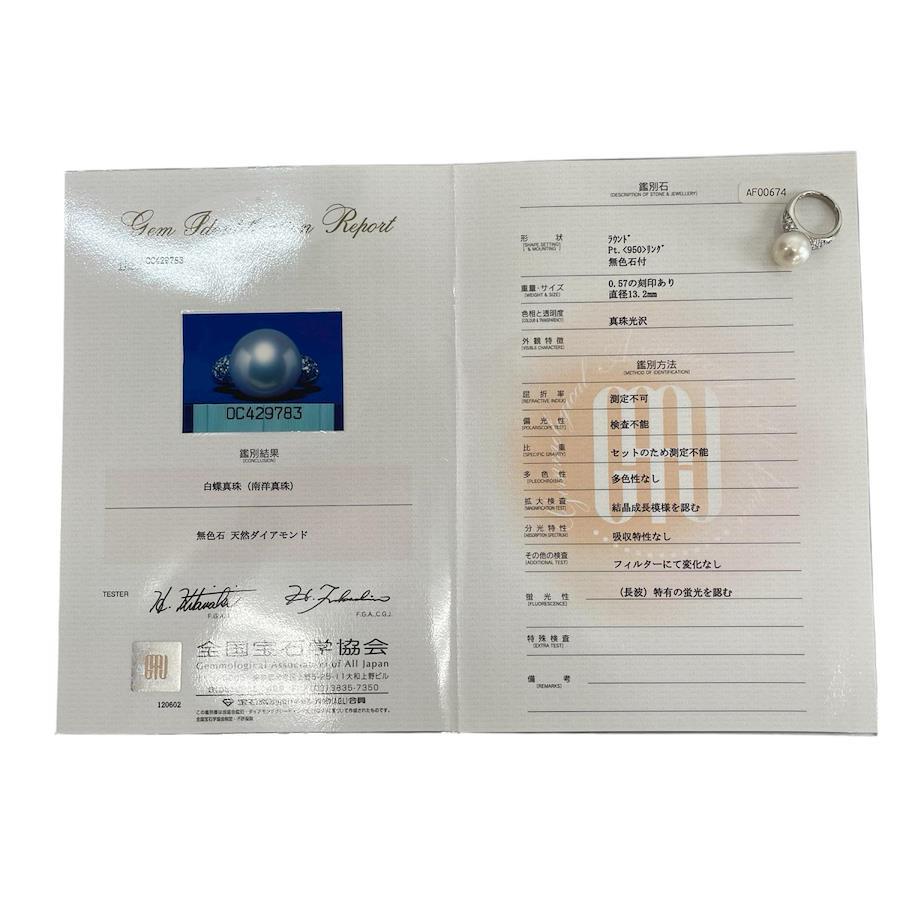 Pearl Ring, Size 11.5, 13.2mm Pearl, Pt950 Platinum, White South Sea Pearl, Diamond, 0.57, Approximately 11.8g, Women's, Pre-owned, Rank A
