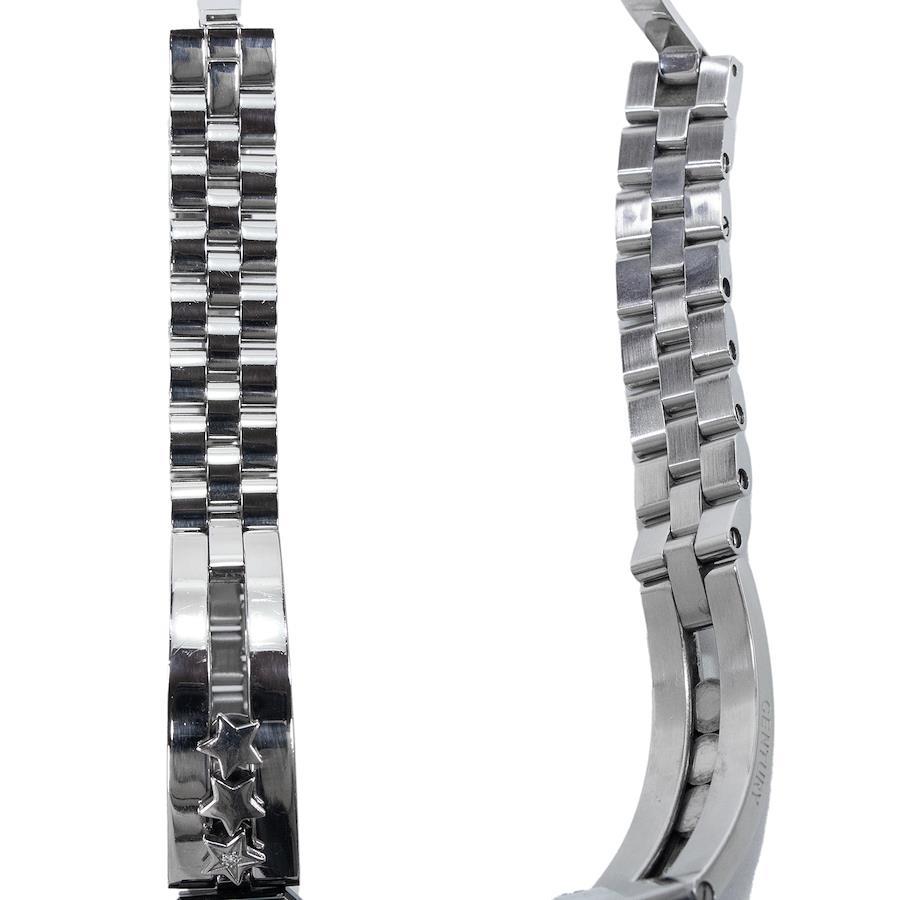 文字盤にあしらわれた10粒のダイヤモンドとブレスレットの星飾りが、ロマンティックな印象です。