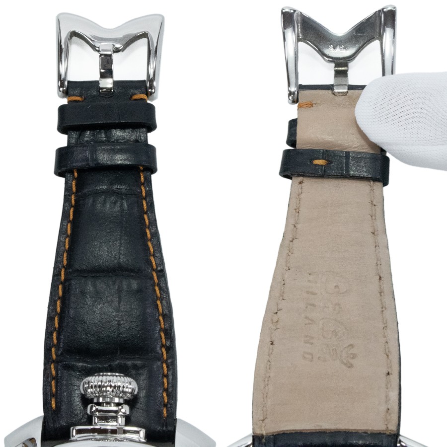 上質なブラックのレザーベルトが全体をスマートに引き締め、大人の遊び心を演出いたします。