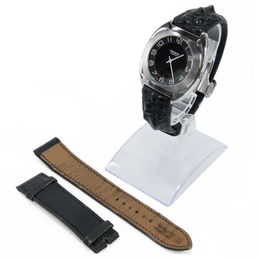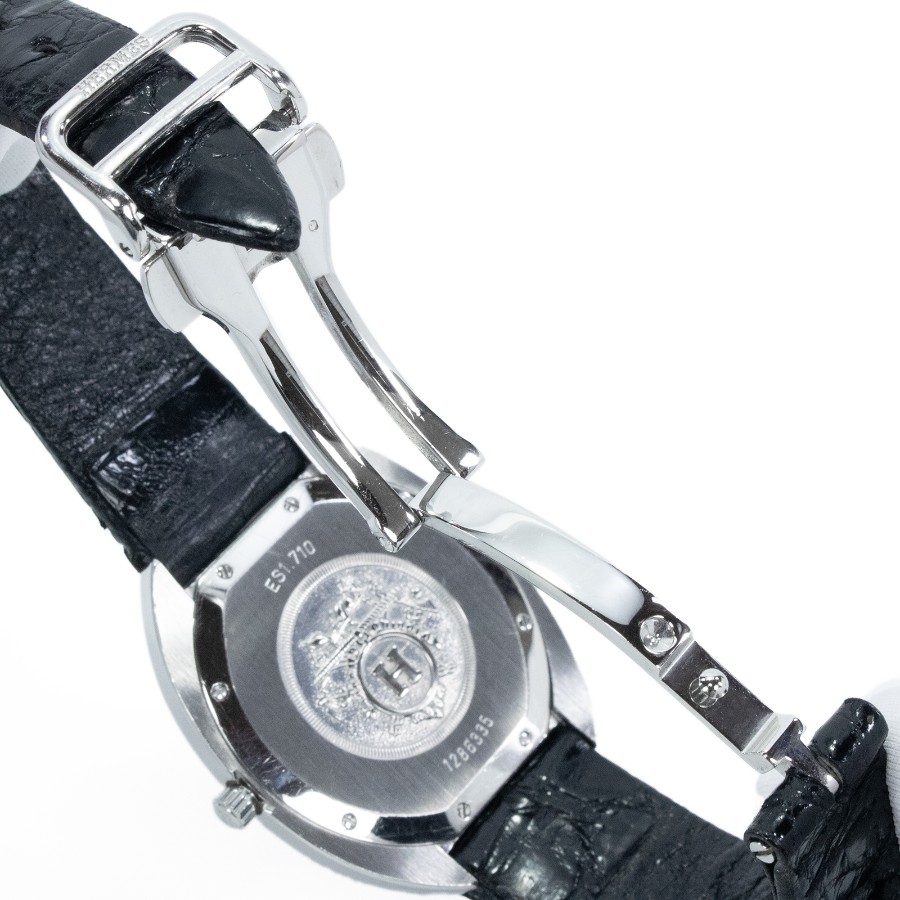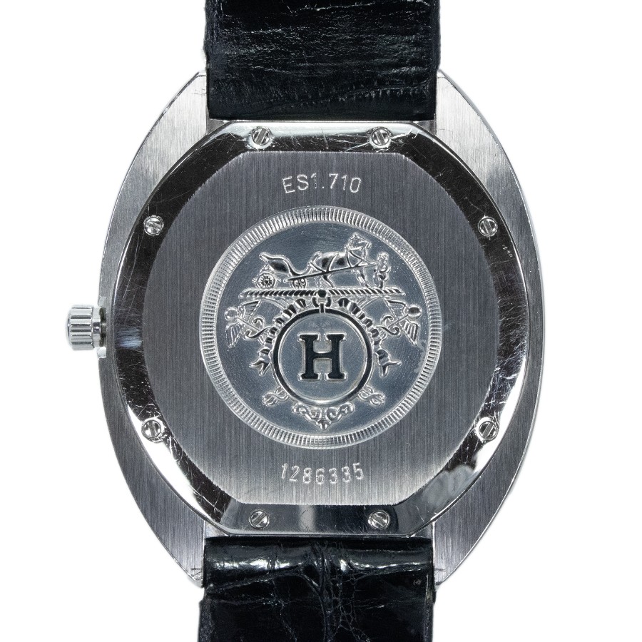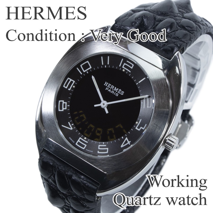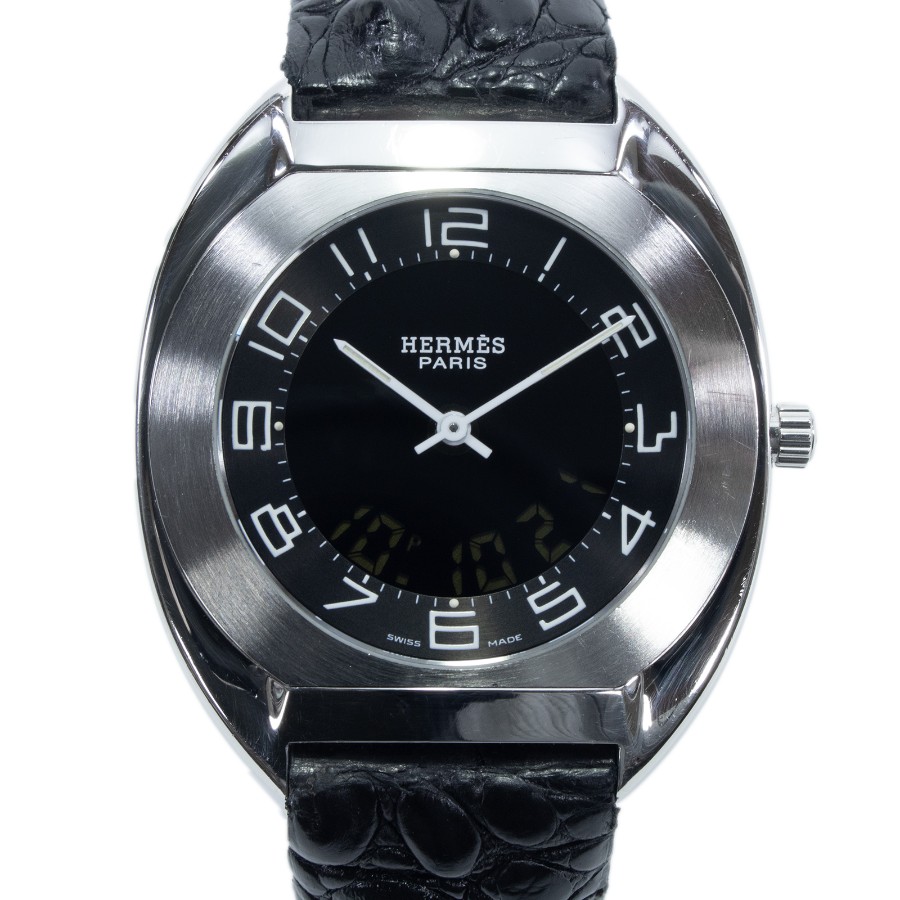 こちらは、なめらかな曲線を描くトノー型のケースが美しい、エルメスのエスパス・腕時計でございます。