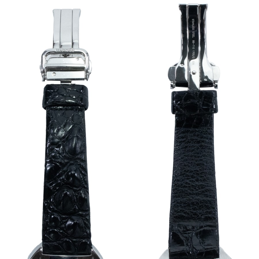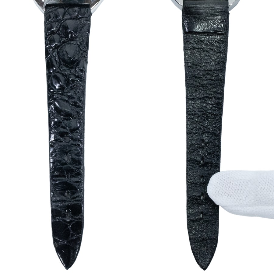 ケース・バンドの素材:ステンレススチール・クロコダイル型押しレザー