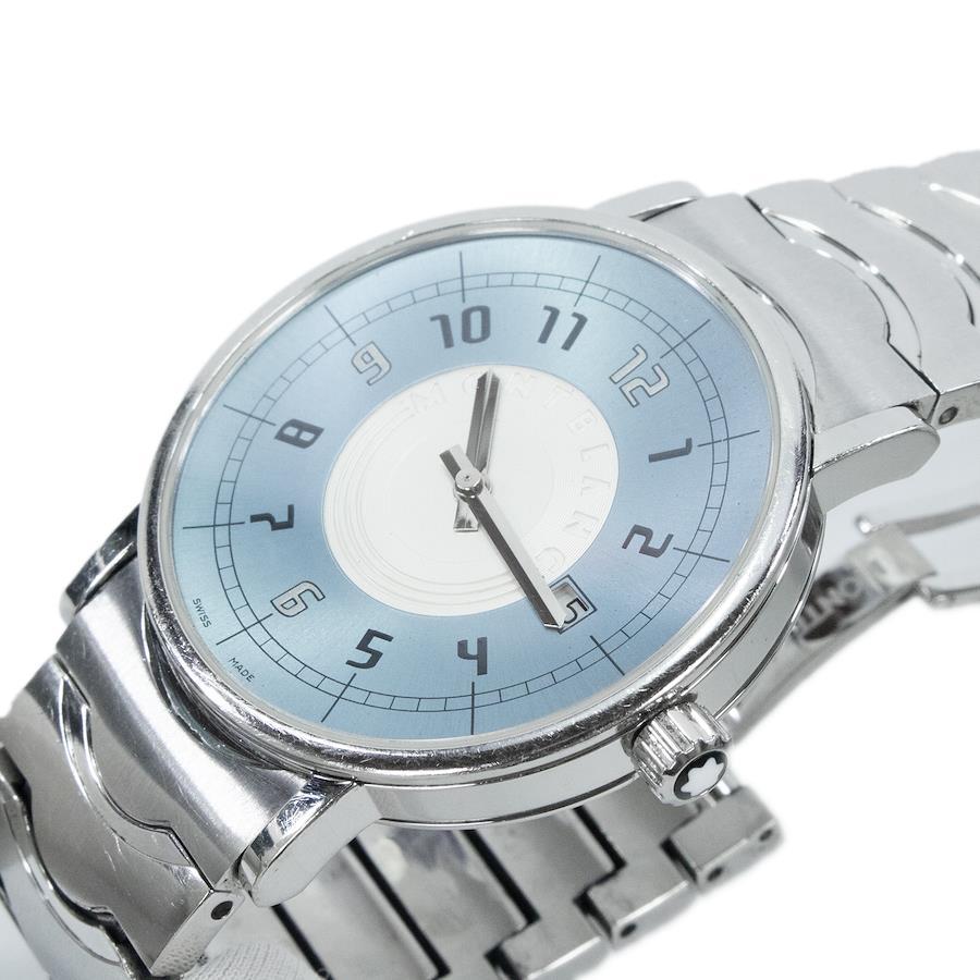 爽やかな水色とホワイトシルバーのバイカラー文字盤が、他にはない希少な魅力を放っております。