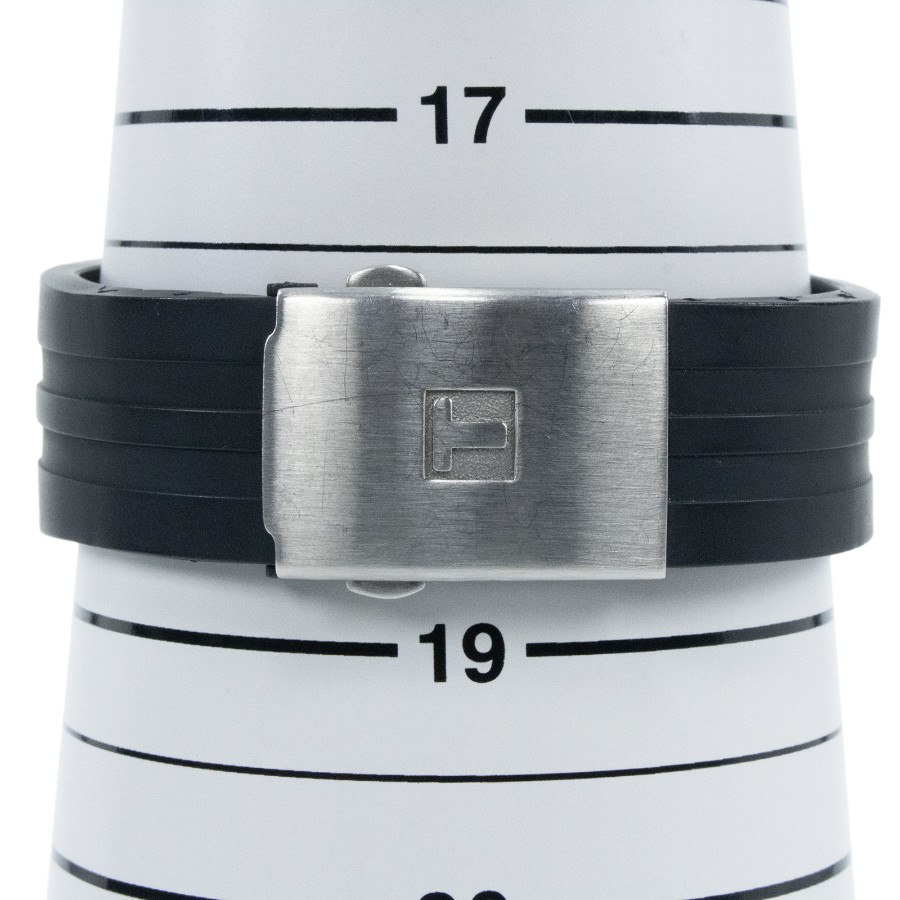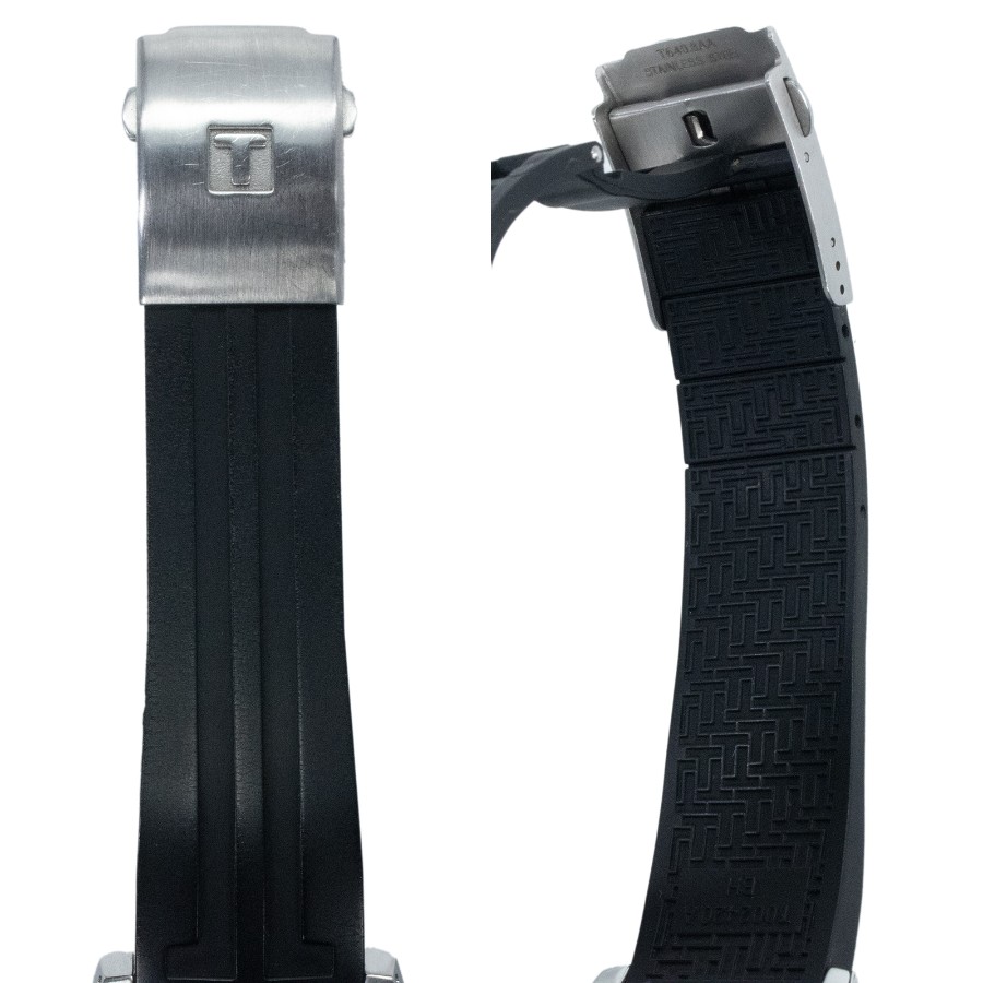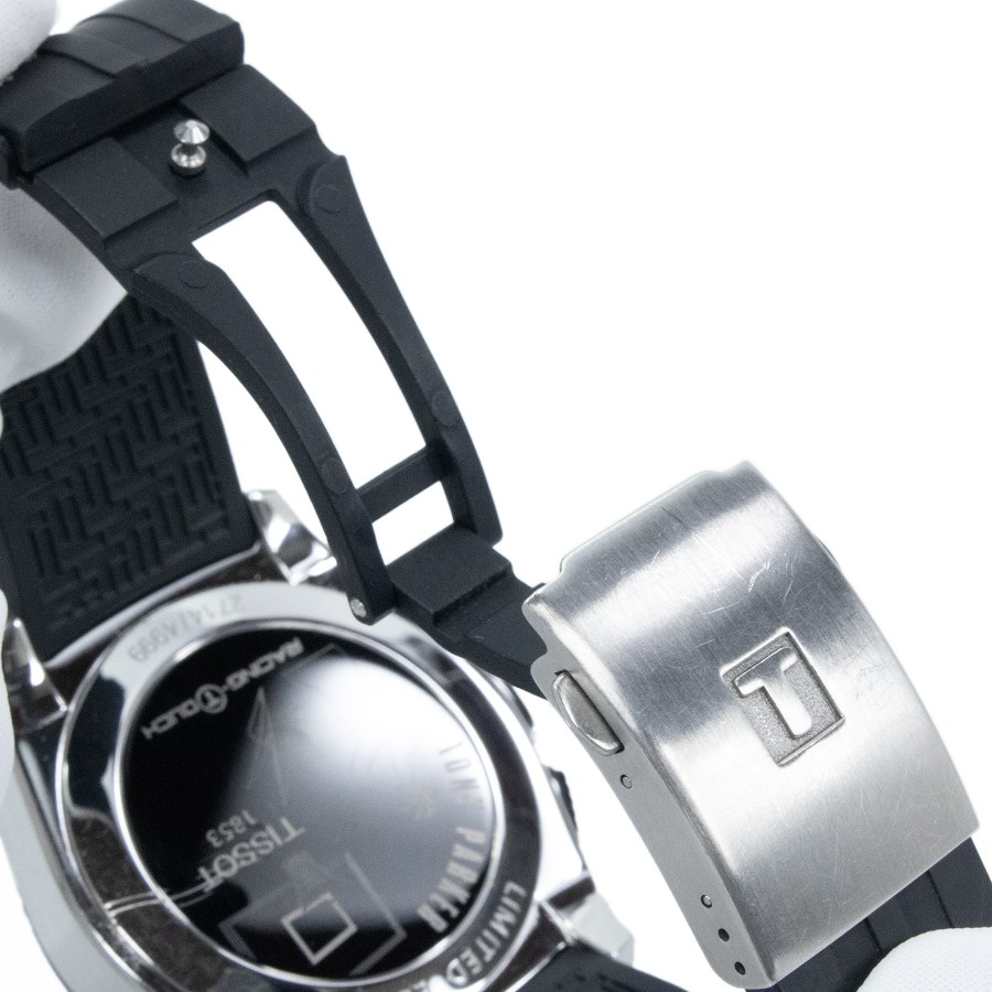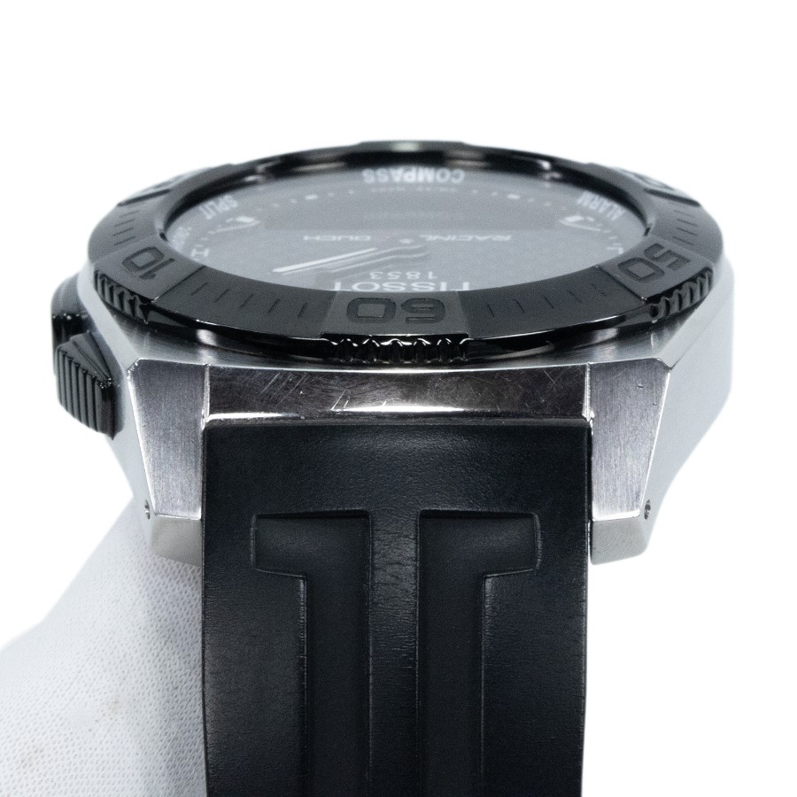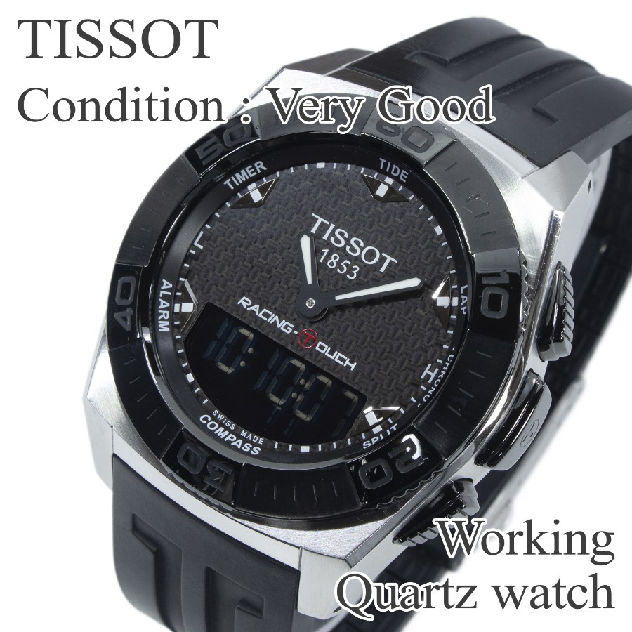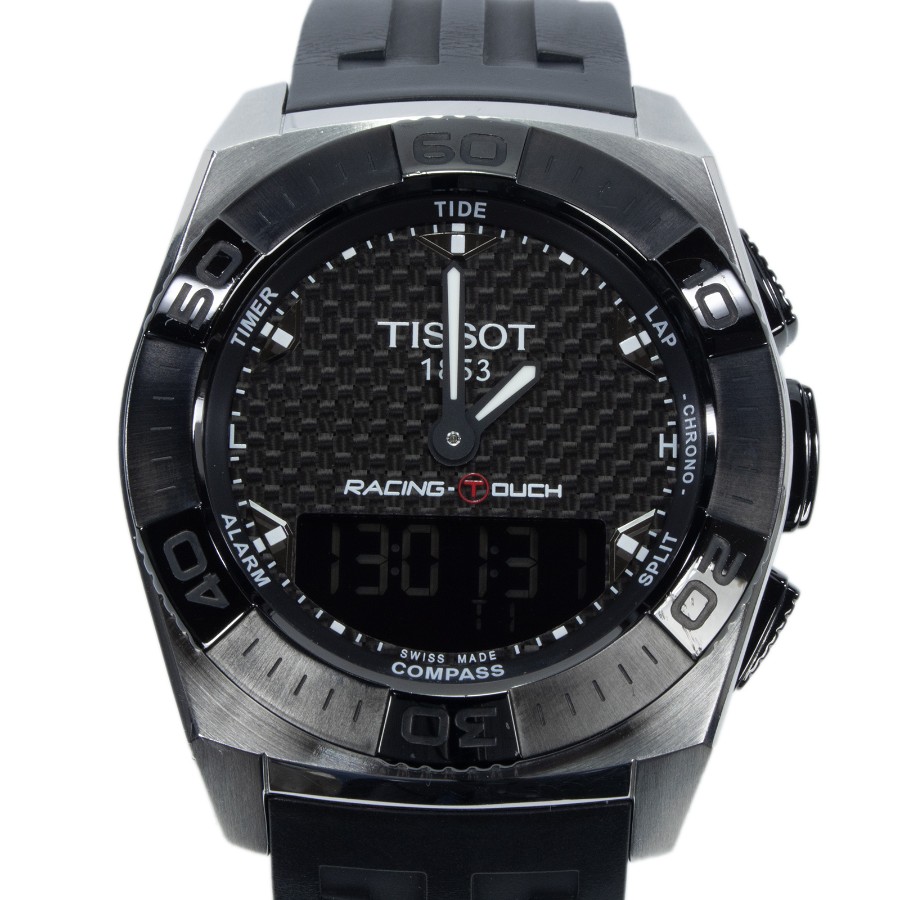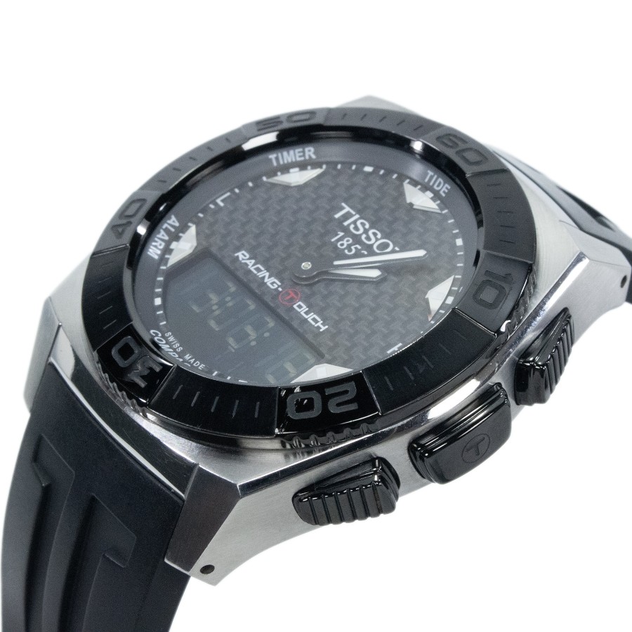 こちらは、スポーティなカーボン文字盤が手元で圧倒的な存在感を放つ、ティソのレーシングタッチ・腕時計でございます。