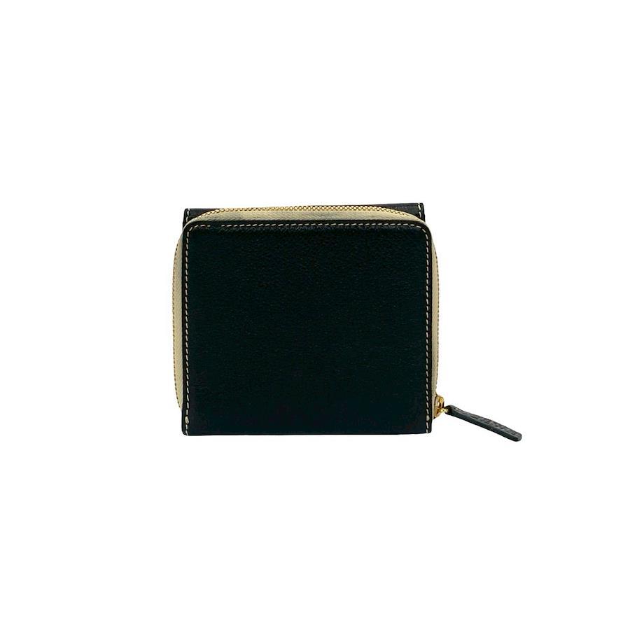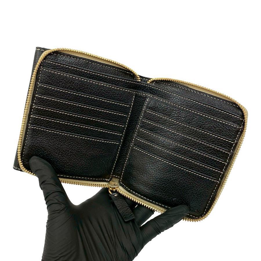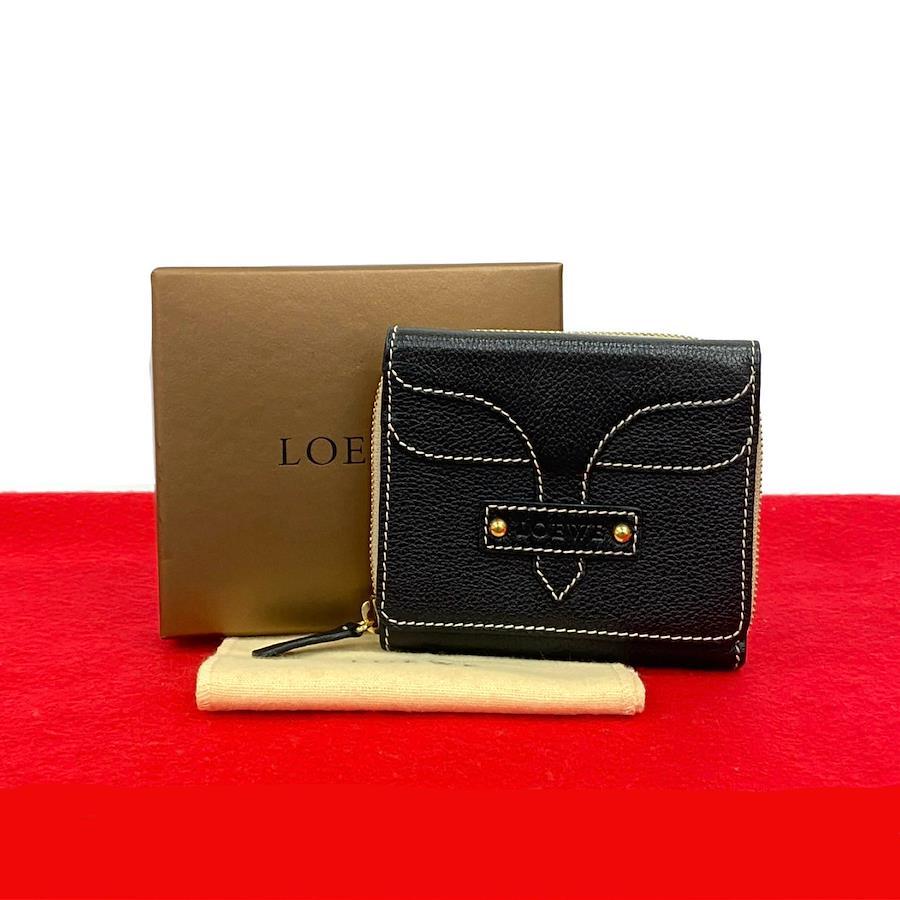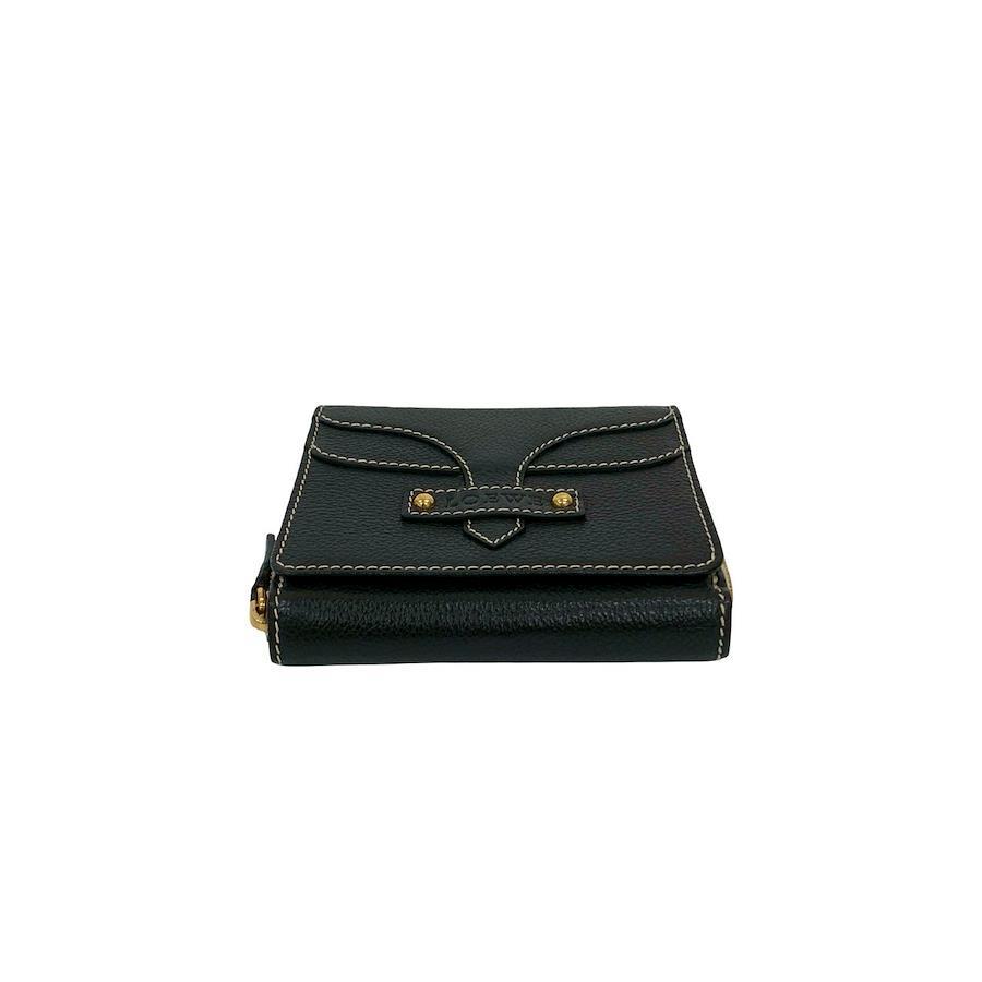 LOEWE logo-embossed genuine leather round-zip bifold wallet with bill and coin compartment, black, model 416-8. Includes box.