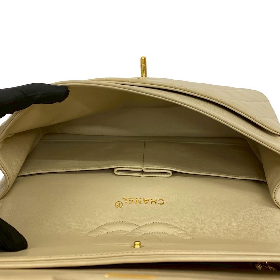 Comes with box, bag, card, and sticker. 2nd series CHANEL Coco Mark double flap lambskin chain shoulder bag in ivory, 79984