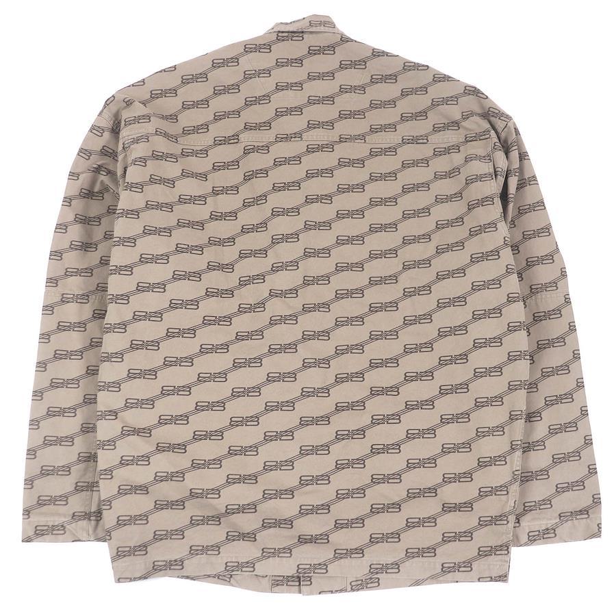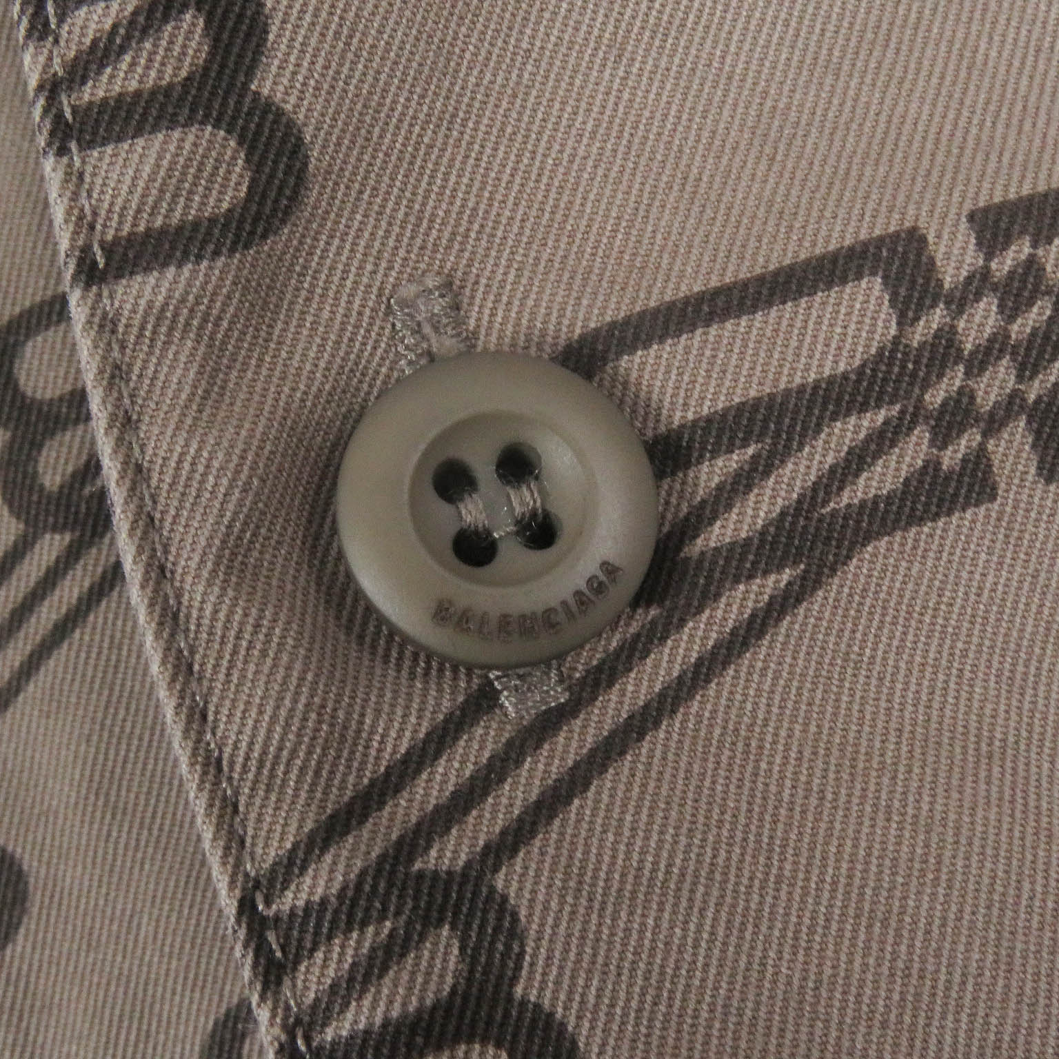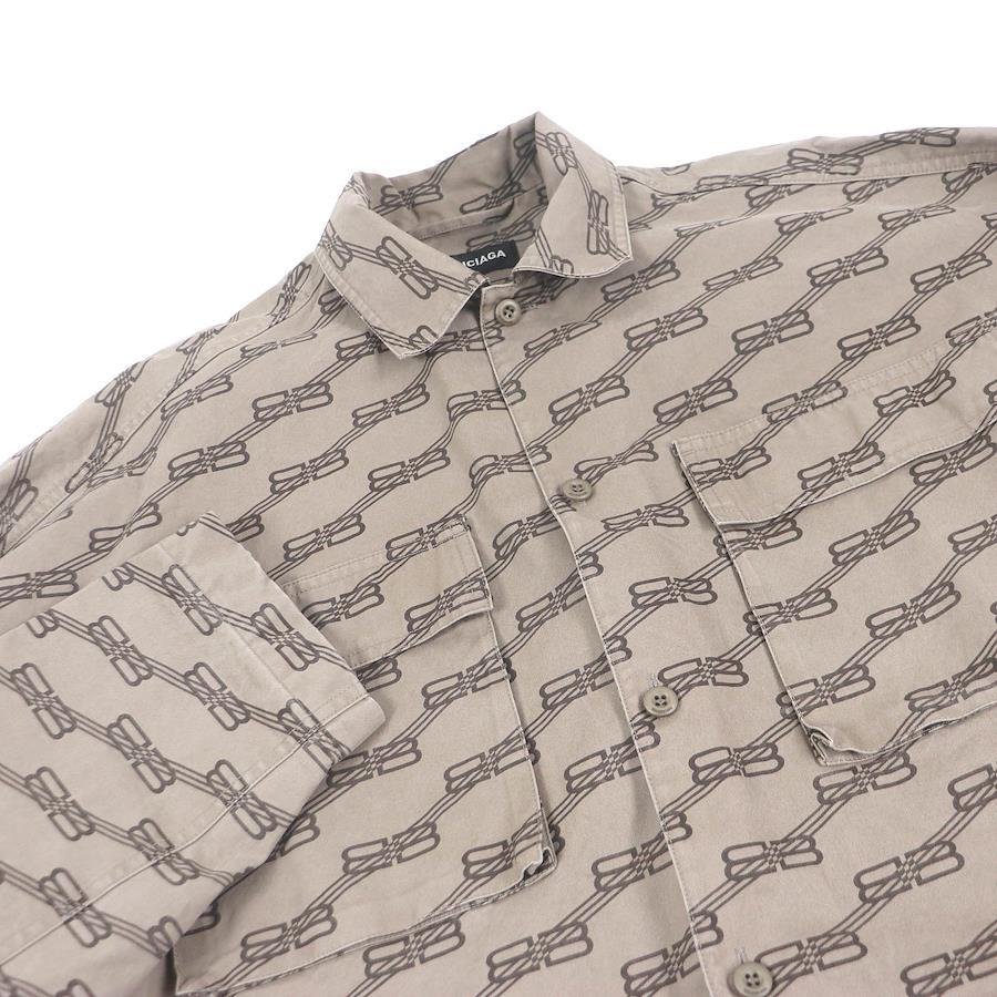 Excellent condition BALENCIAGA 2022 704390 cotton BB logo monogram all-over print military cargo shirt coverall, brown, size 37, includes hanger and garment storage, authentic, made in Italy, men's [pre-owned]