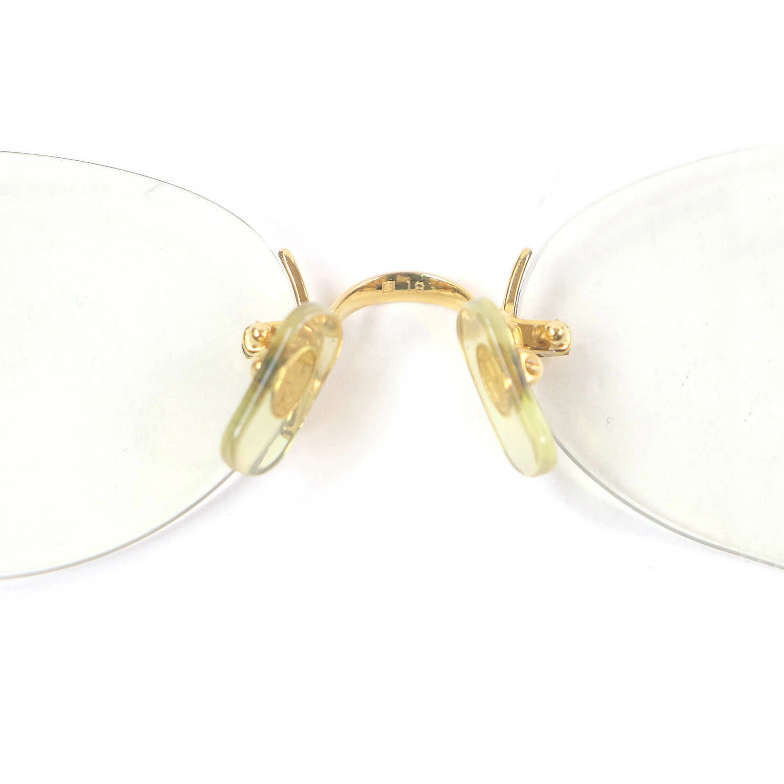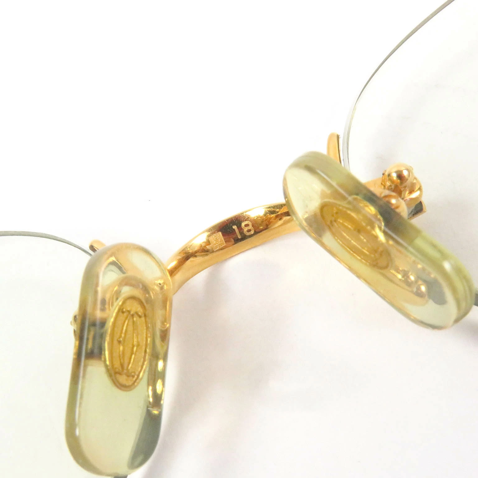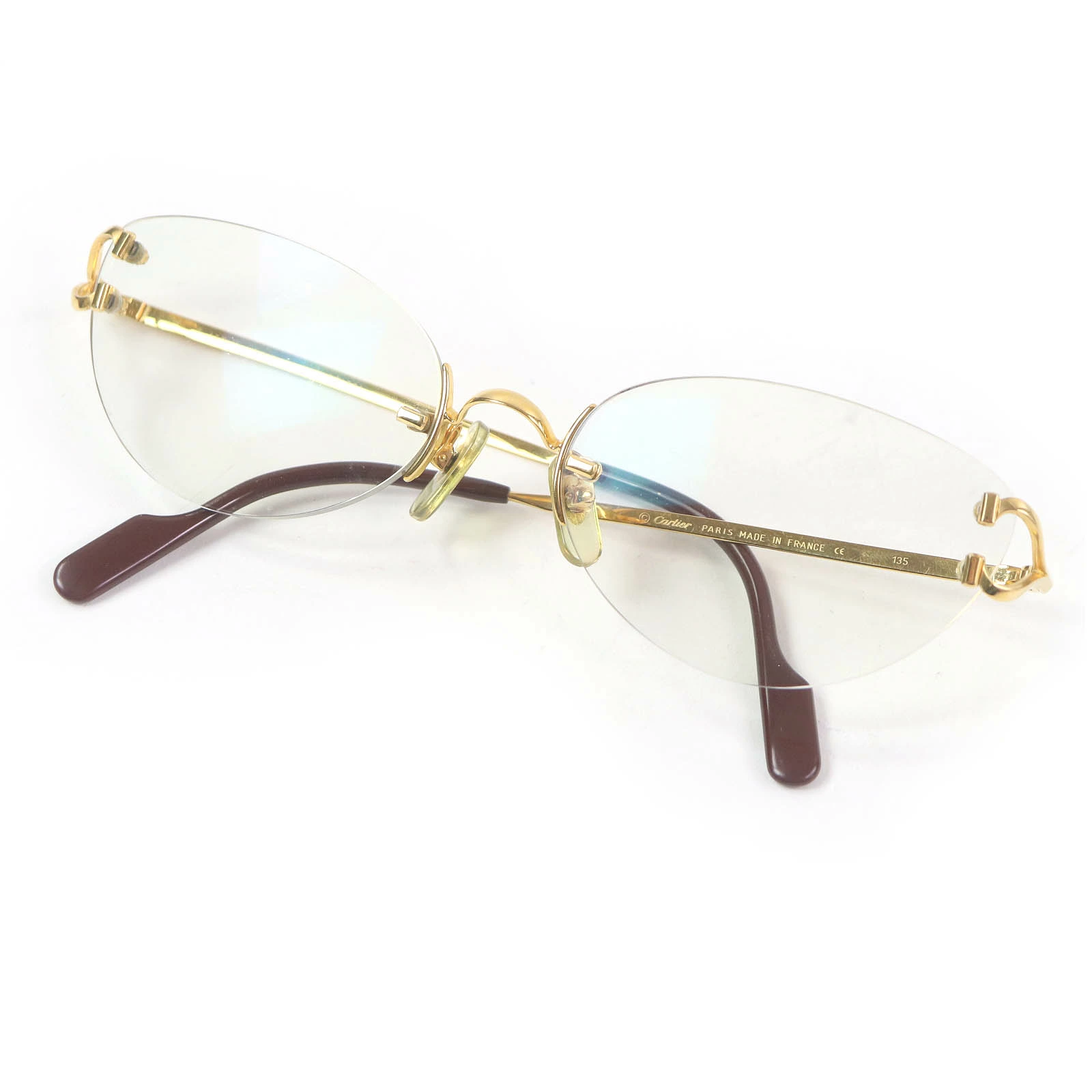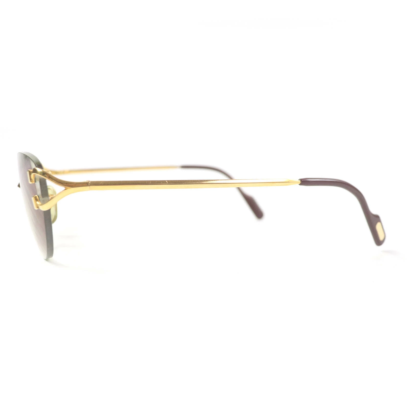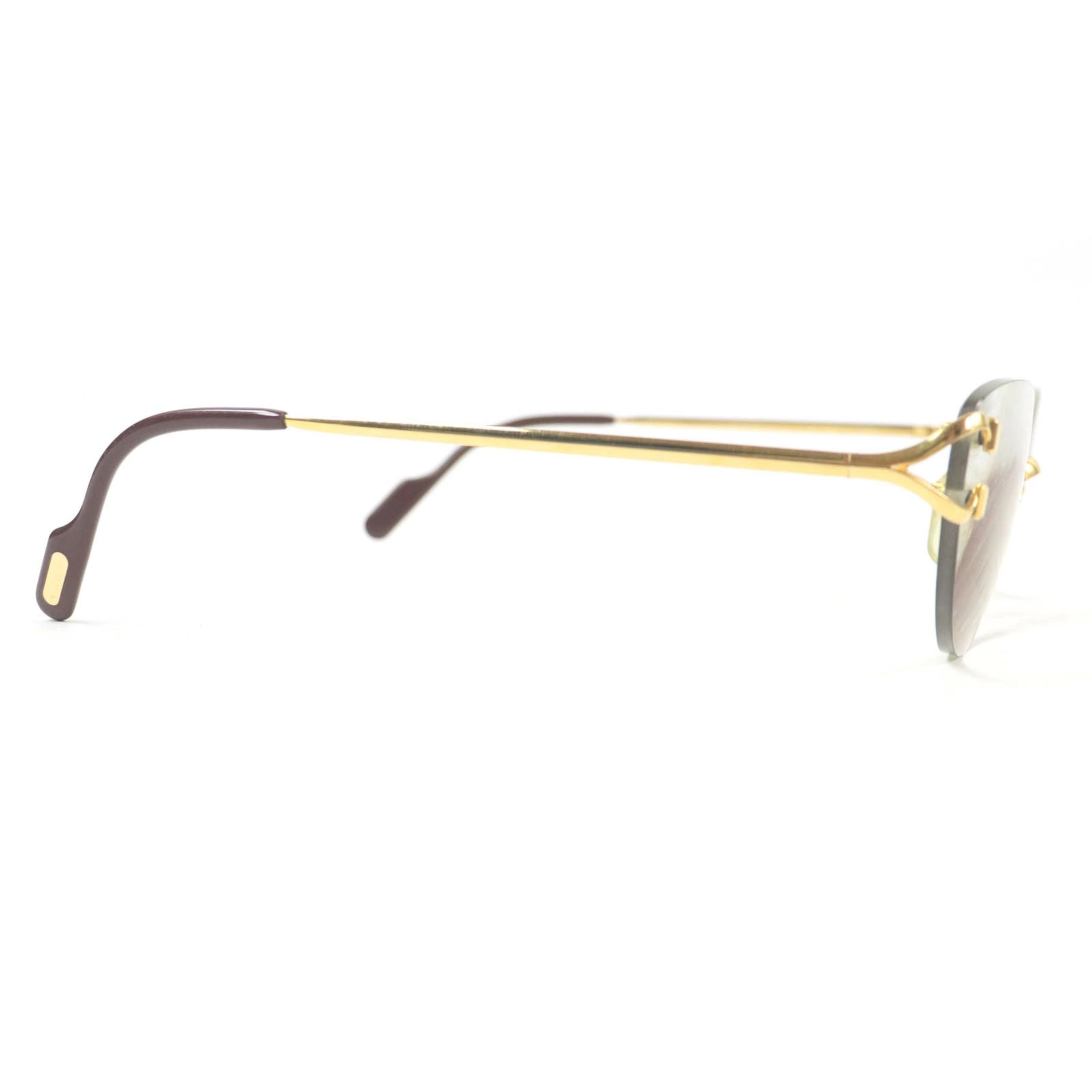 Excellent condition Cartier C logo two-point rimless eyeglasses in gold and burgundy, 18 prescription, made in France, for men. Pre-owned.