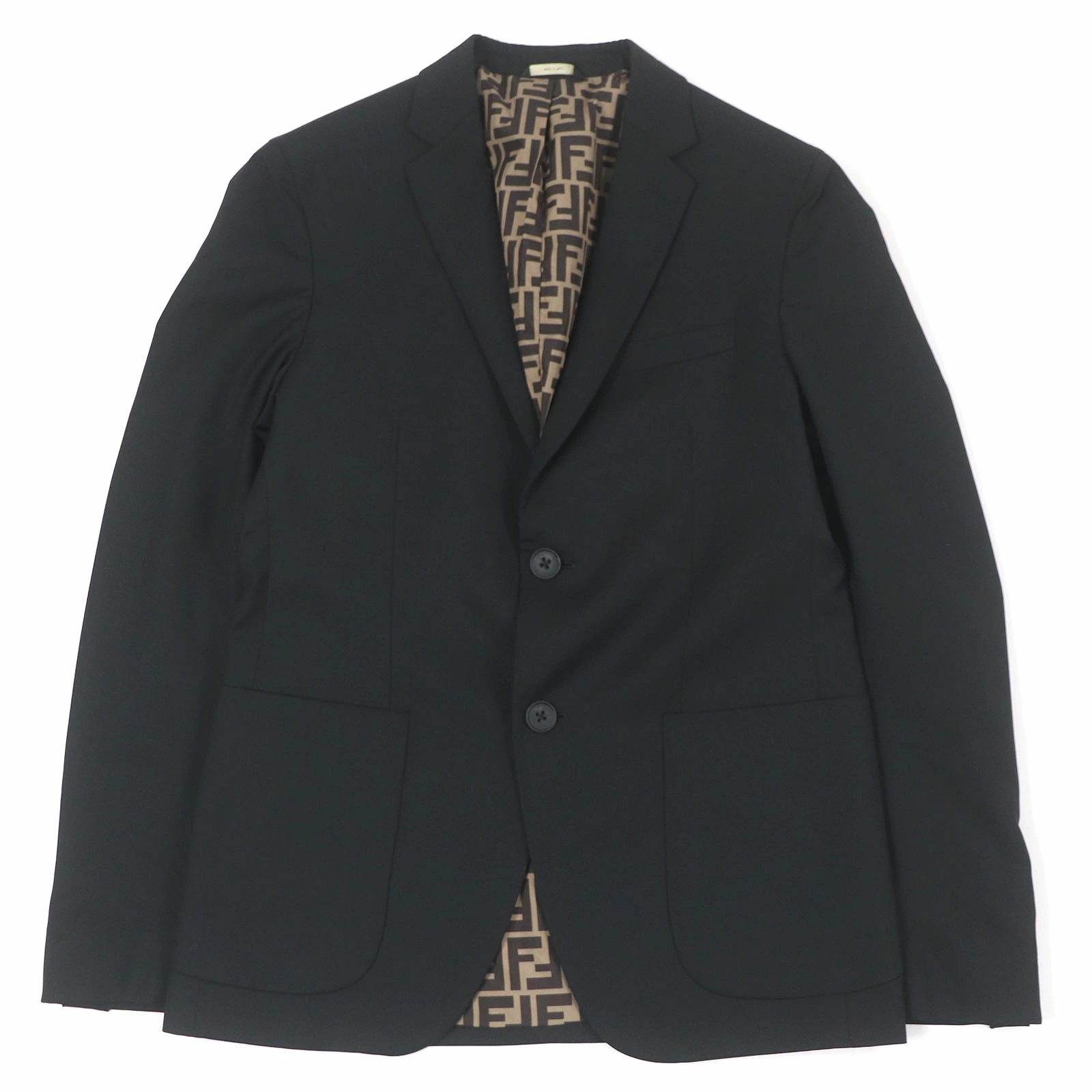 Excellent condition FENDI FJ0404 Zucca single-breasted tailored jacket/blazer with FF logo lining, black, size 46, made in Italy, authentic, men's [pre-owned]