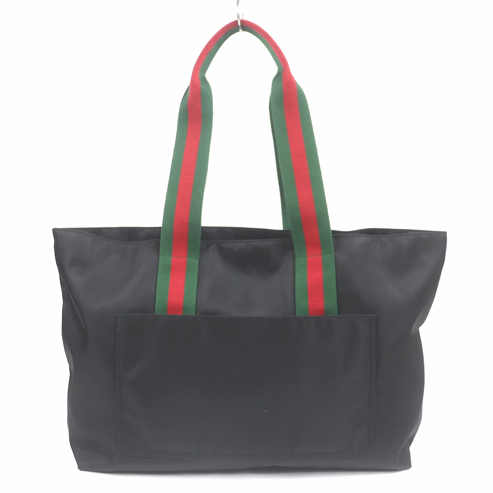 Excellent condition GUCCI 802172 Nylon Sherry Line Web Line Large Logo Tote Bag Black with Dust Bag Made in Italy Men's [Pre-owned]