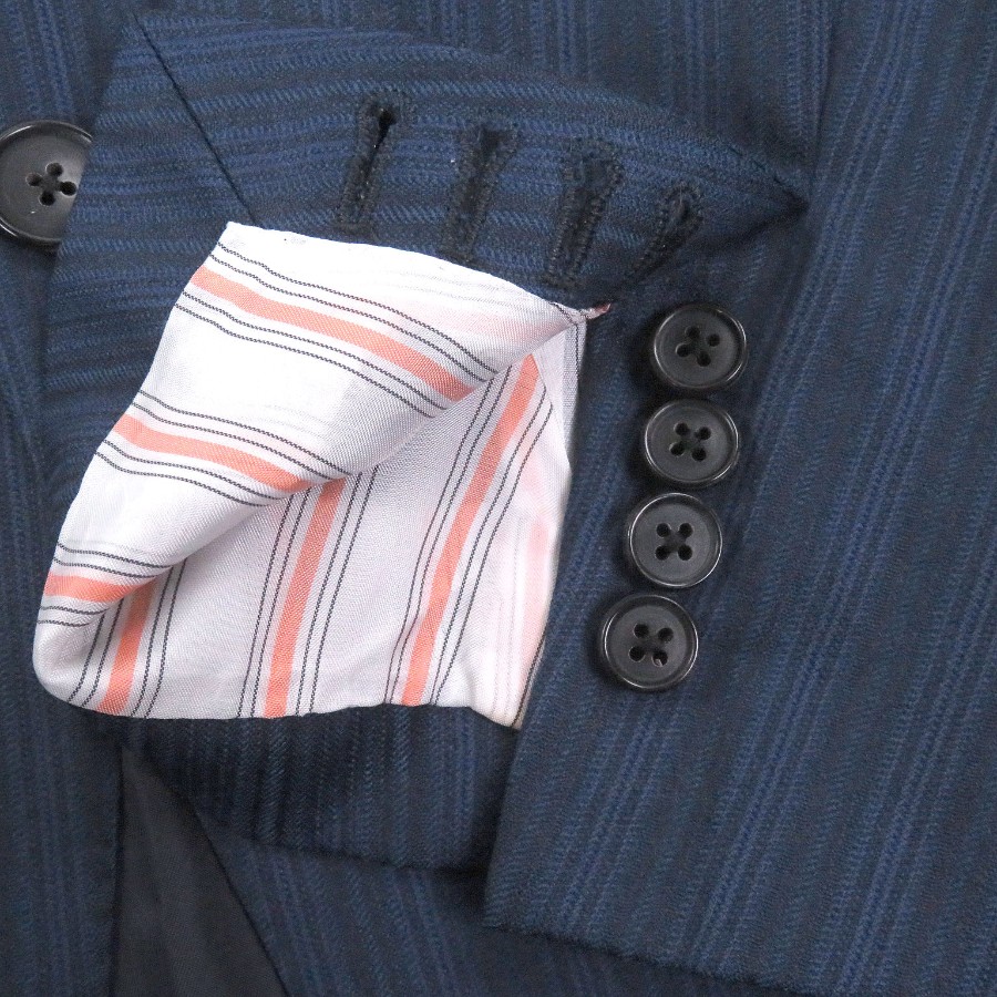 | サイズ (size) | 【表記】54 【実寸】ジャケット 身幅:約50cm 着丈:約76.5cm 肩幅:約46cm 袖丈:約66cm ボトムス ウエスト:約90cm 股上:約33cm 股下:約80cm 裾幅:約22.5cm 裾出し幅:約7cm わたり幅:約32cm 【仕様】ジャケット:シングル 2ボタン センターベント 総裏地 開き見せ パンツ:2タック シングル 【日本サイズに関しましては各ブランド公式サイトをご参照下さい】 | ||||||||||||||||
