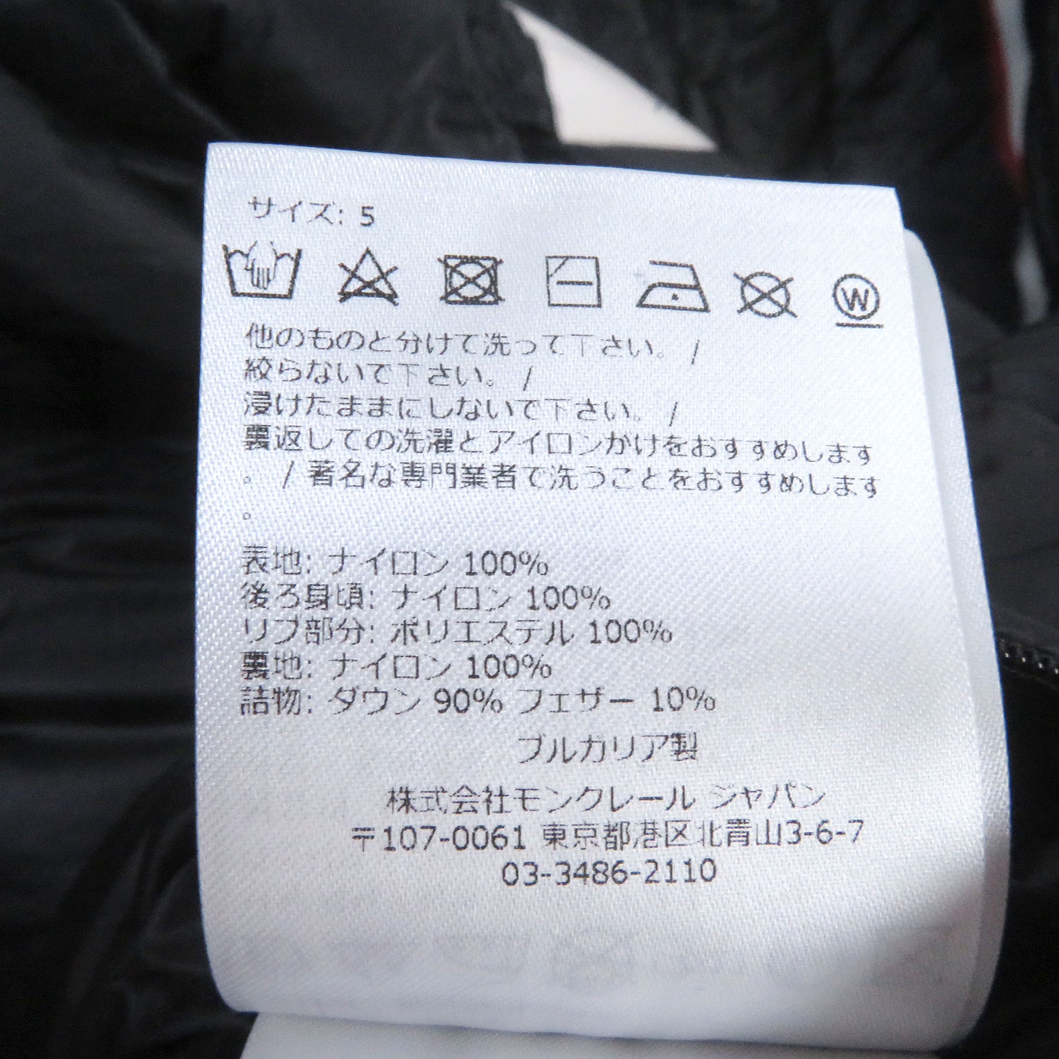 | 素材 (material) | 本体:ナイロン100% 中綿:ダウン90% :フェザー10% リブ:ポリエステル100% | ||||||||||||||||
