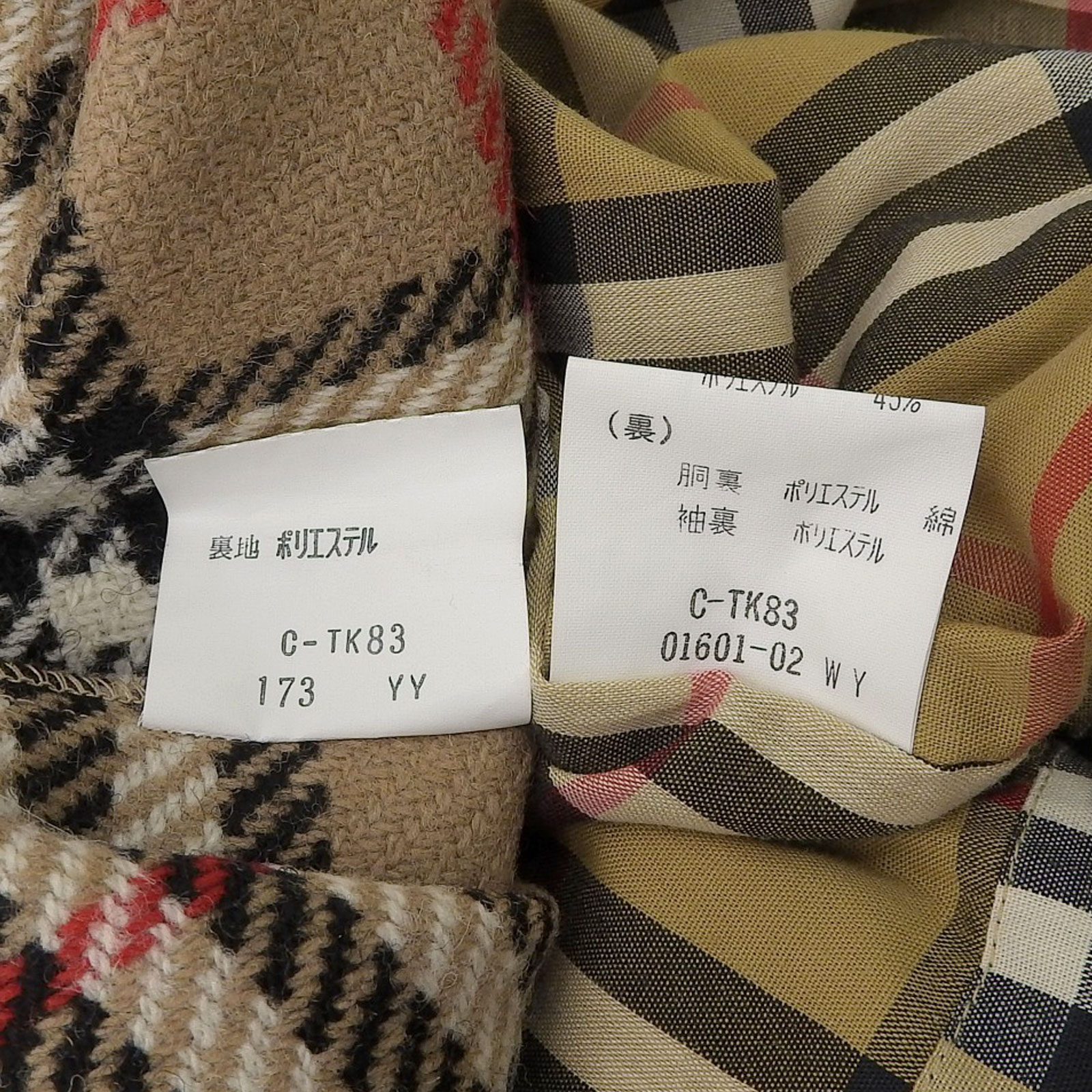 | 素材 (material) | 表地:コットン55% :ポリエステル45% 裏地:ポリエステル :コットン 袖裏地:ポリエステル ライナー表地 毛100% ライナー裏地 ポリエステル | ||||||||||||||||