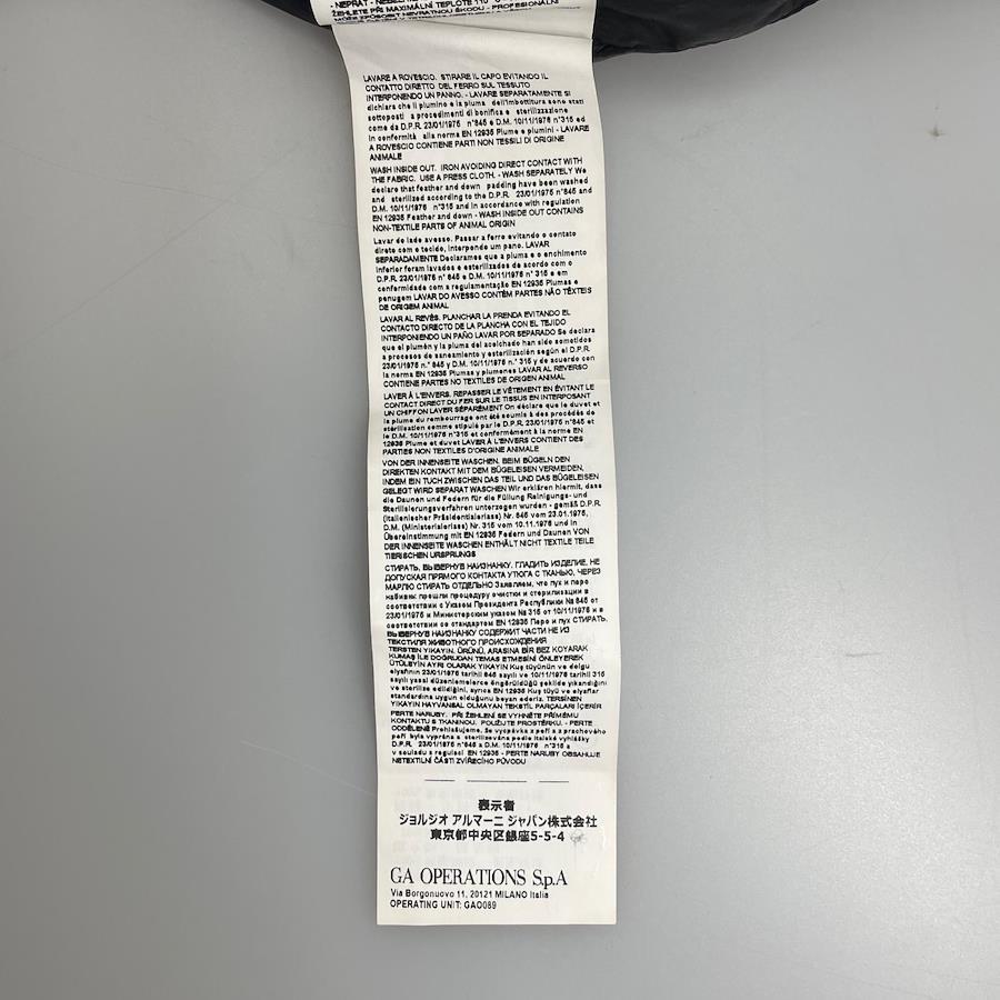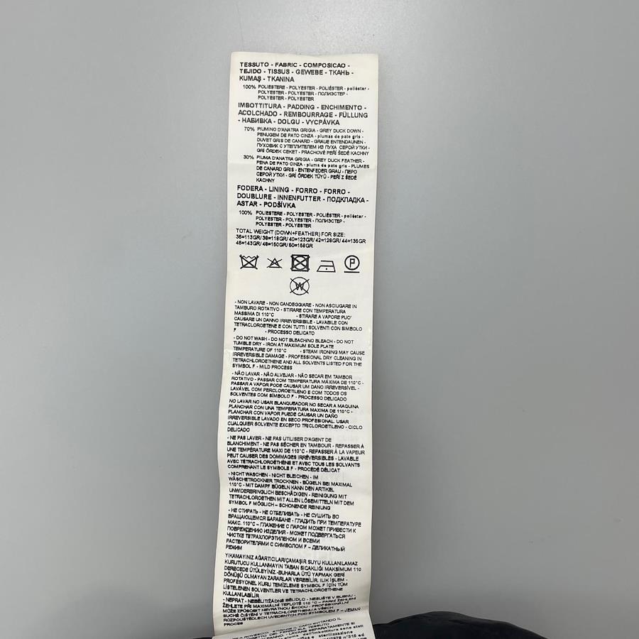 | 素材 (material) | 表地:ポリエステル100% 詰物:ダウン70% :フェザー30% 一部:ポリエステル100% | ||||||||||||||||