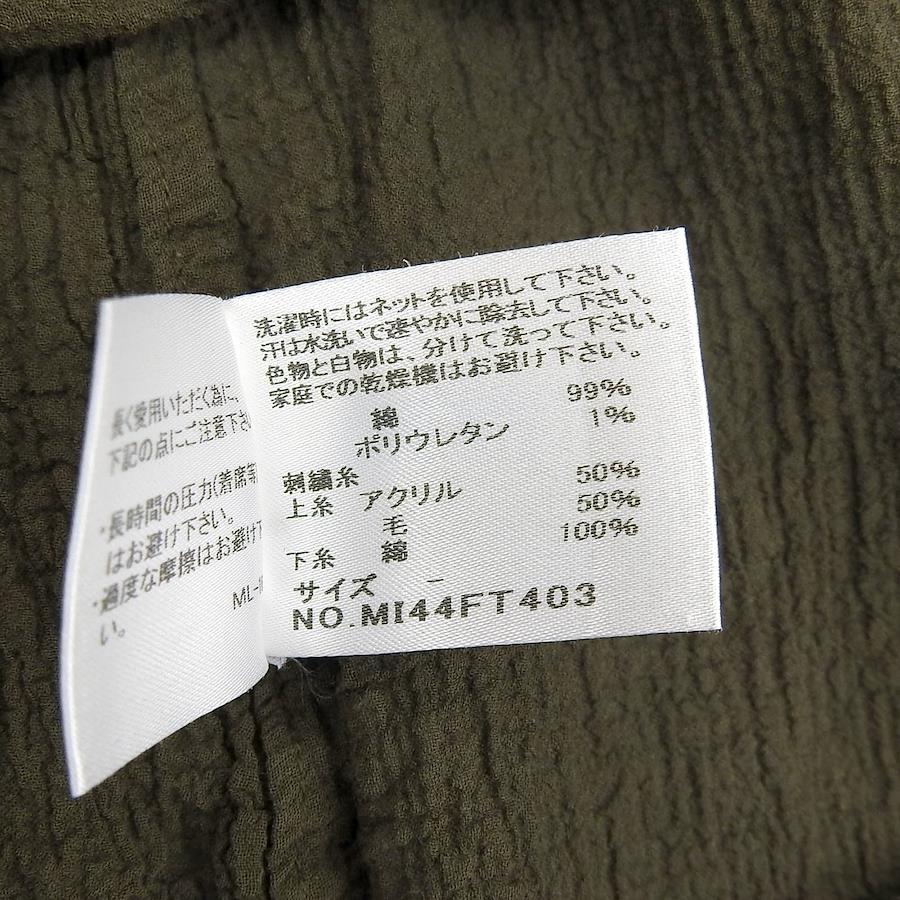 | 素材 (material) | 本体:コットン99% :ポリウレタン1% (刺繡糸) 上糸:アクリル50% ウール50% 下糸:コットン100% | ||||||||||||||||