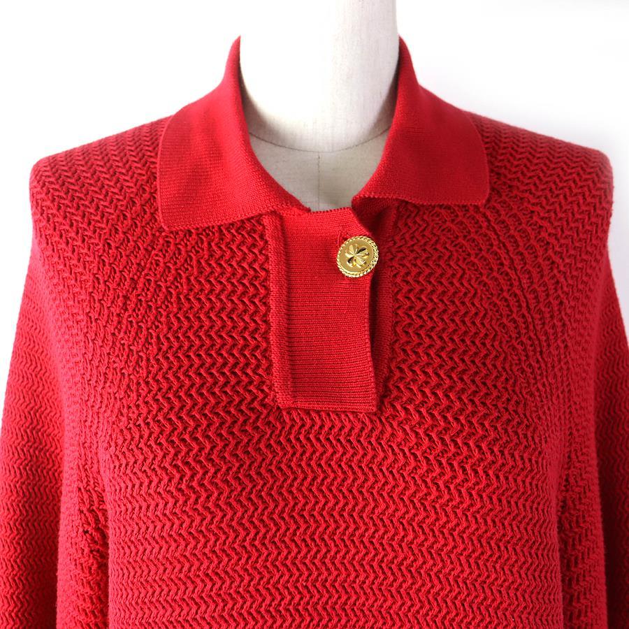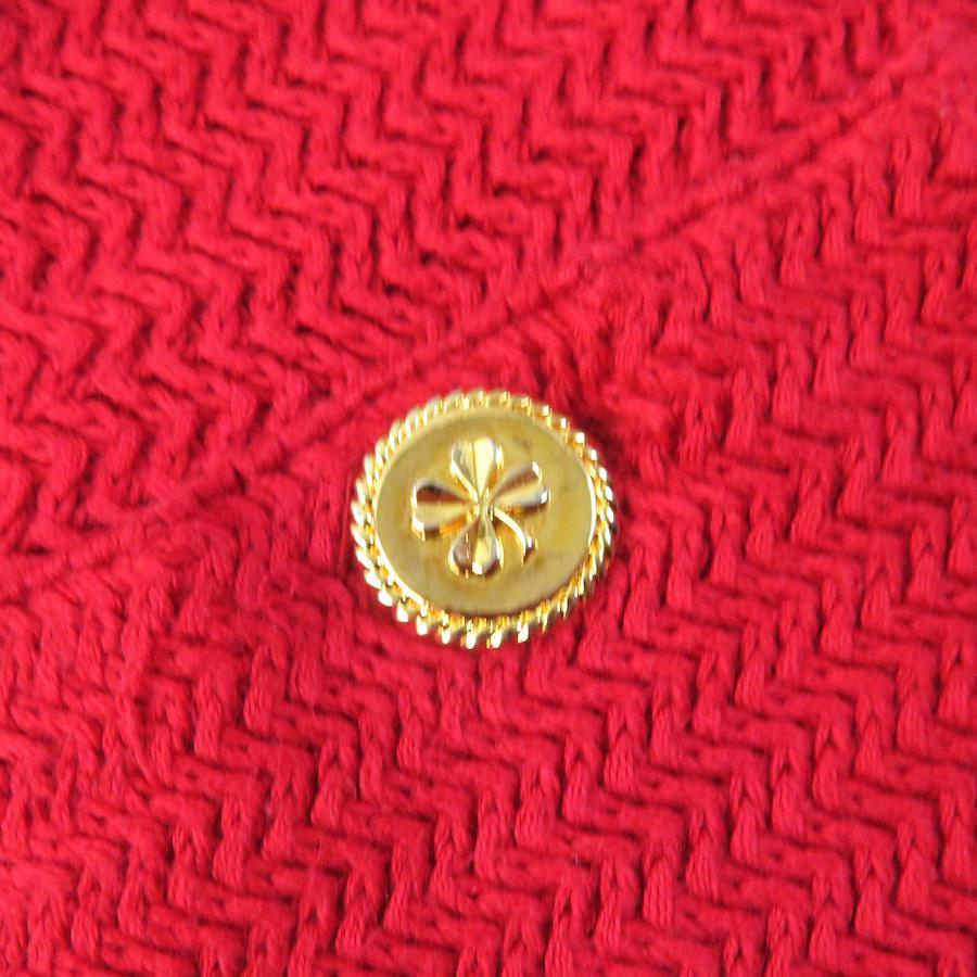 Excellent condition CHANEL vintage 100% cotton knit tunic dress with embroidered Coco logo and gold clover buttons. Red, approximately S-M size. Women's. [Pre-owned]