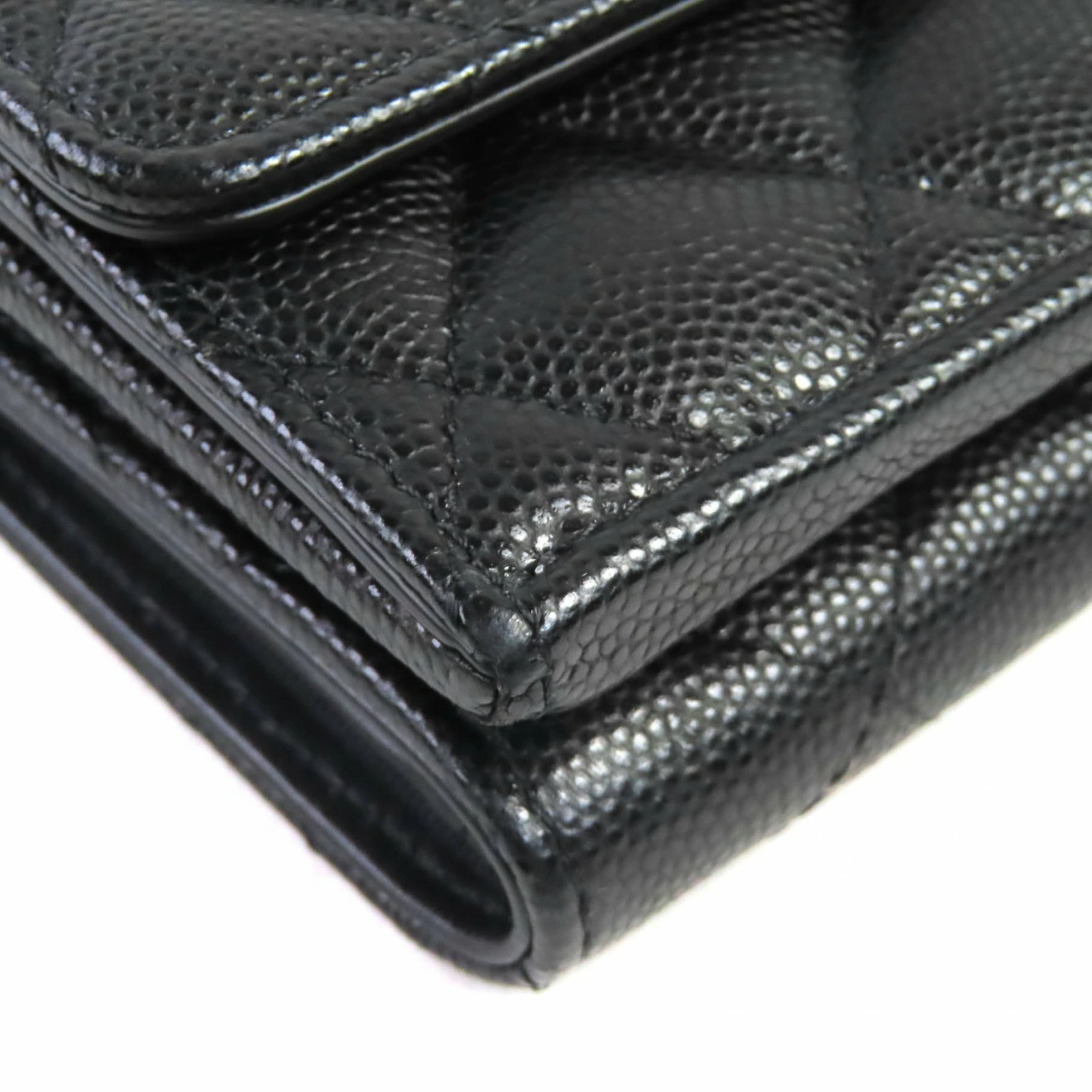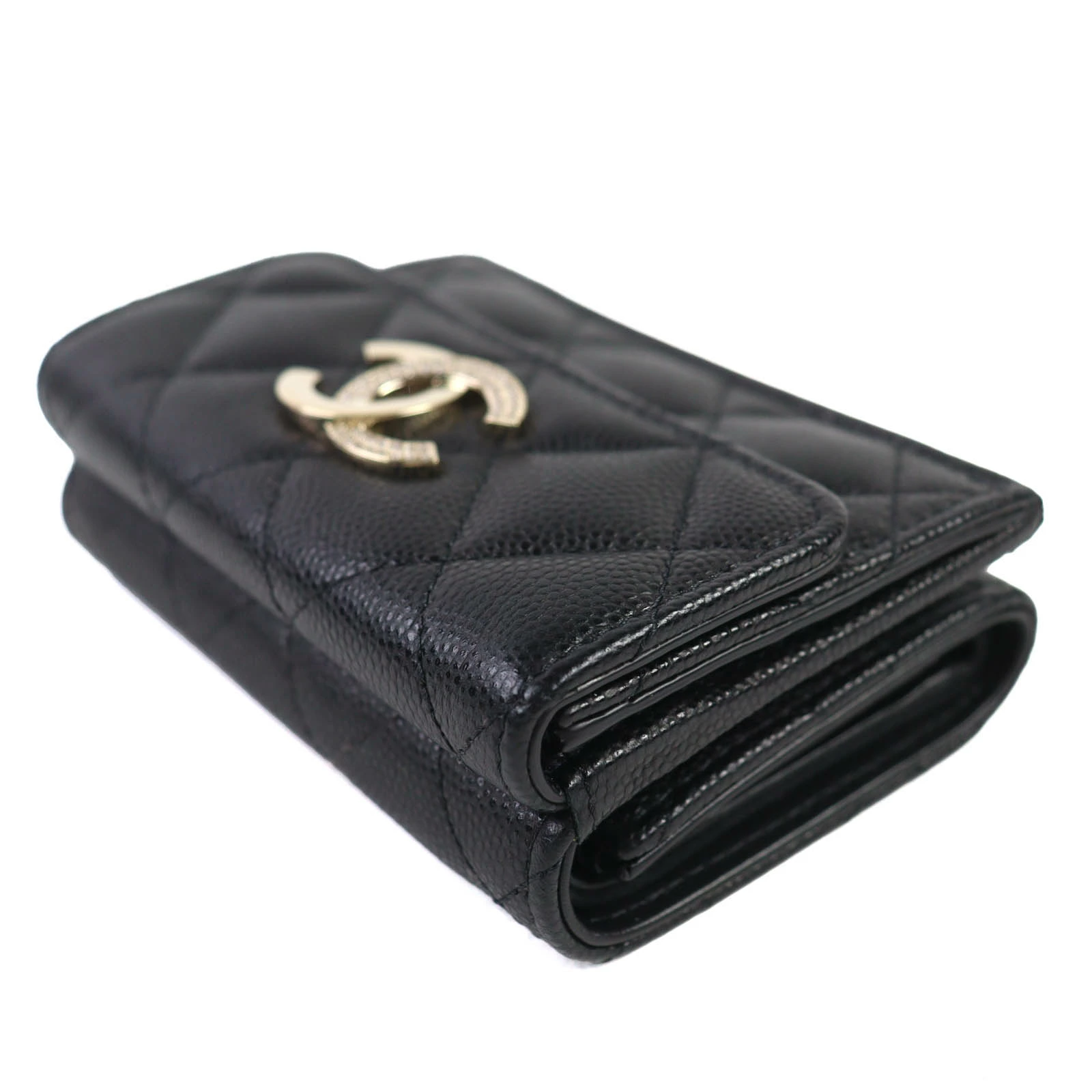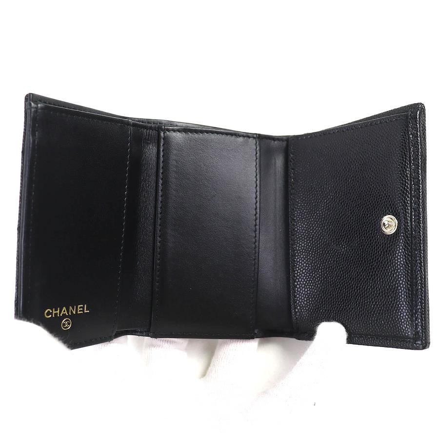 Excellent condition CHANEL AP4173 Caviar Leather Coco Mark Matelasse Small Flap Wallet, Tri-fold Wallet in Black with Gold Hardware, Dust Bag Included. Pre-owned.
