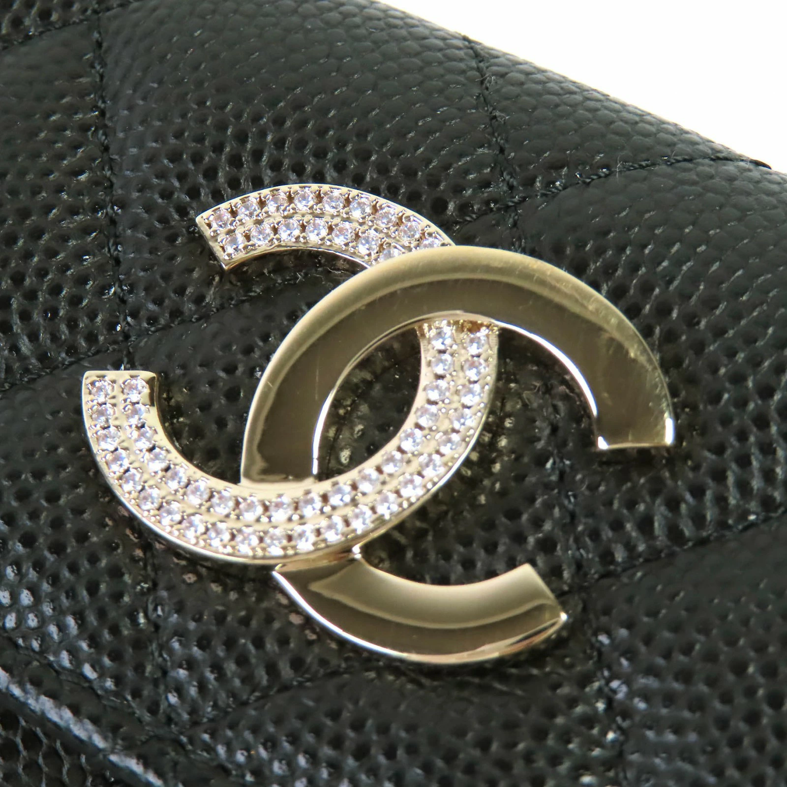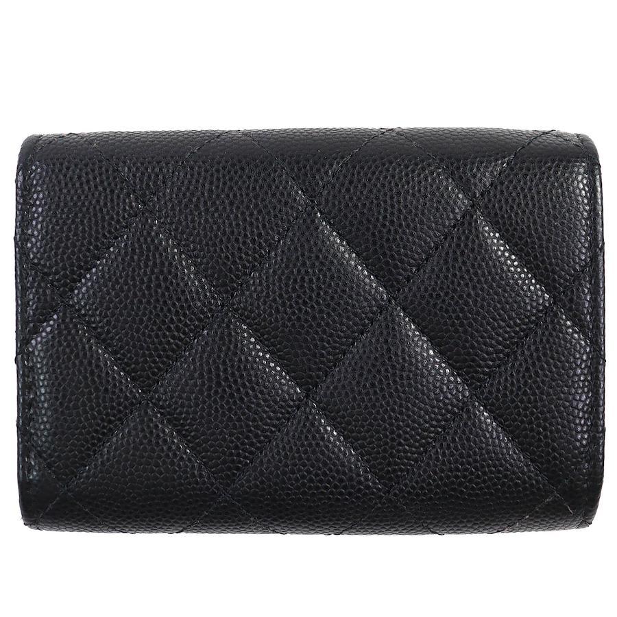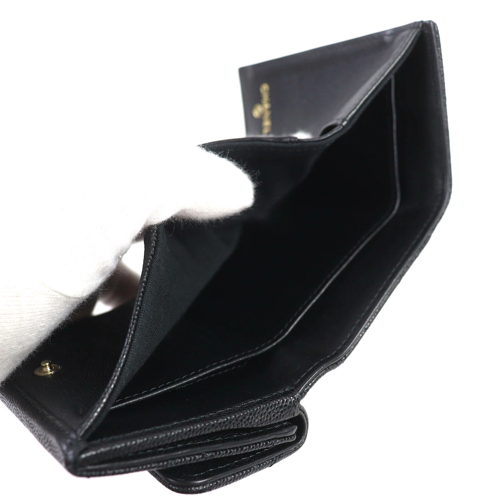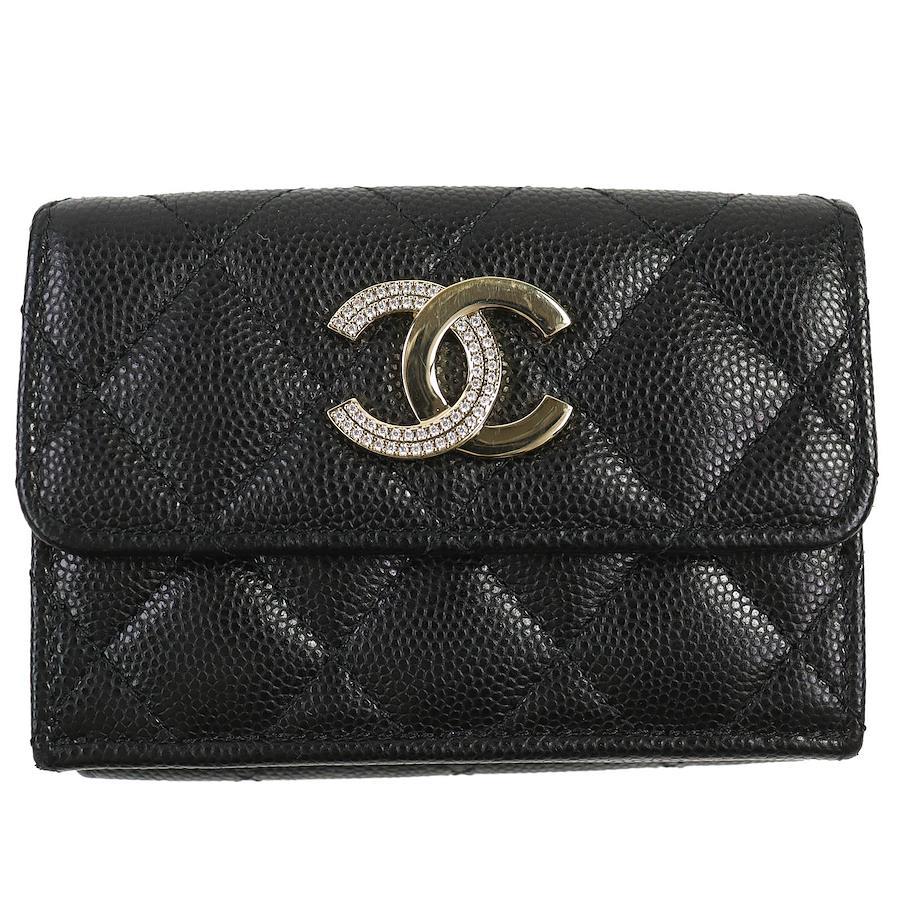 Excellent condition CHANEL AP4173 Caviar Leather Coco Mark Matelasse Small Flap Wallet, Tri-fold Wallet in Black with Gold Hardware, Dust Bag Included. Pre-owned.