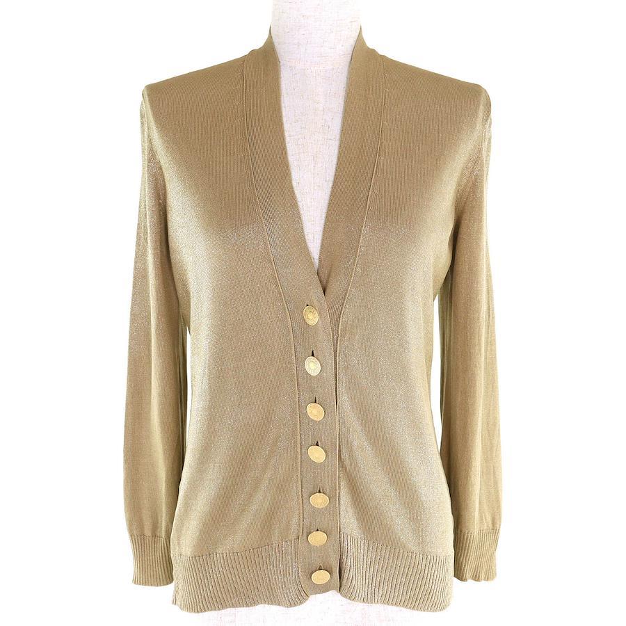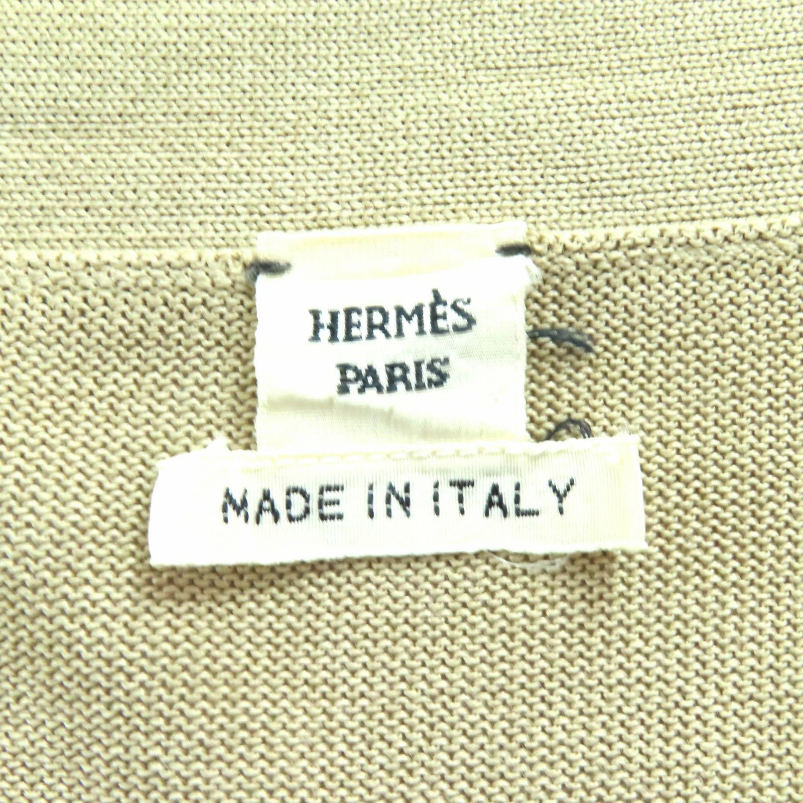 Excellent condition HERMES 100% silk, serie button, lamé, V-neck knit cardigan, beige, size 38, made in Italy, women's [pre-owned]