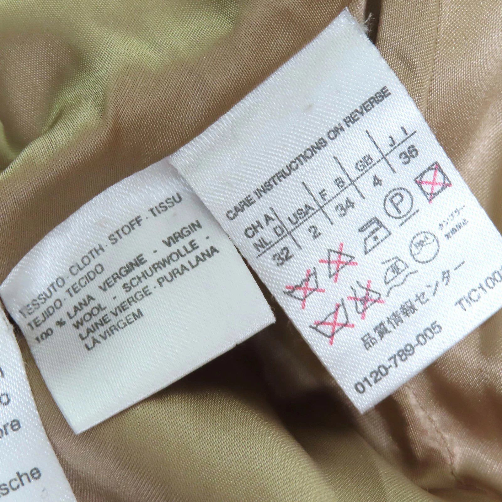 | 素材 (material) | 表地:ウール100% 裏地:アセテート70% :キュプラ30% ファー:ヌートリア | ||||||||||||||||