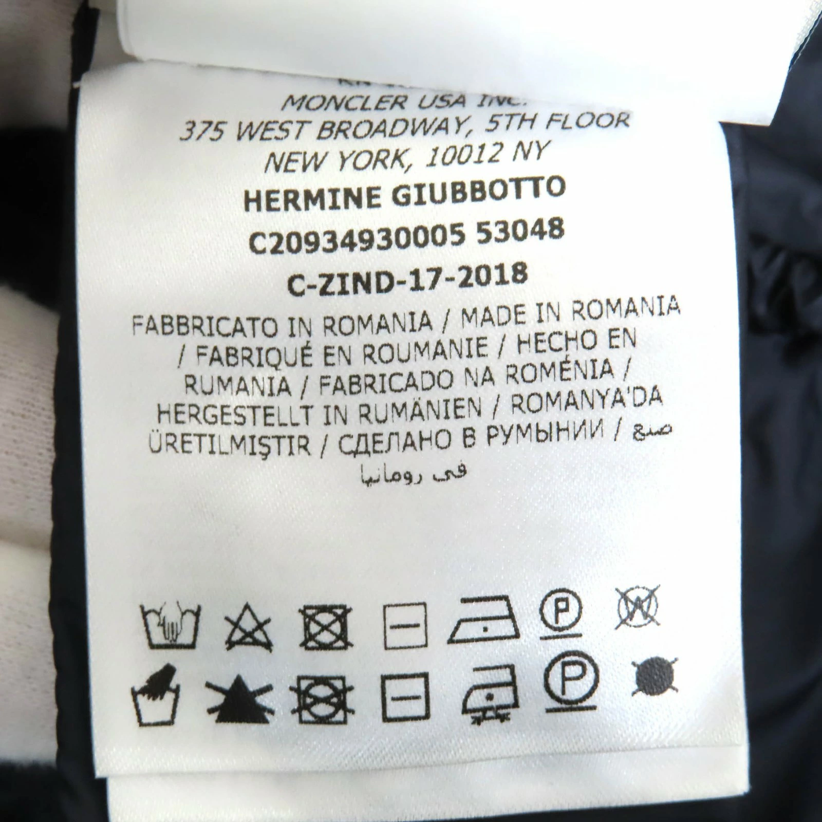 | 素材 (material) | 表地:ナイロン100% 裏地:ナイロン100% 中綿:ダウン90% :フェザー10% | ||||||||||||||||