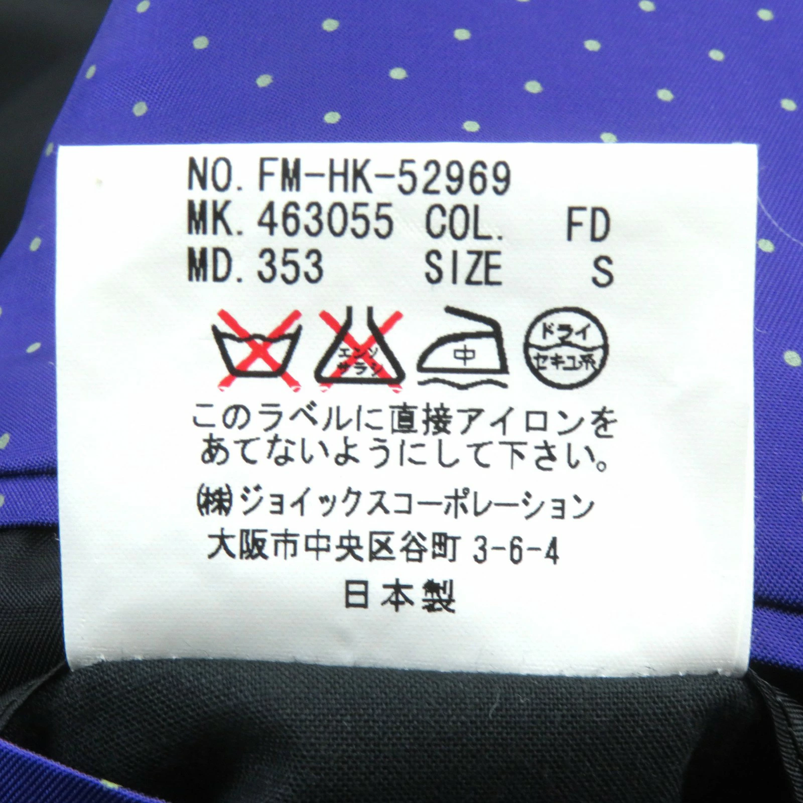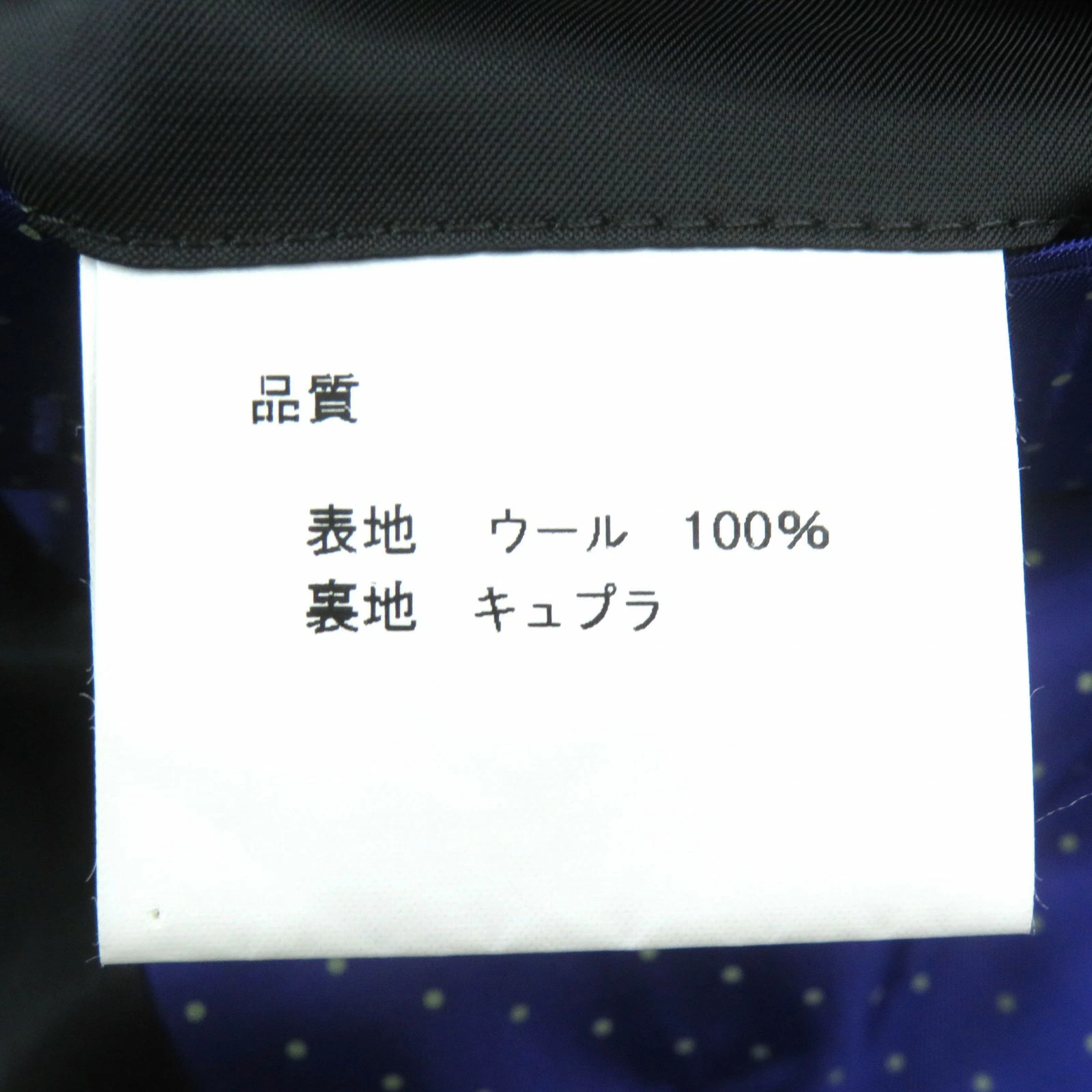 | 素材 (material) | 表地:ウール100% 裏地:キュプラ | ||||||||||||||||