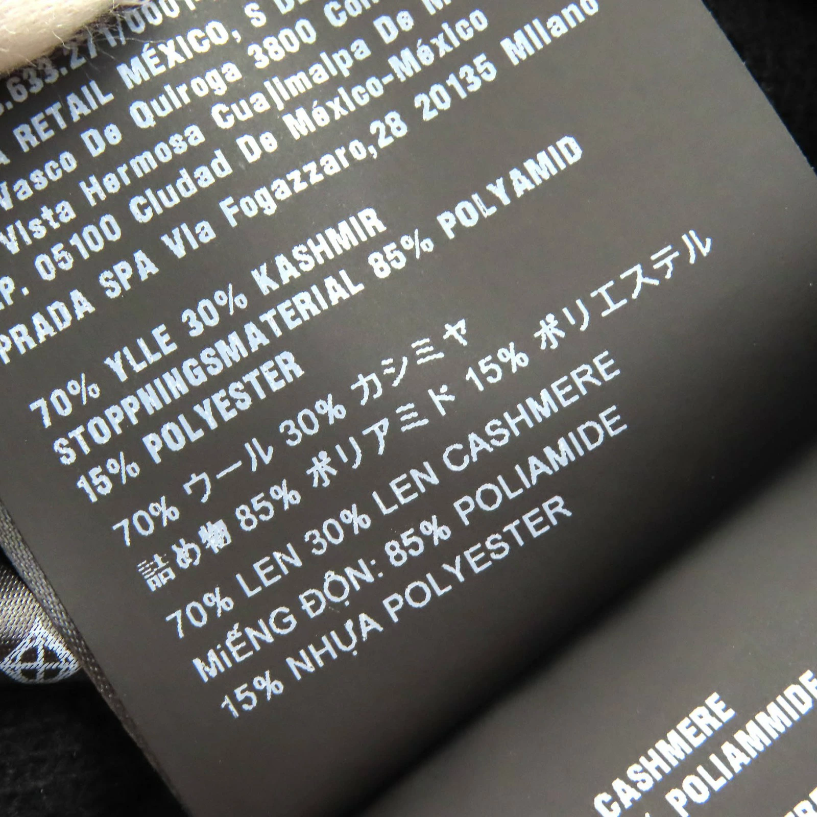 | 素材 (material) | 本体:ウール70% :カシミヤ30% 中綿:ポリアミド85% :ポリエステル15% | ||||||||||||||||
