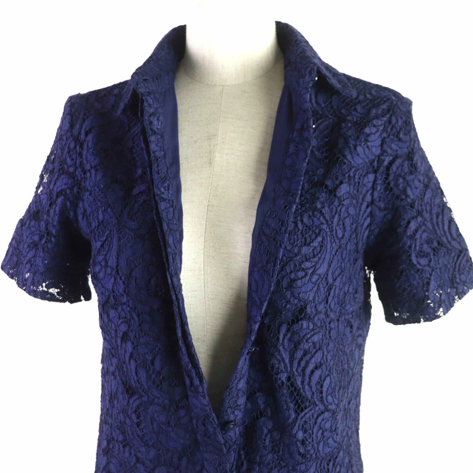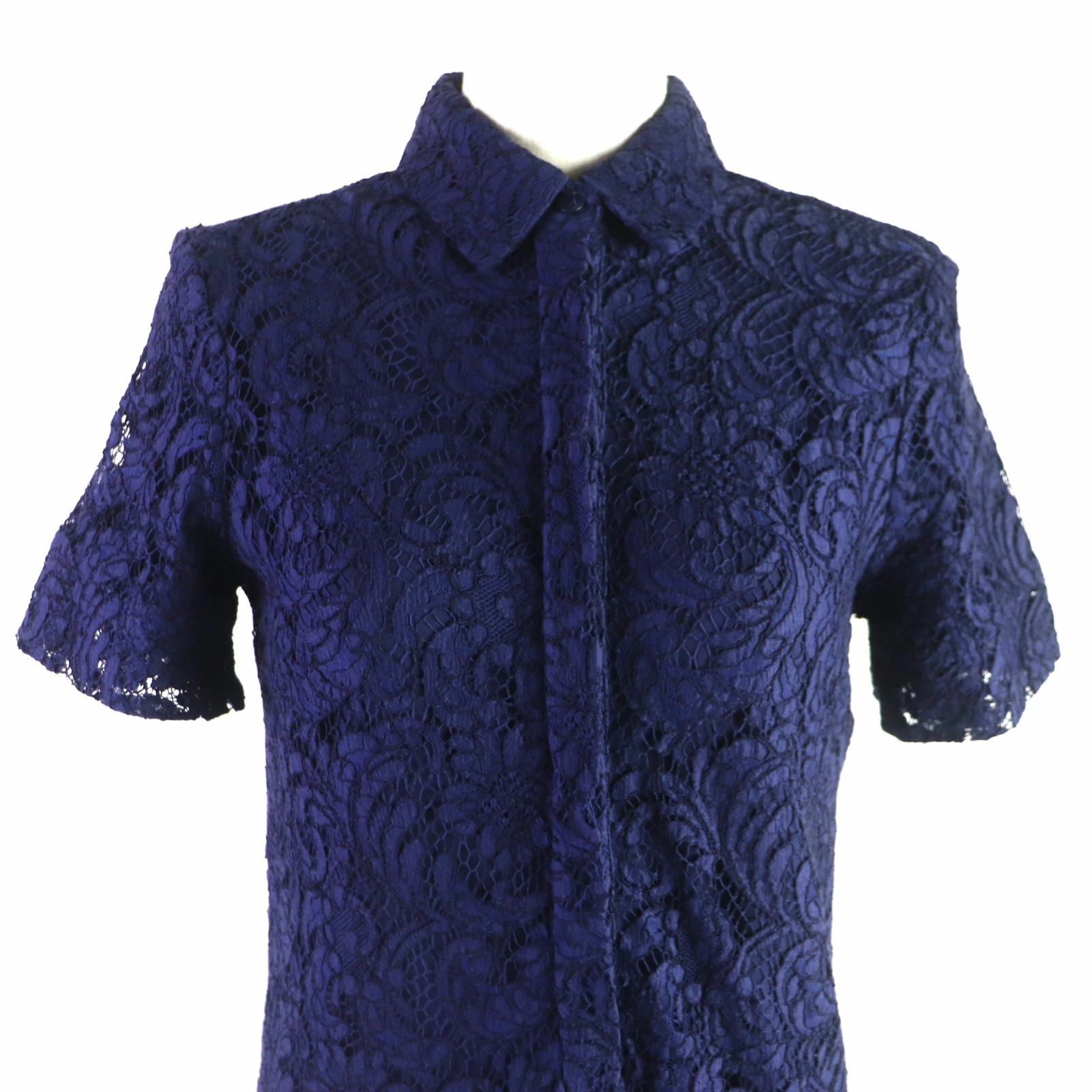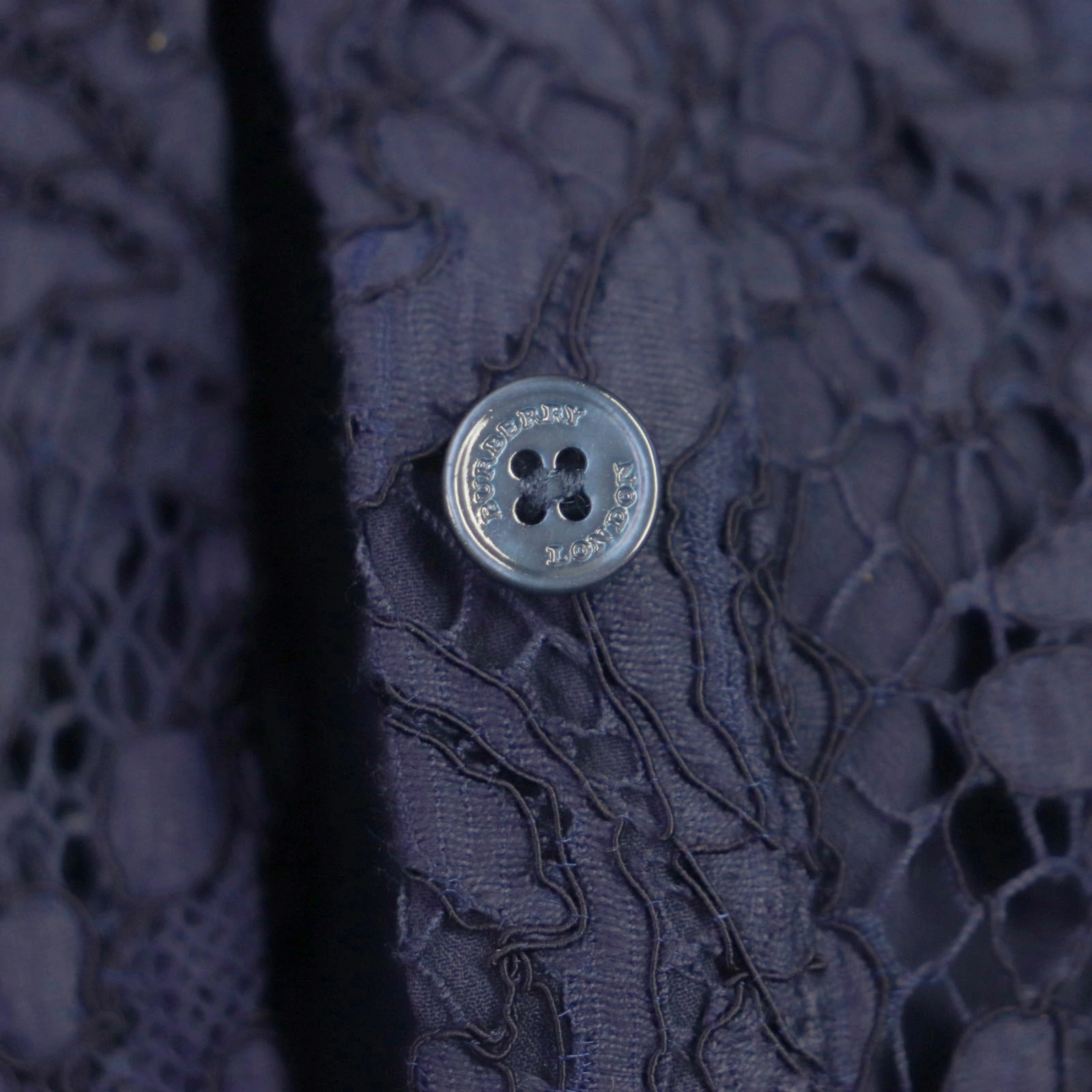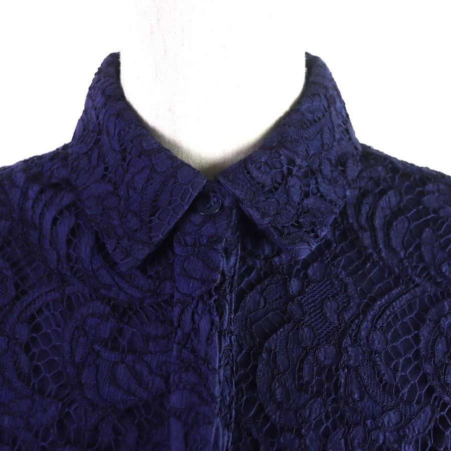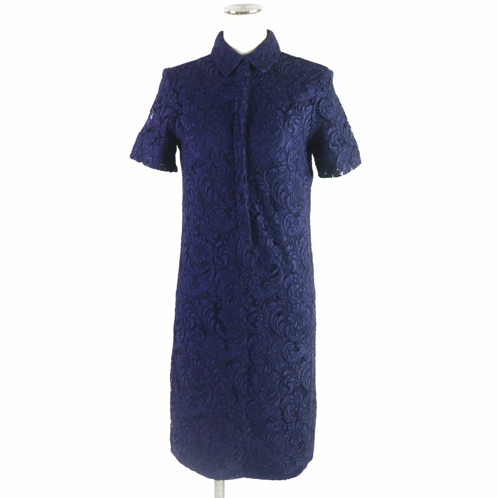 Excellent condition: BURBERRY LONDON cotton and lace short-sleeved shirt dress, navy, size 36, made in Italy, authentic, women's [pre-owned]