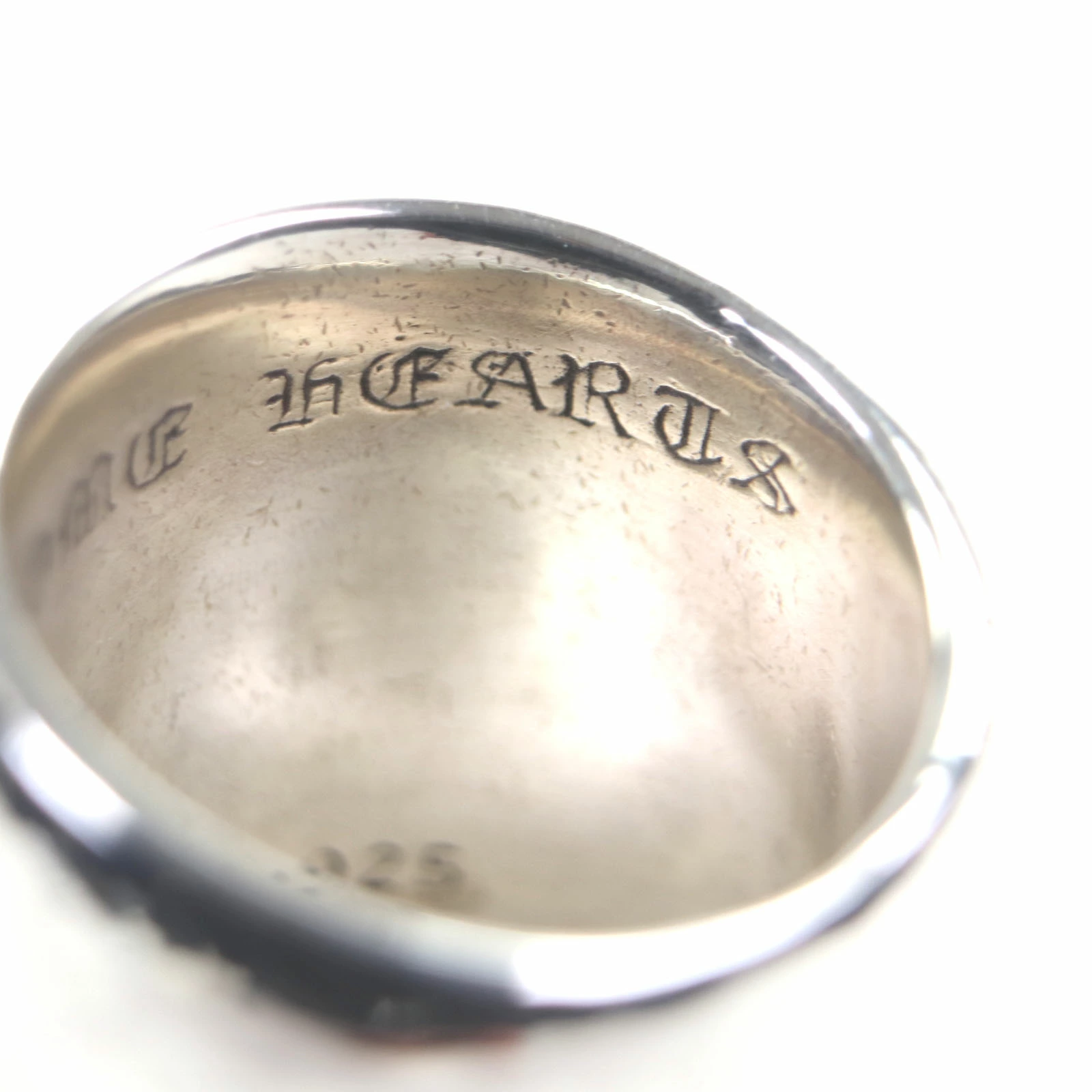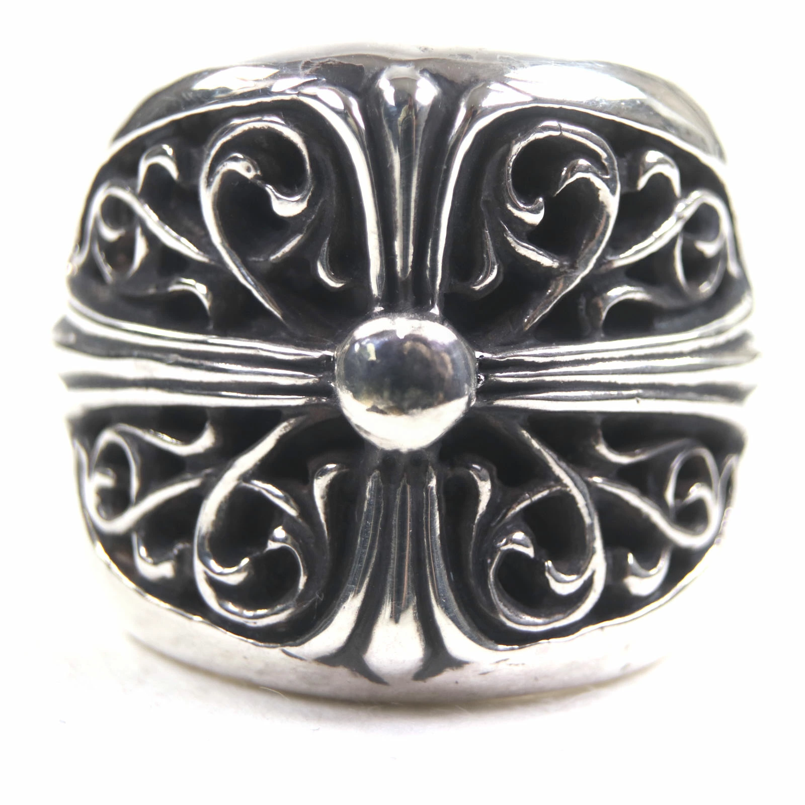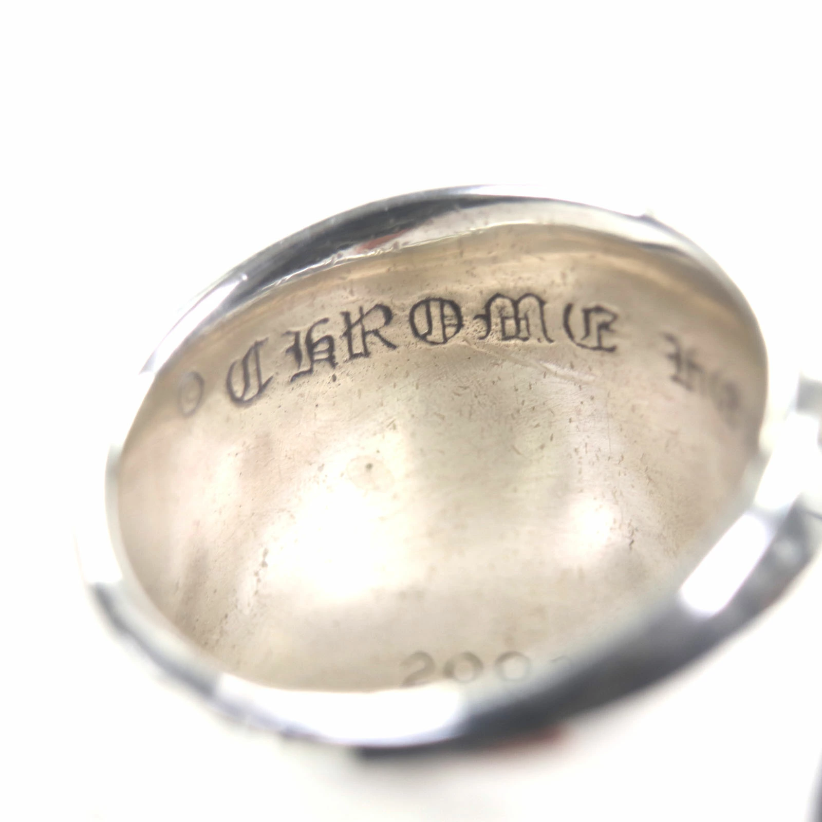 Excellent condition: CHROME HEARTS Classic Oval Cross 925 Silver Ring, Japanese size 18, weight 42.48g, pre-owned, men's accessory.