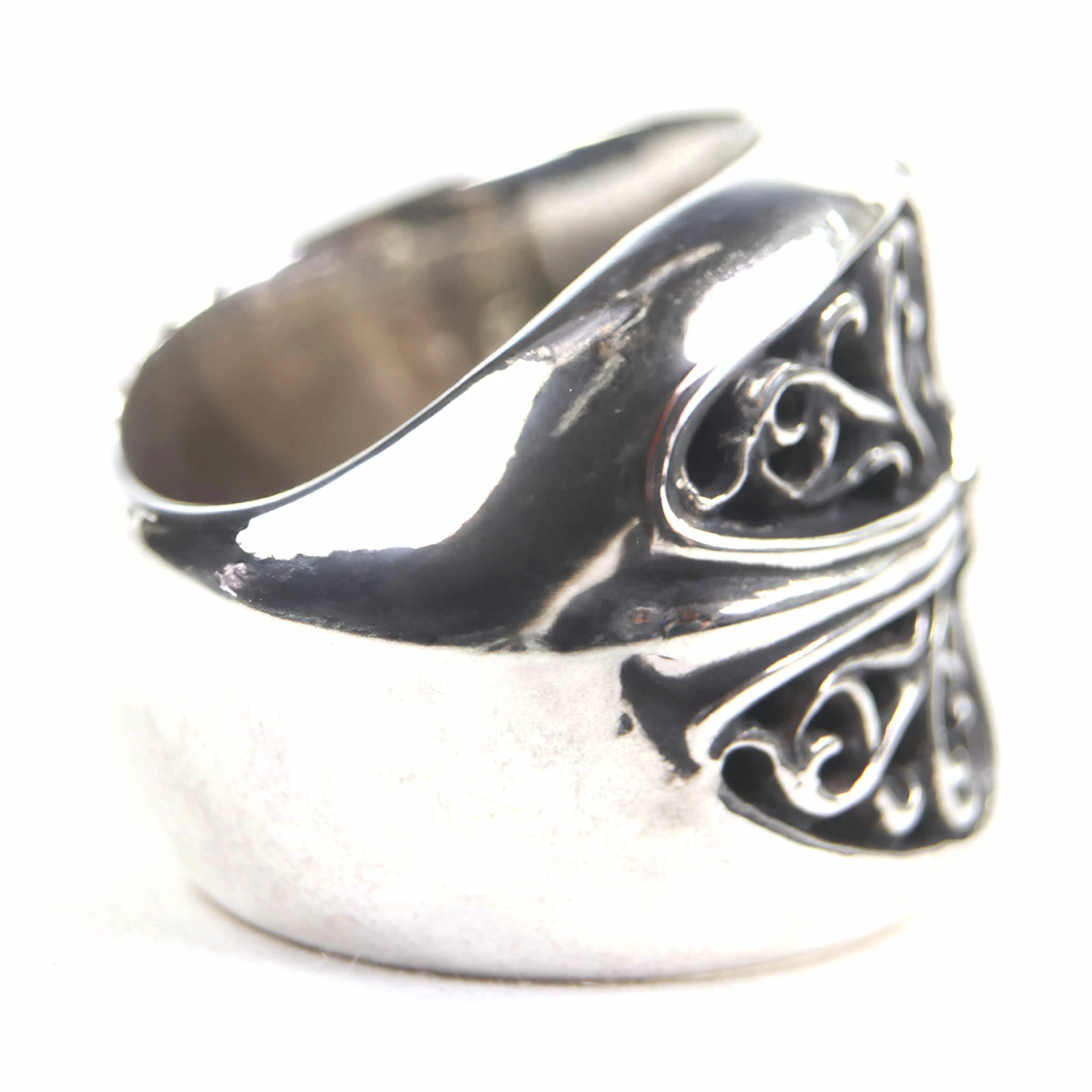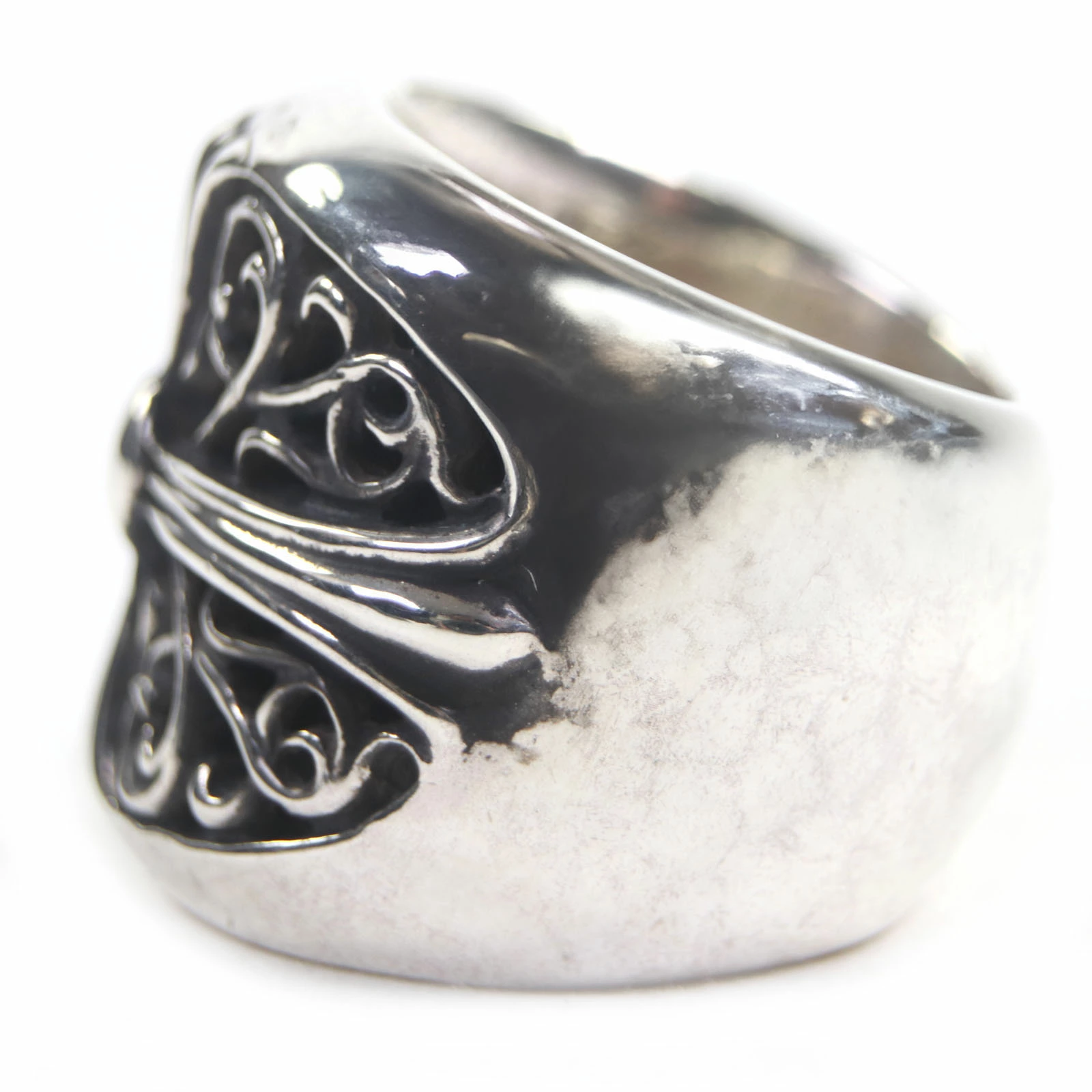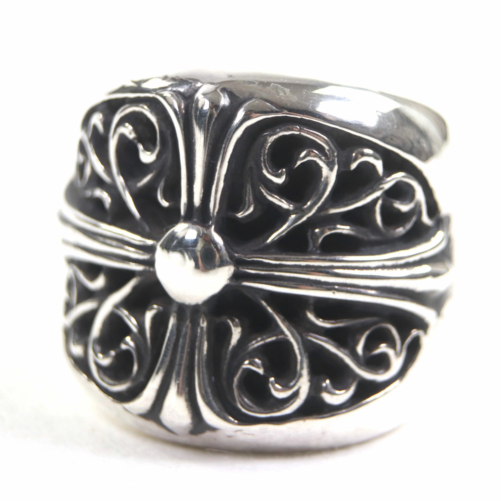 Excellent condition: CHROME HEARTS Classic Oval Cross 925 Silver Ring, Japanese size 18, weight 42.48g, pre-owned, men's accessory.