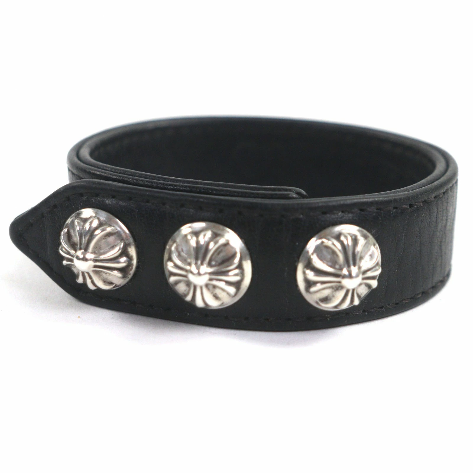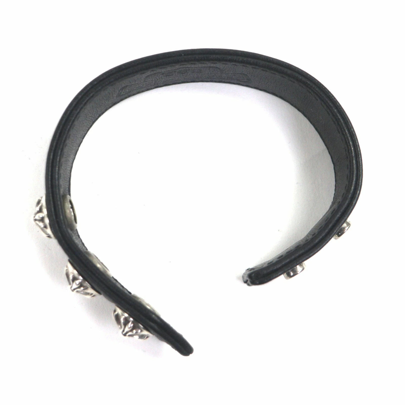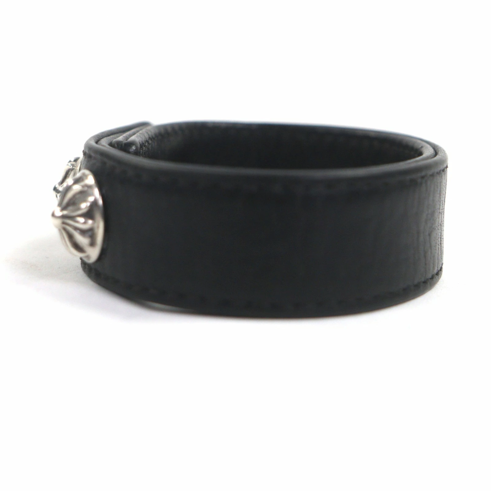 Excellent condition: CHROME HEARTS 3-button, 2-snap leather 925 cross ball bracelet in black and silver. Total weight: 36.8g. Men's. [Pre-owned]