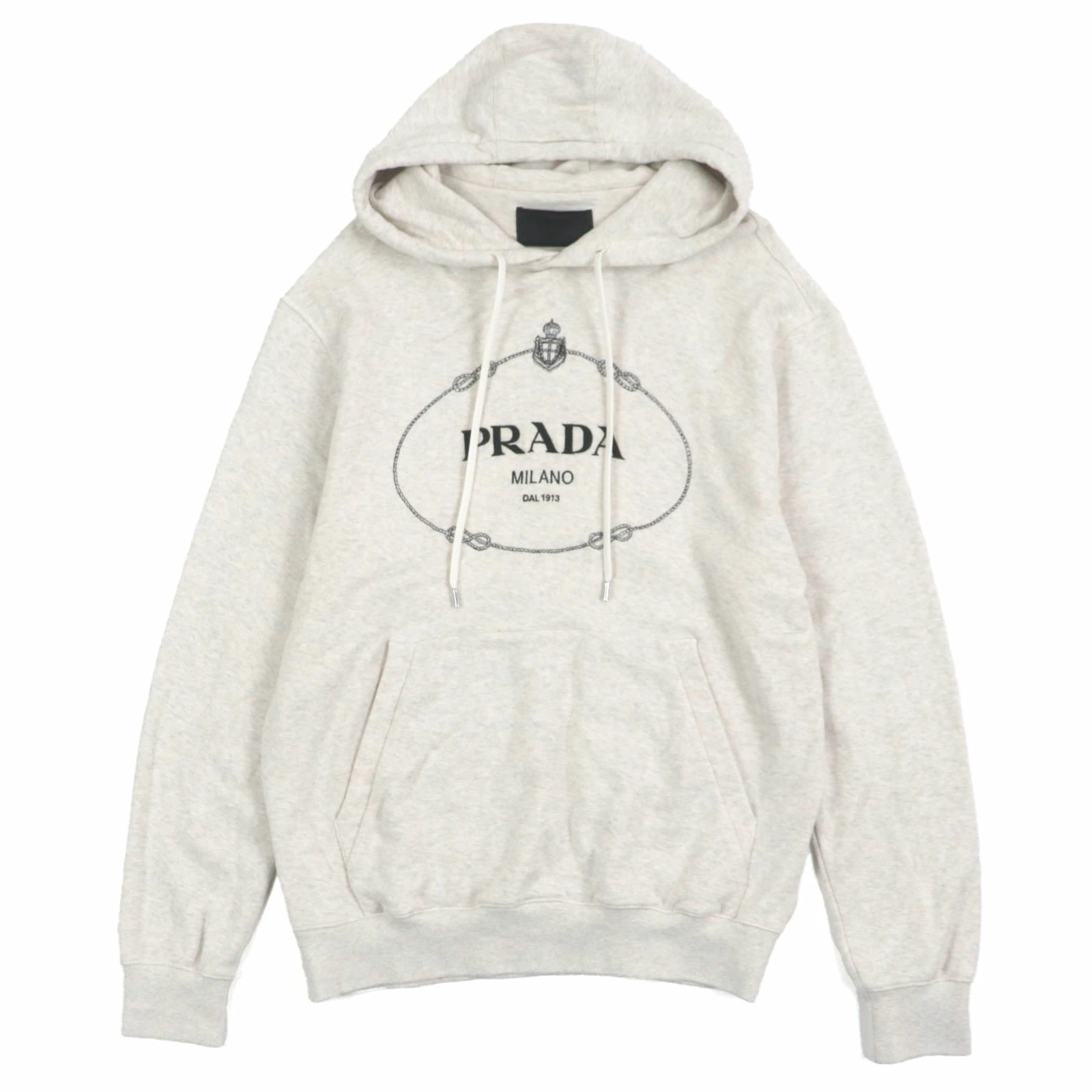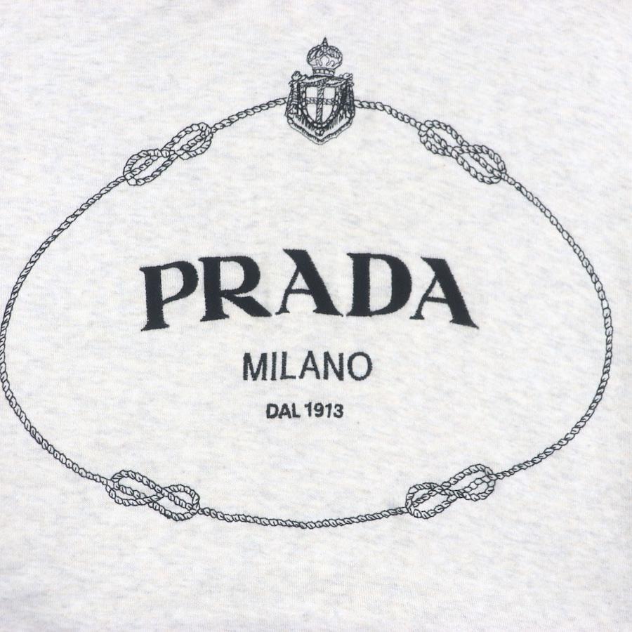 Excellent condition: PRADA 23AW UJL24B 100% cotton hoodie with embroidered front logo, pullover, light gray, size S, authentic, men's [pre-owned]