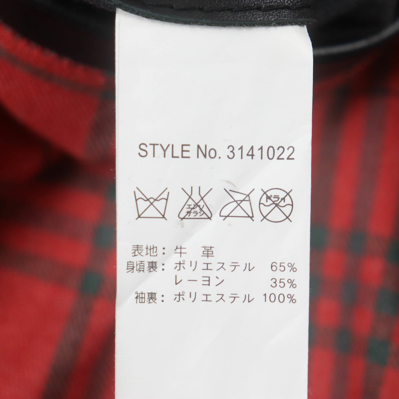 | 素材 (material) | 表地:牛革 裏地:ポリエステル65% :レーヨン35% 袖裏地:ポリエステル100% | ||||||||||||||||