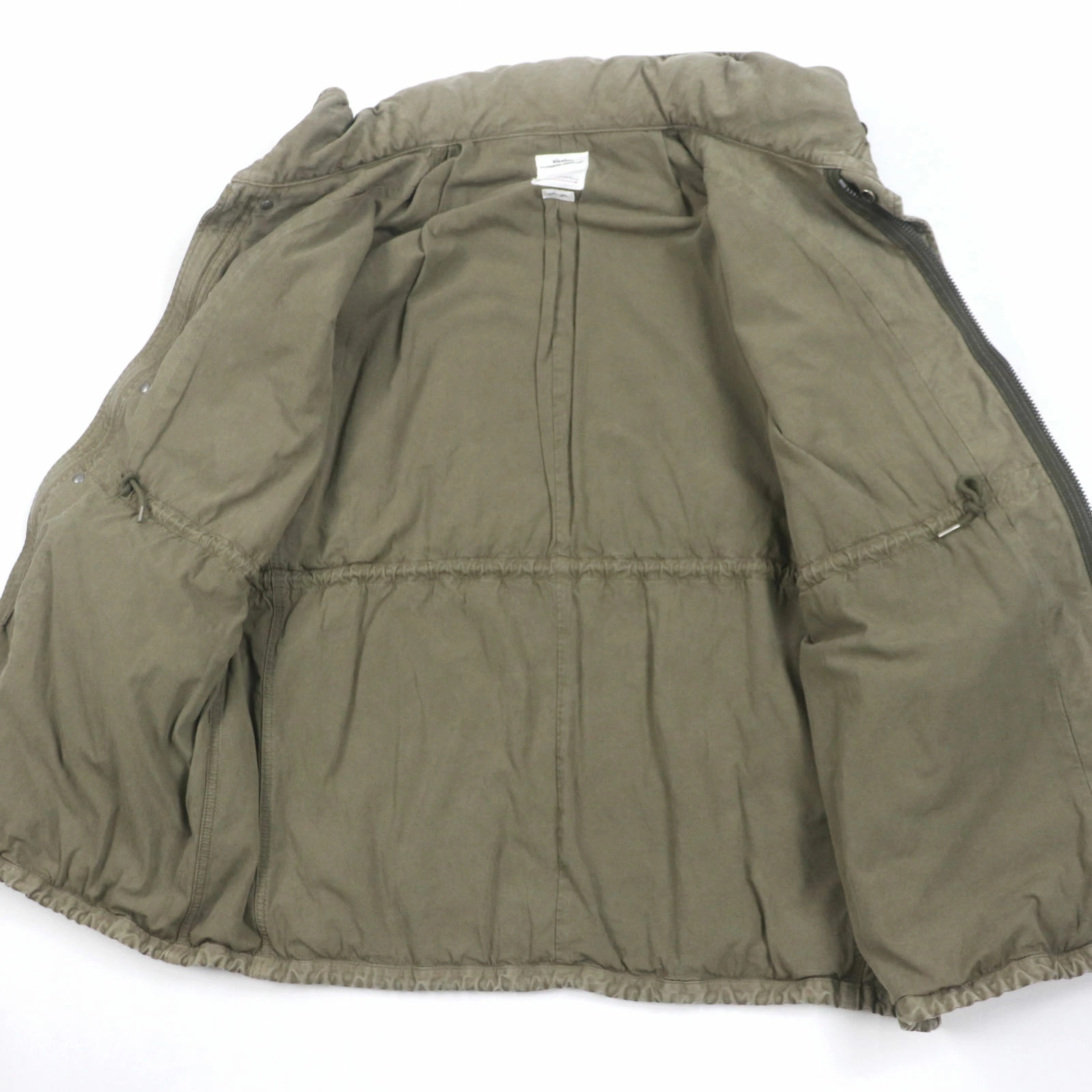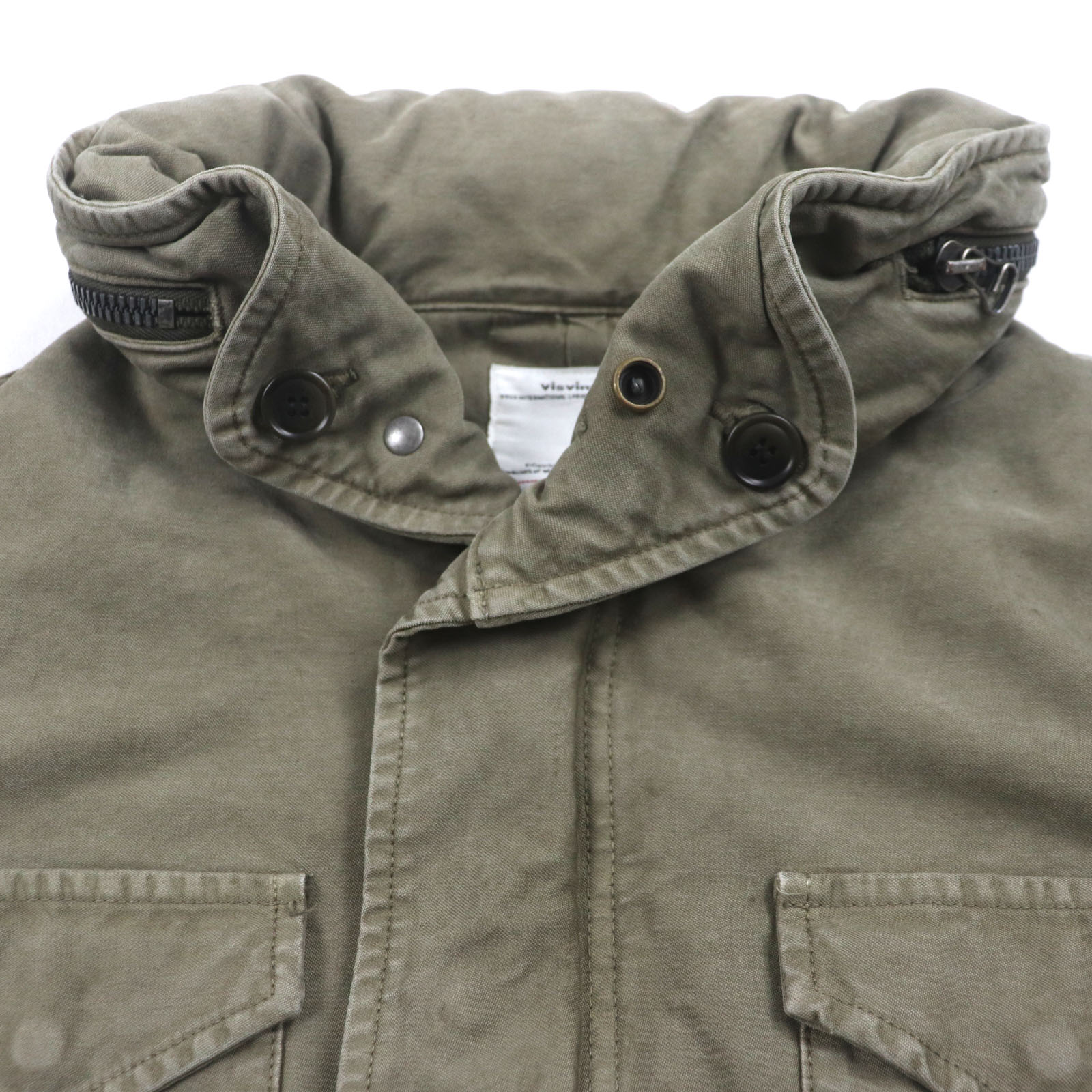 Excellent condition VISVIM 20SS BICKLE DMGD 100% cotton hooded zip-up mod coat with sleeve logo print, Khaki, Size 2, Made in Japan, Authentic, Men's [Pre-owned]