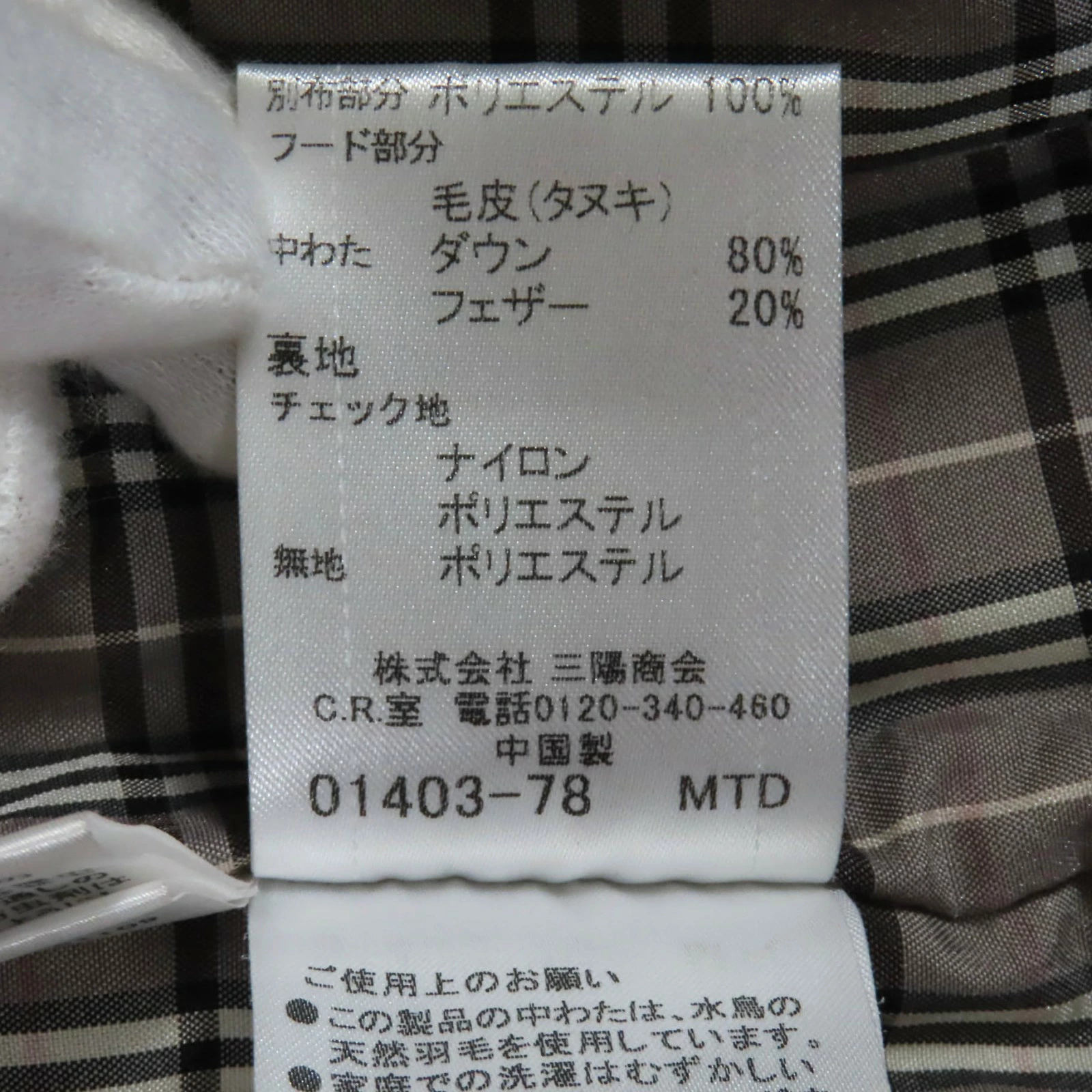 | 素材 (material) | 表地:ナイロン100% 一部:ポリエステル100% :ラクーン 中綿:ダウン80% :フェザー20% 裏地:ナイロン :ポリエステル | ||||||||||||||||