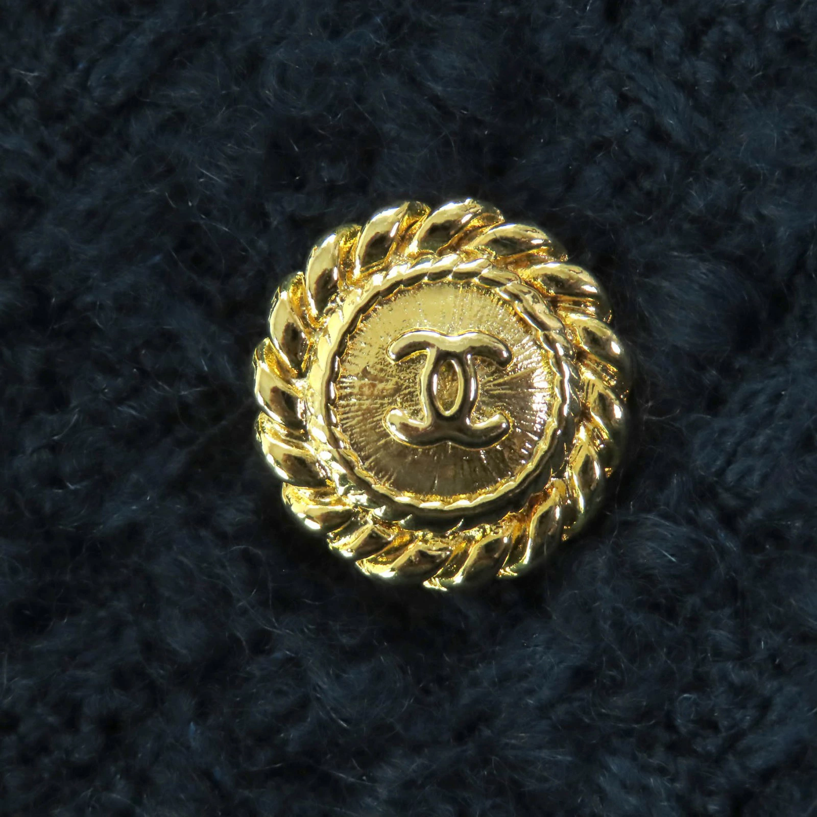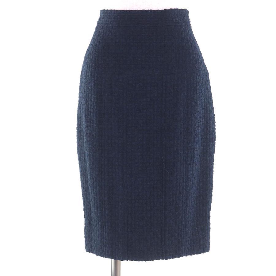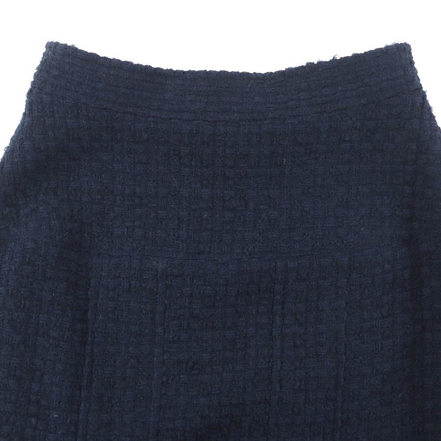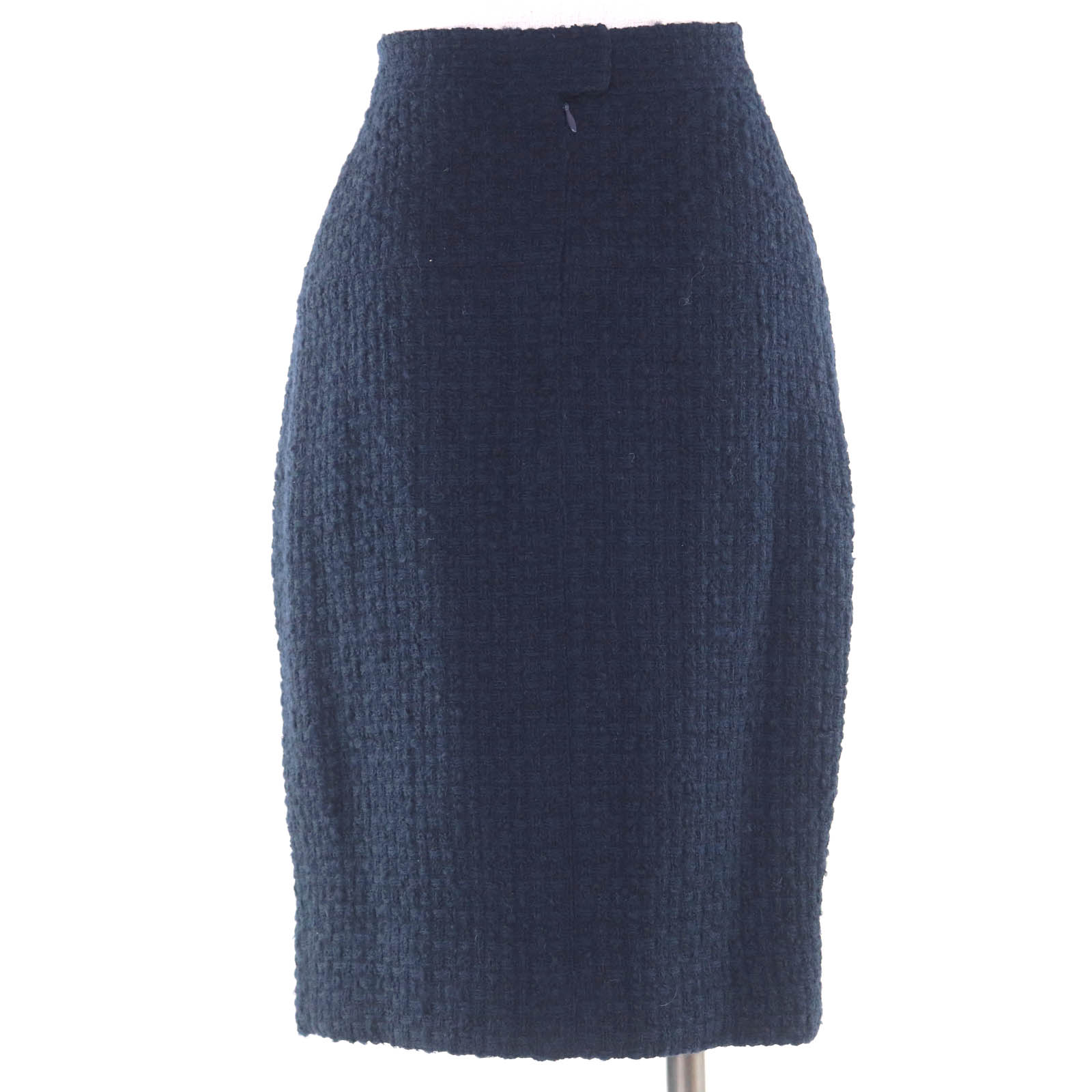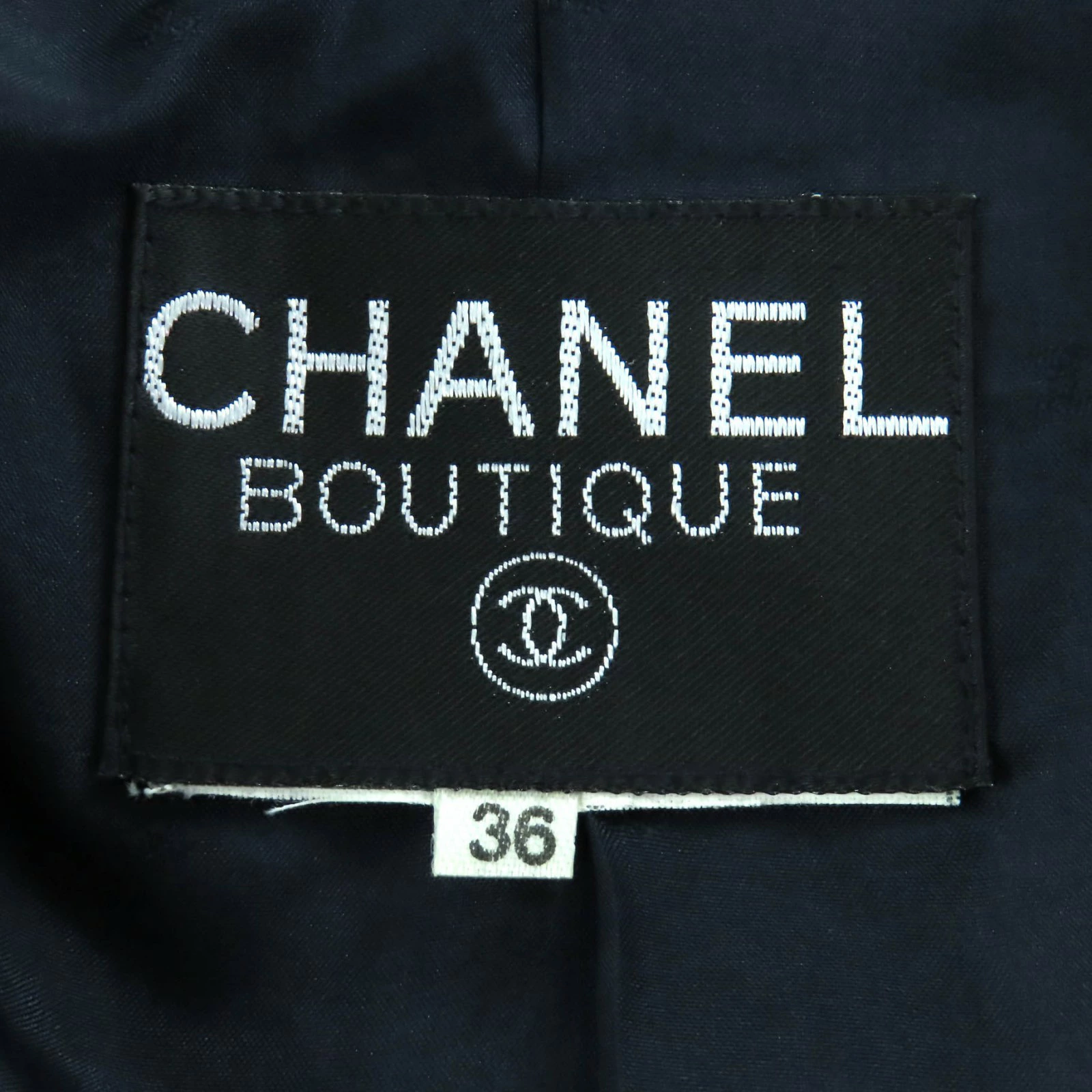 Excellent condition: CHANEL BOUTIQUE vintage 90s wool tweed suit with Coco Mark buttons and logo belt, navy, size 36, made in France. Women's. [Pre-owned]