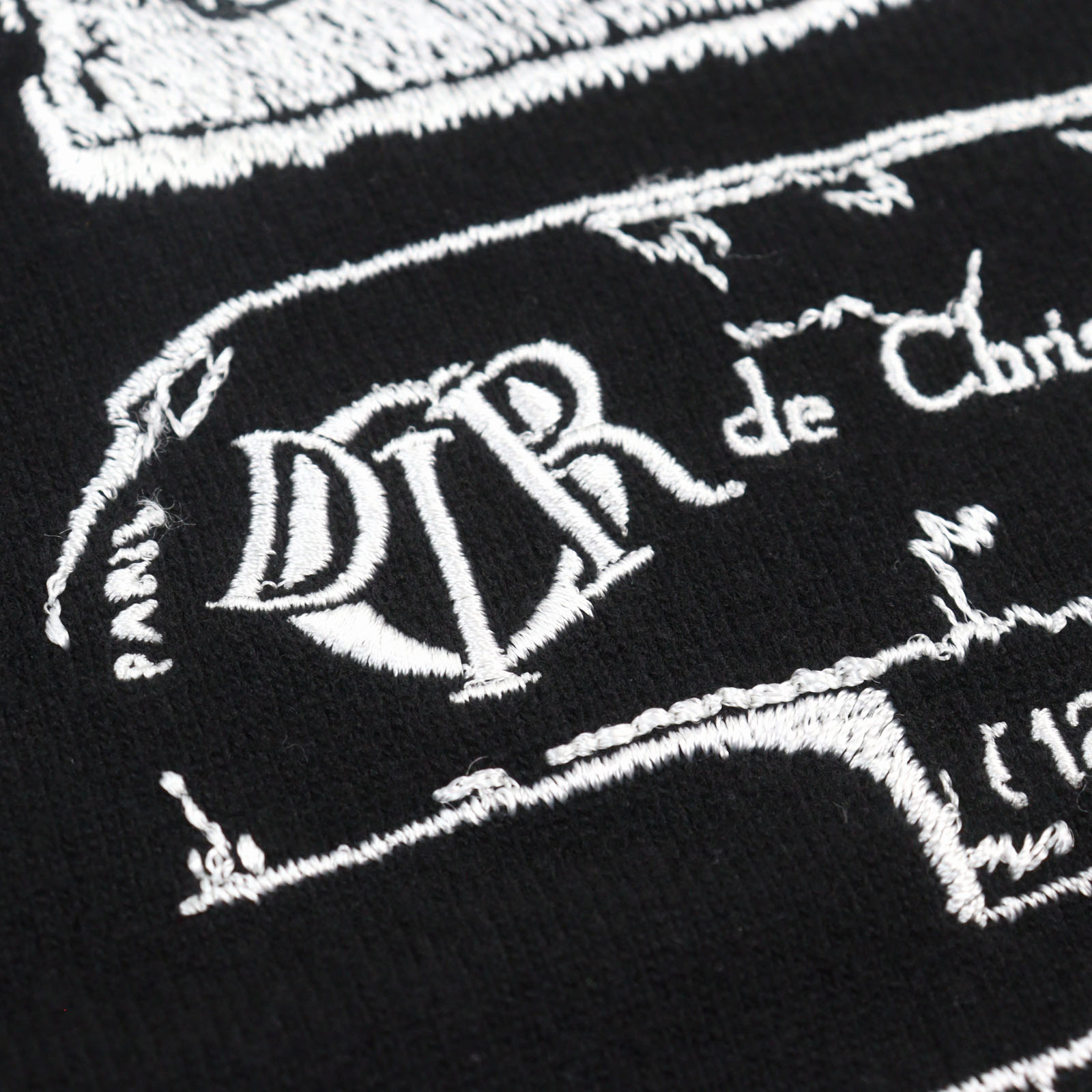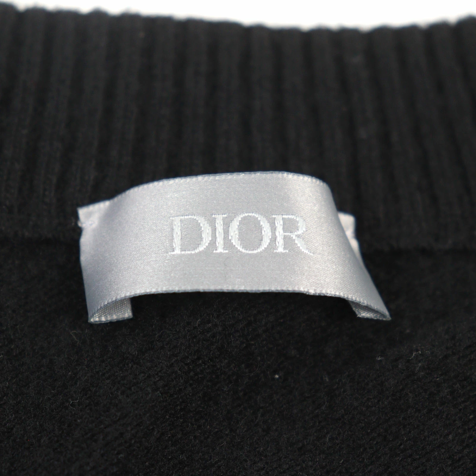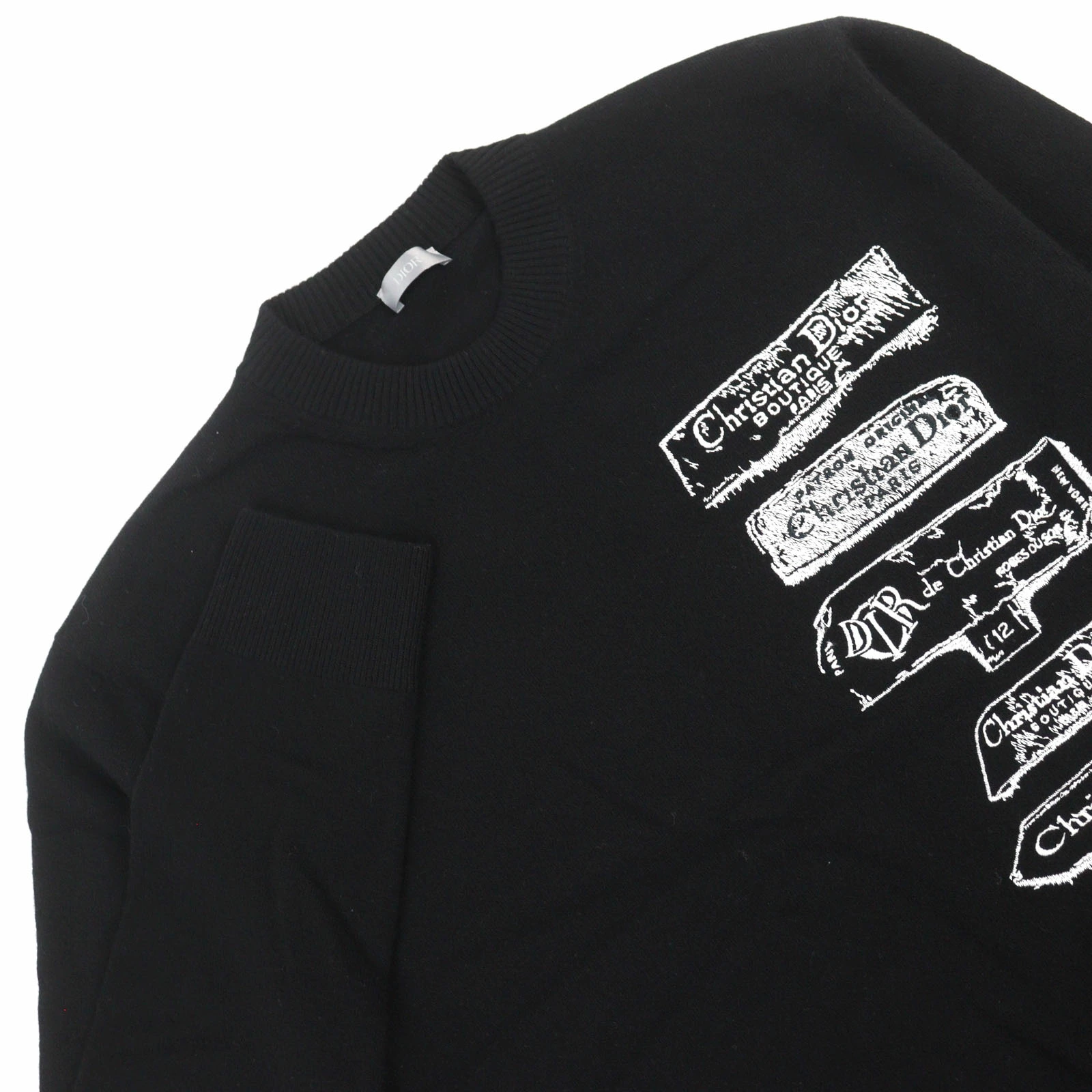 Excellent condition: Dior Homme 2007 Spring/Summer 2025 513M663A2007 100% wool crew neck knit with Archives Labels embroidery and logo, size L, black, made in Italy, authentic, men's [pre-owned]
